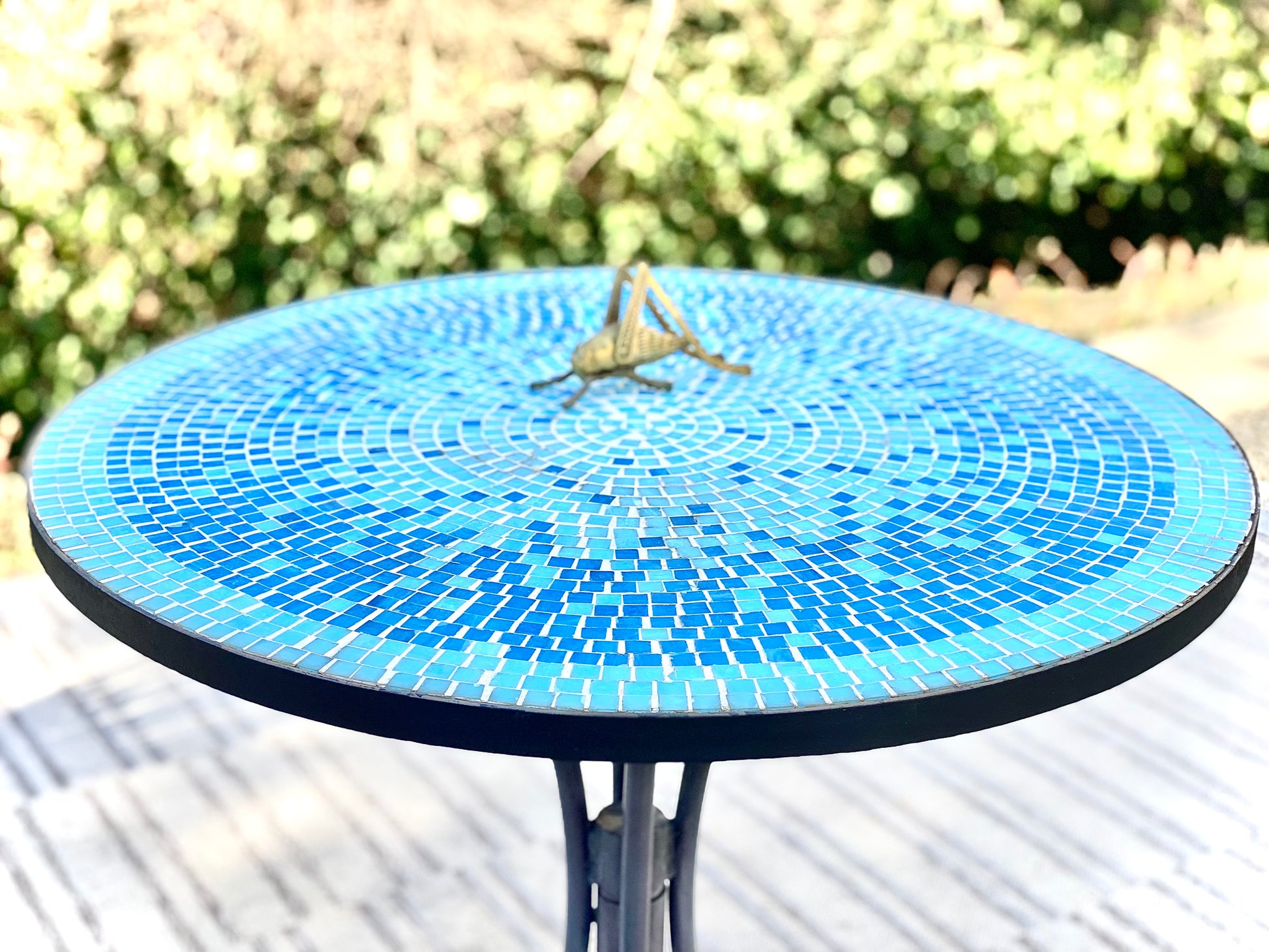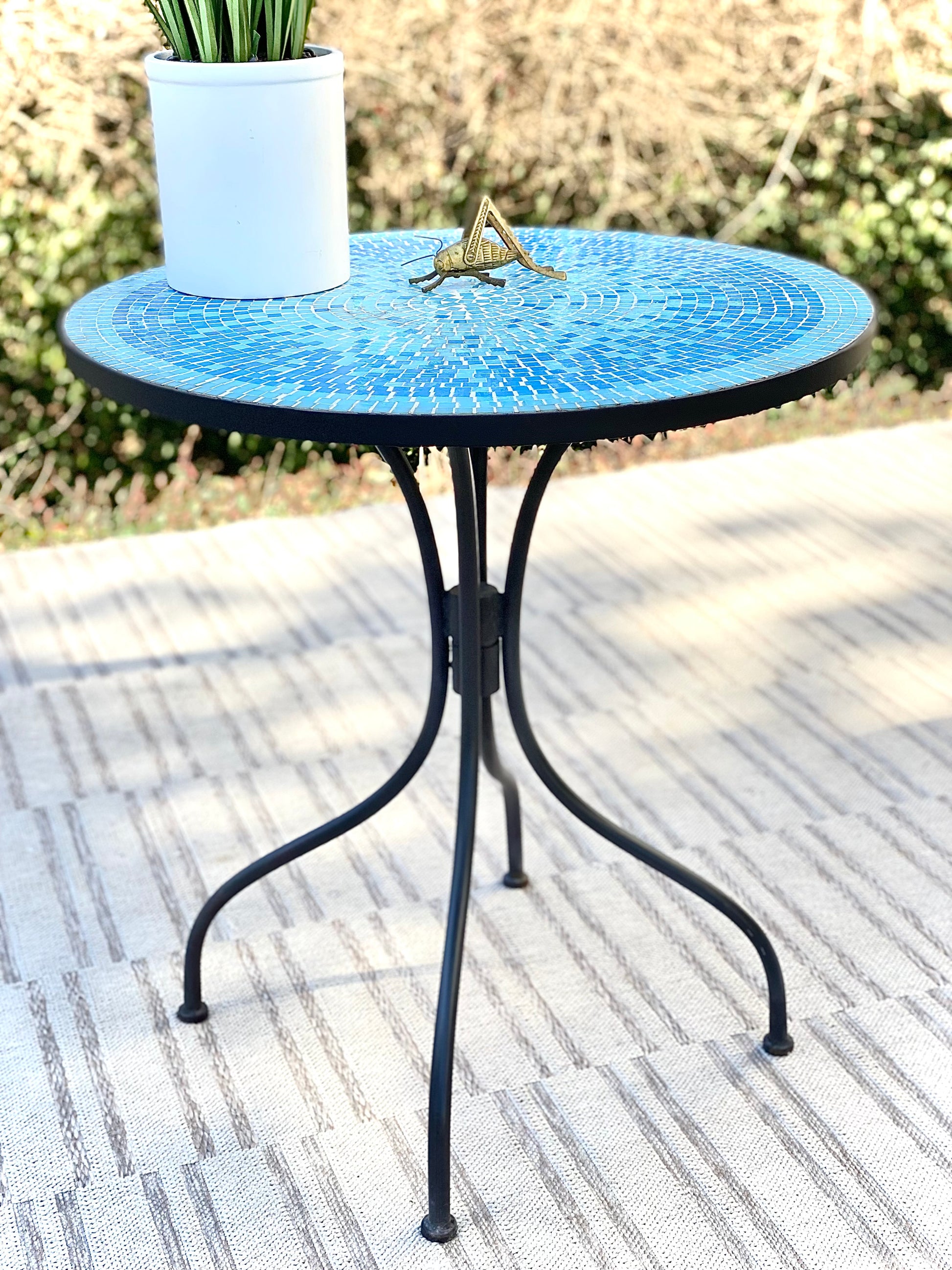 SOLD - Fresh find!! 🌱❄️ we love this MCM mid century metal indoor/outdoor mosaic tile table. Very sturdy base with a heavy tile top. Perfect for that bistro vibe! 30” x 28” wide. Good condition