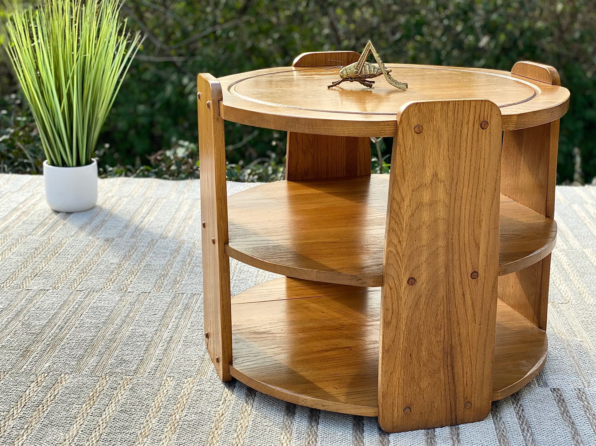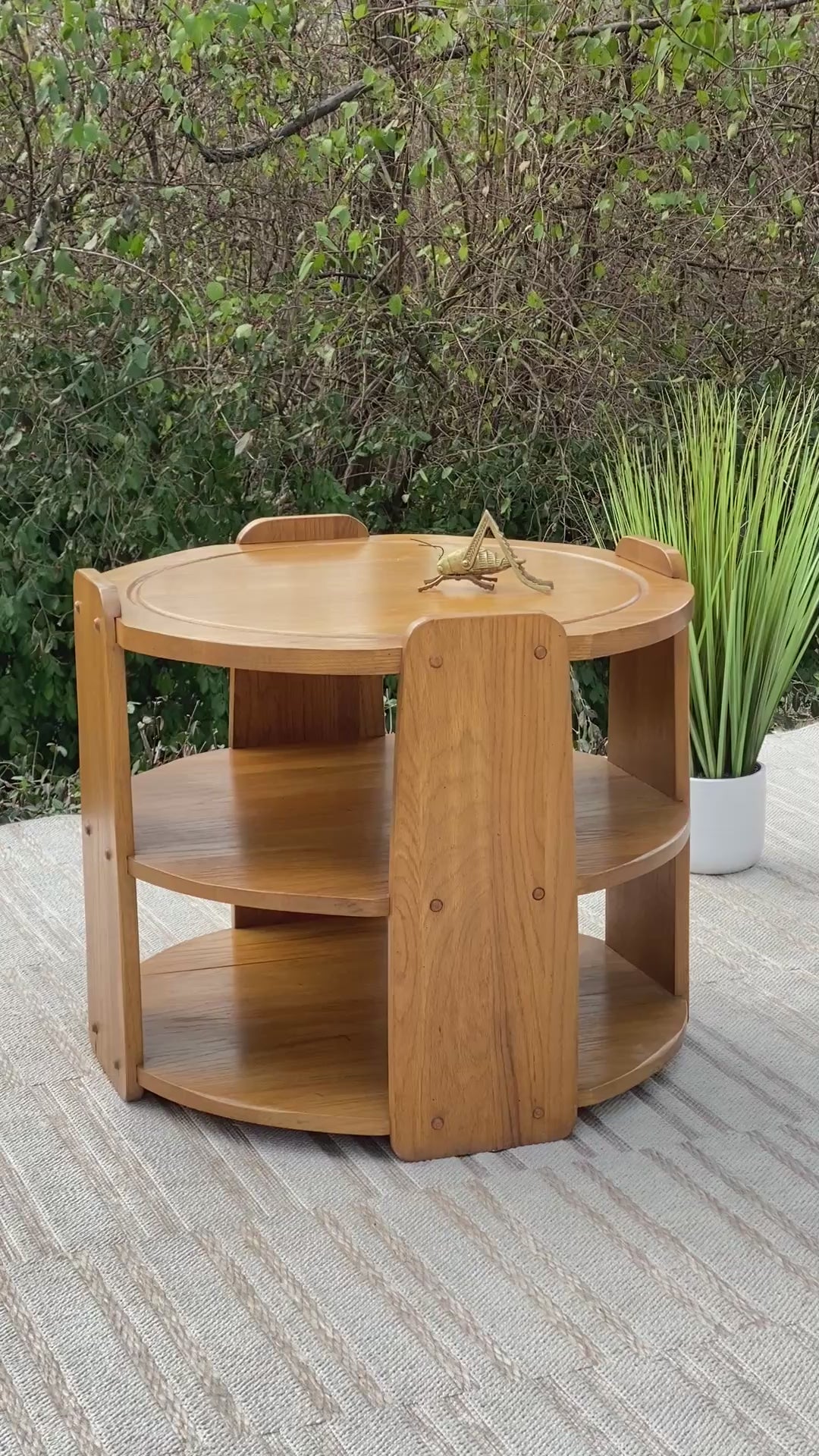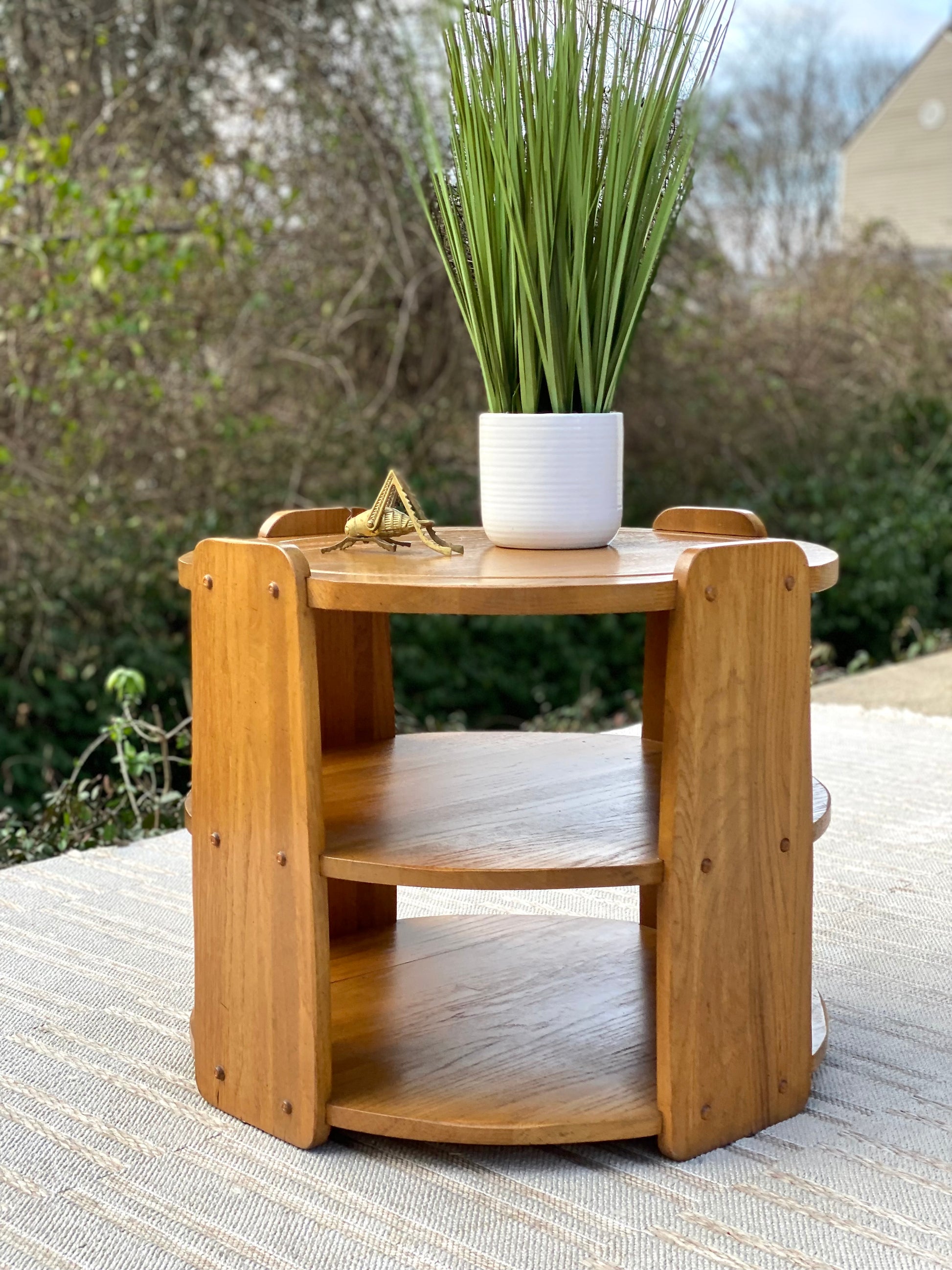 Fresh find! ❄️❄️ Check out this nice vintage MCM mid century modern solid wood table table. Multiple tiers with a light stain. Classic design. Made in the USA. 25” x 25” x 21” Good condition