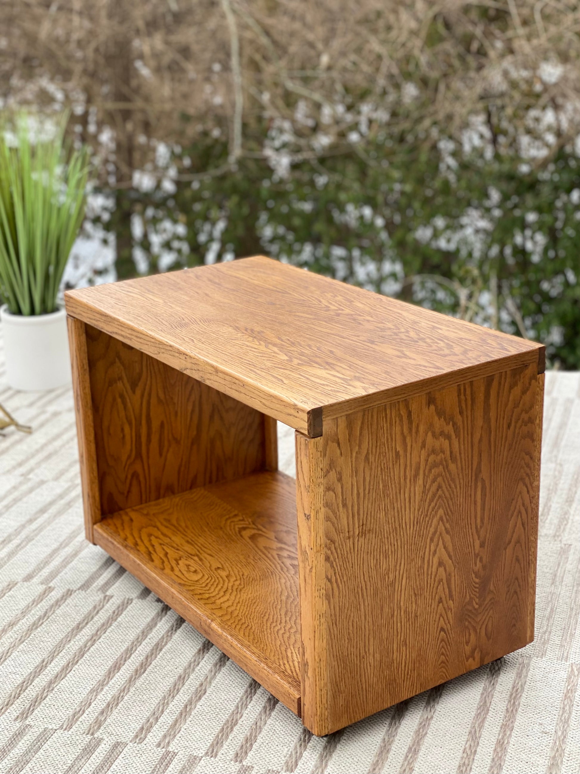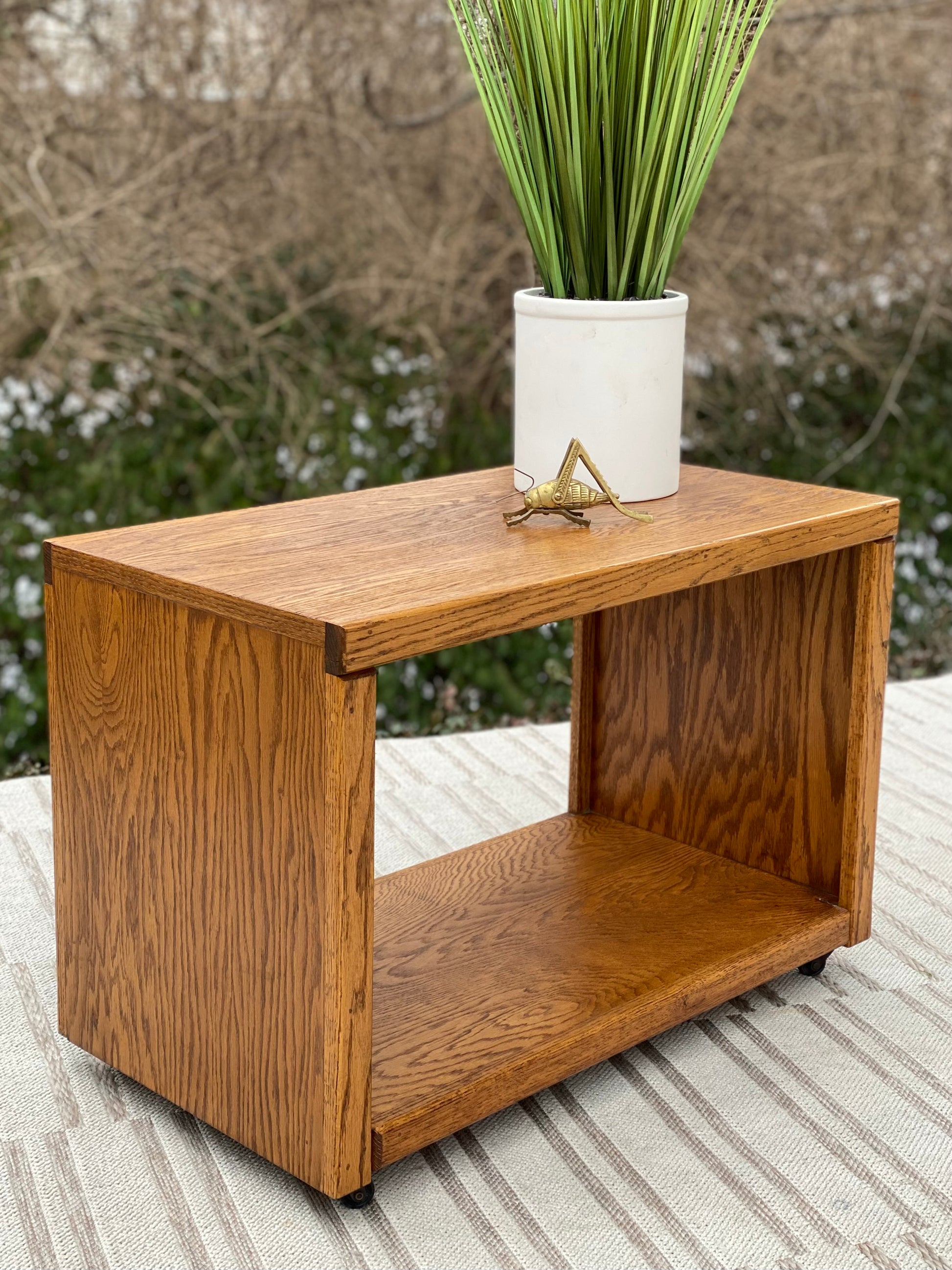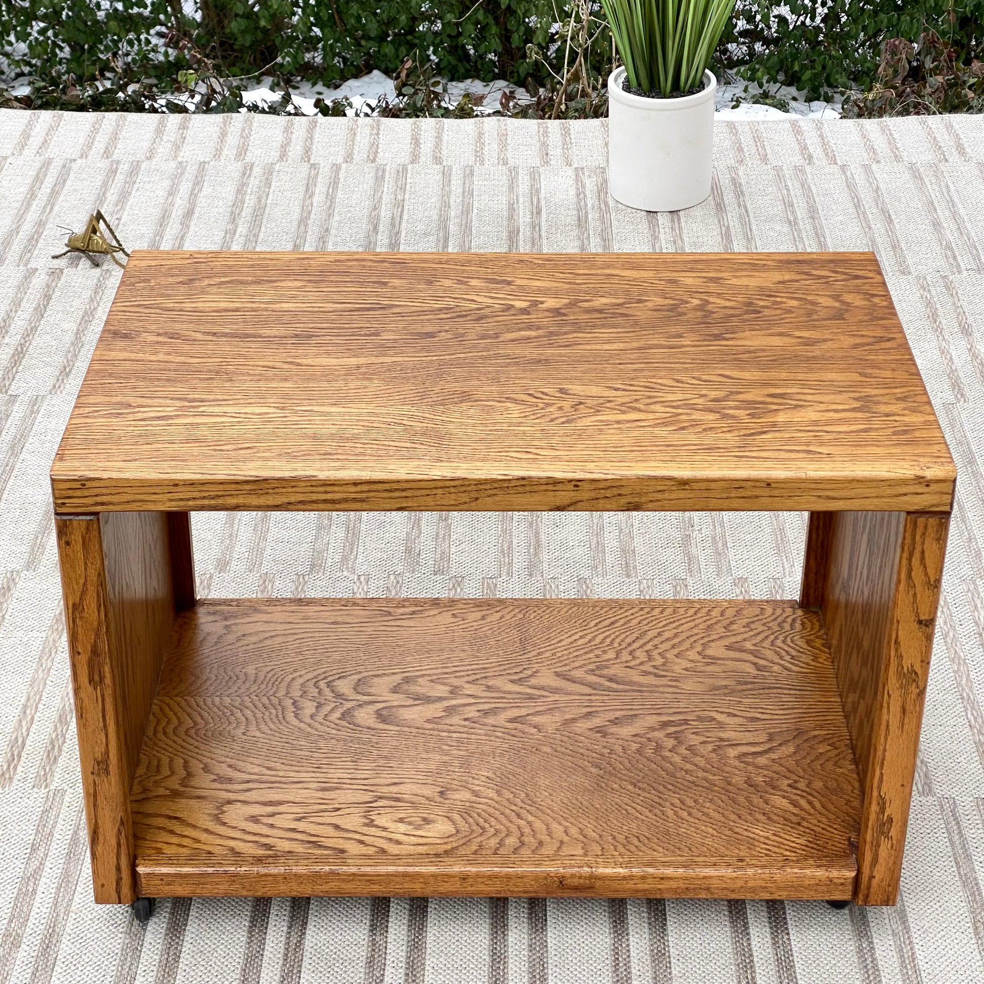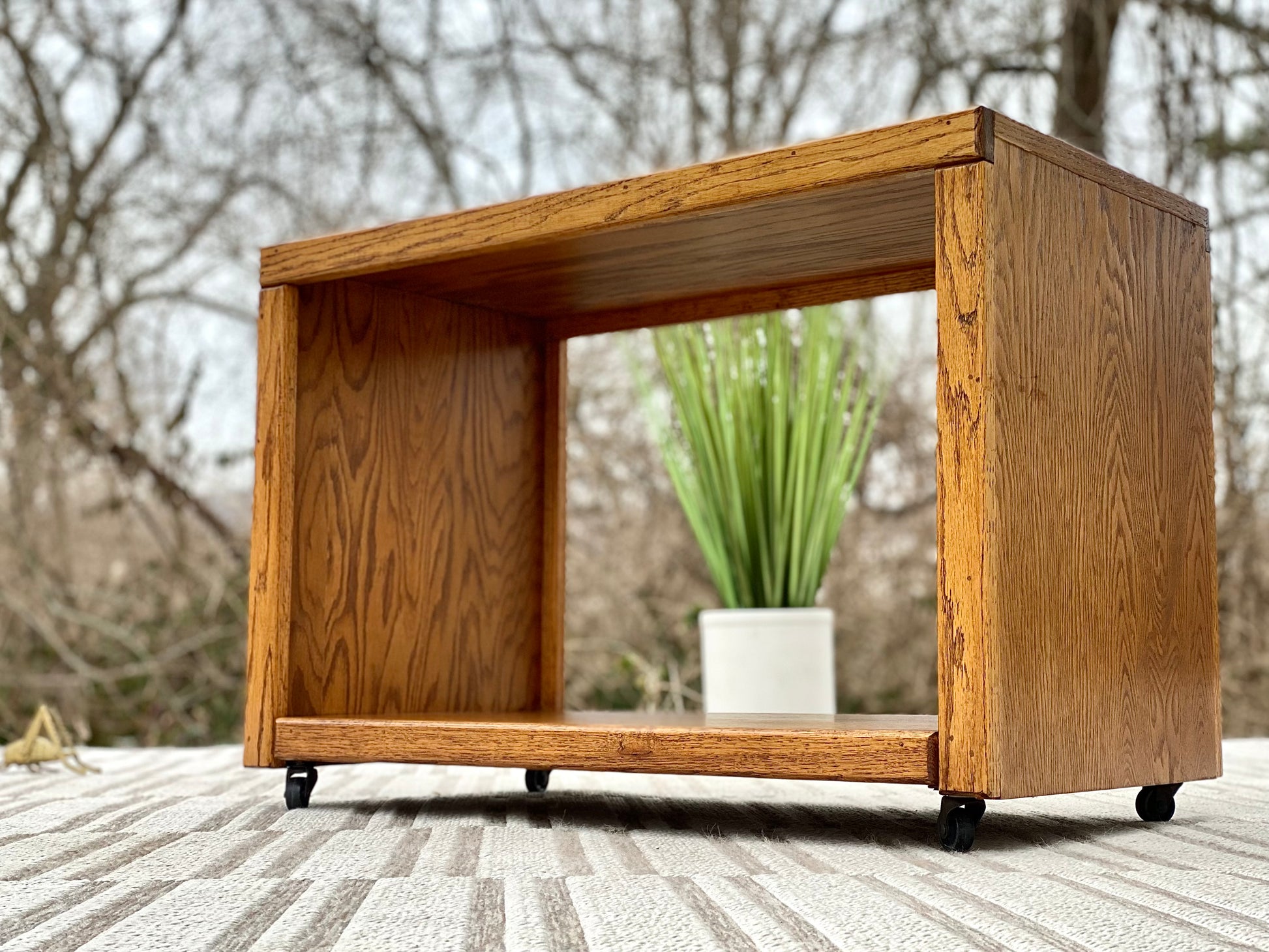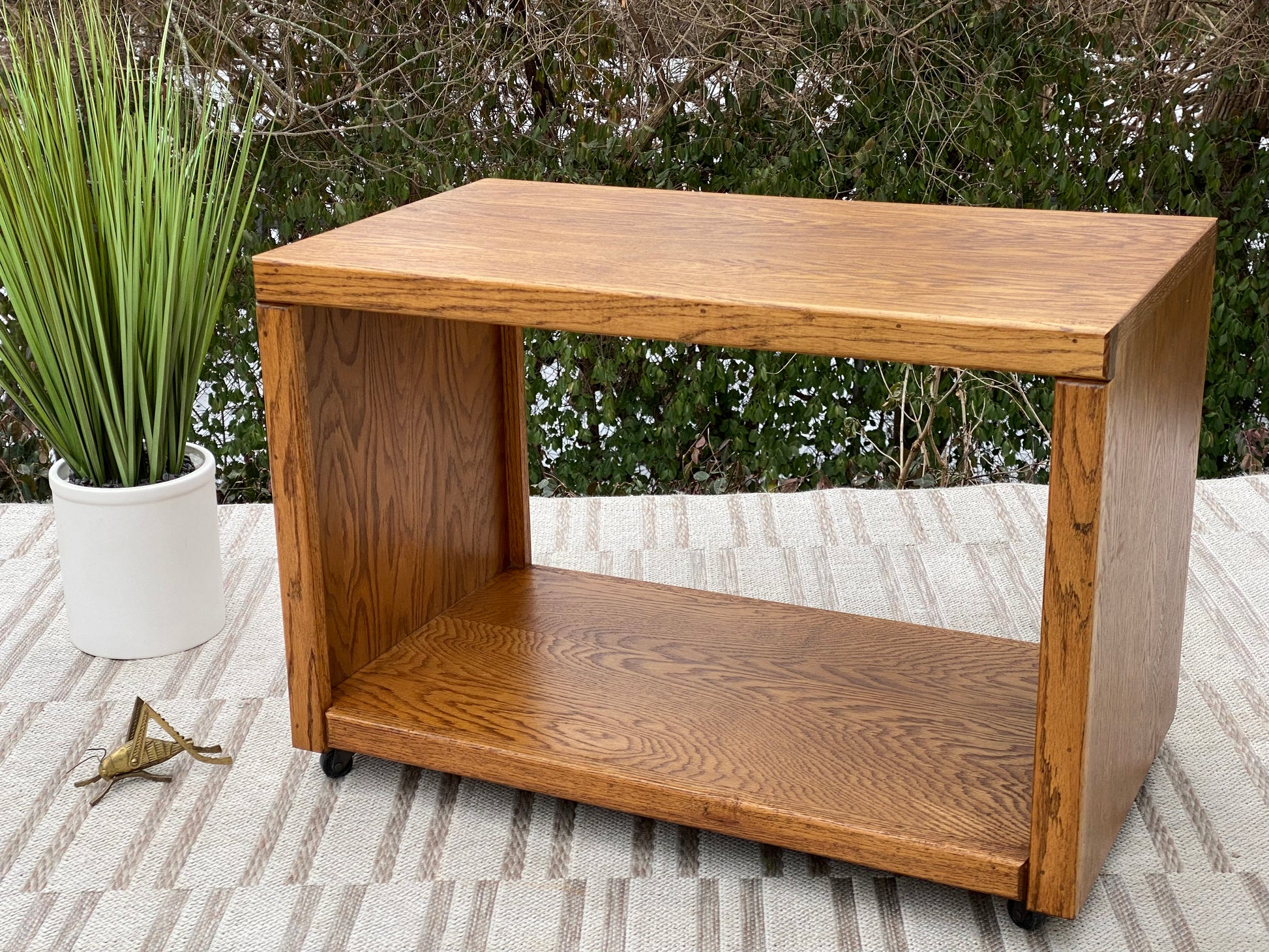 Fresh find! ❄️❄️ Check out this awesome vintage MCM mid century modern solid wood rolling stand. We picture a plant stand or a small book shelf. Either way, we love it! 20” x 30” x 16” Good condition