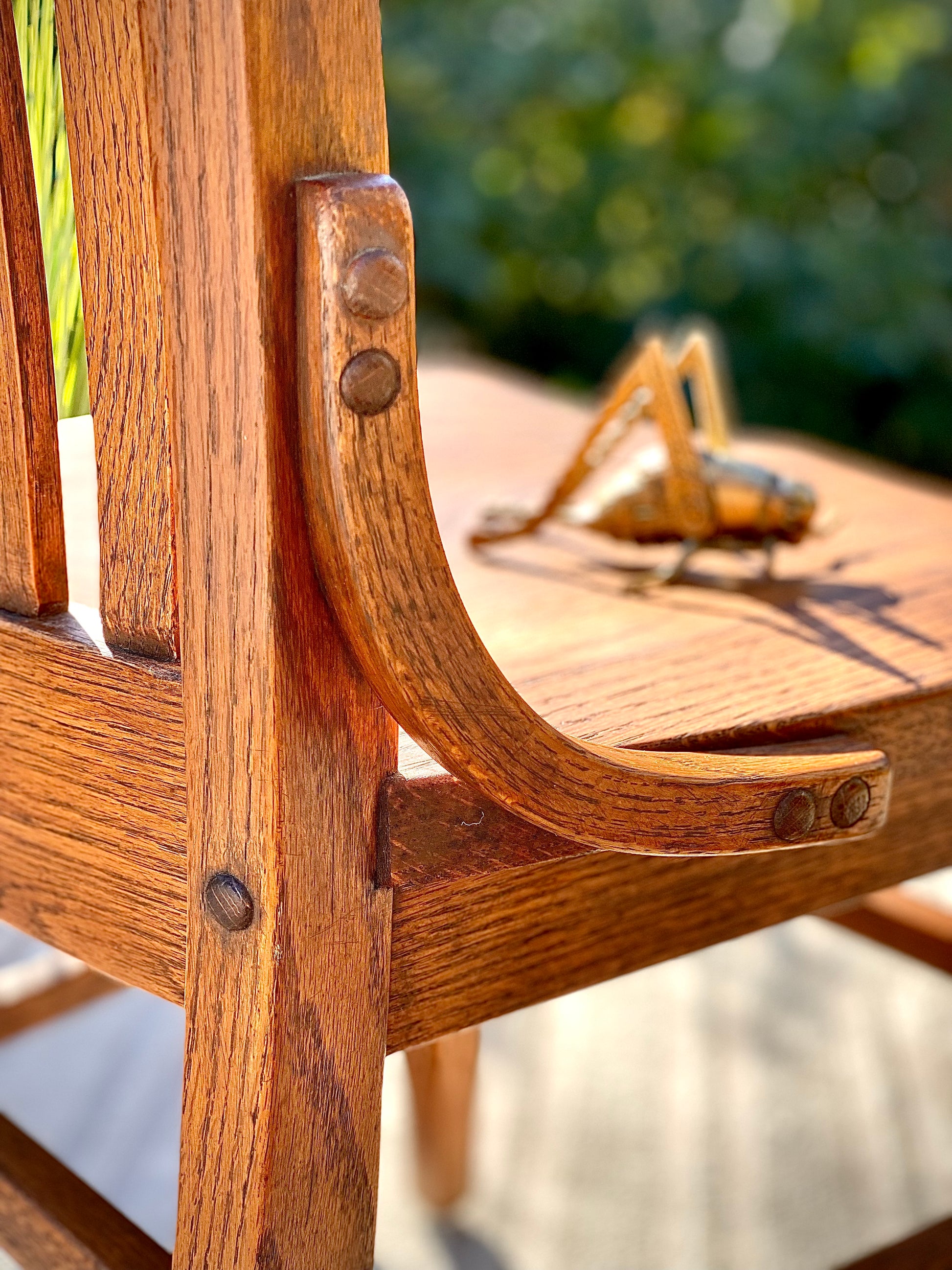 SOLD - New arrival! 🍁🍂 Check out this 1940s vintage wooden oak desk chair. Sturdy construction and ready to go. 36”h x 18” x 18” Good condition