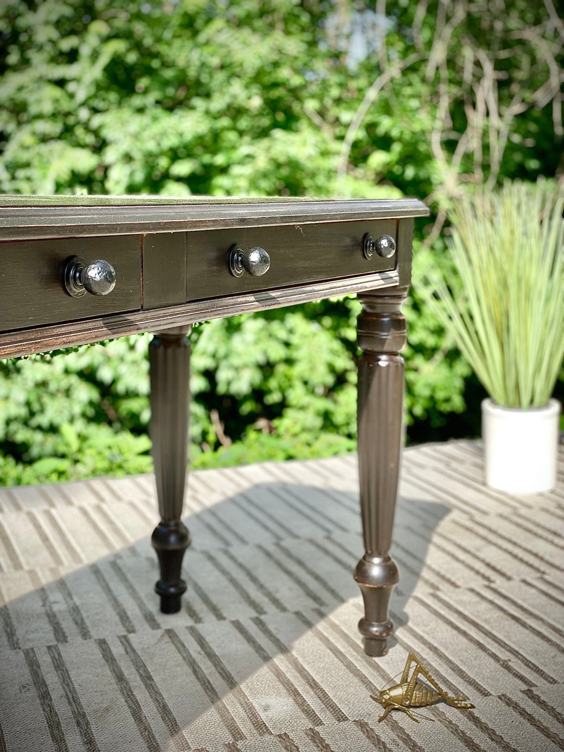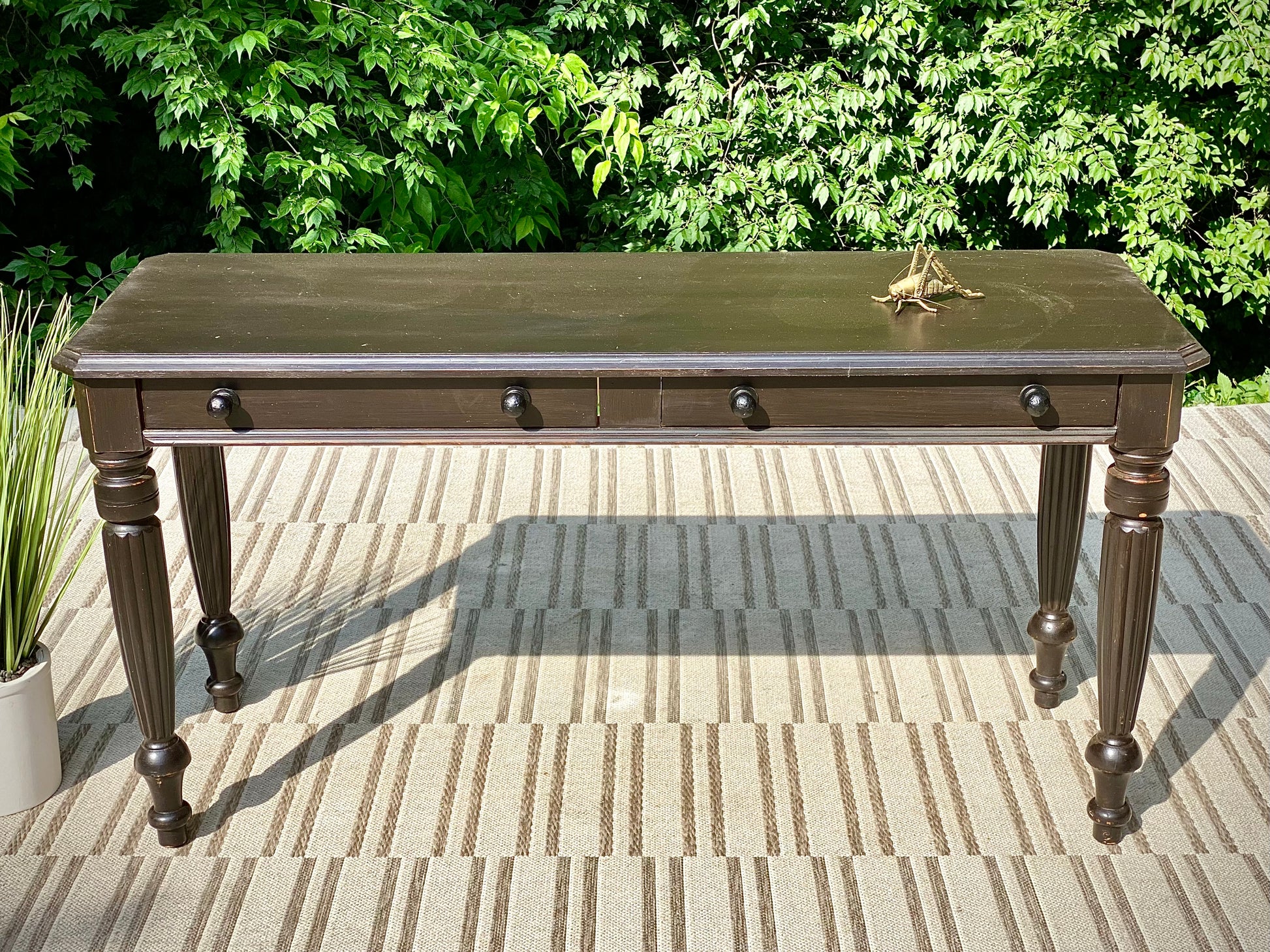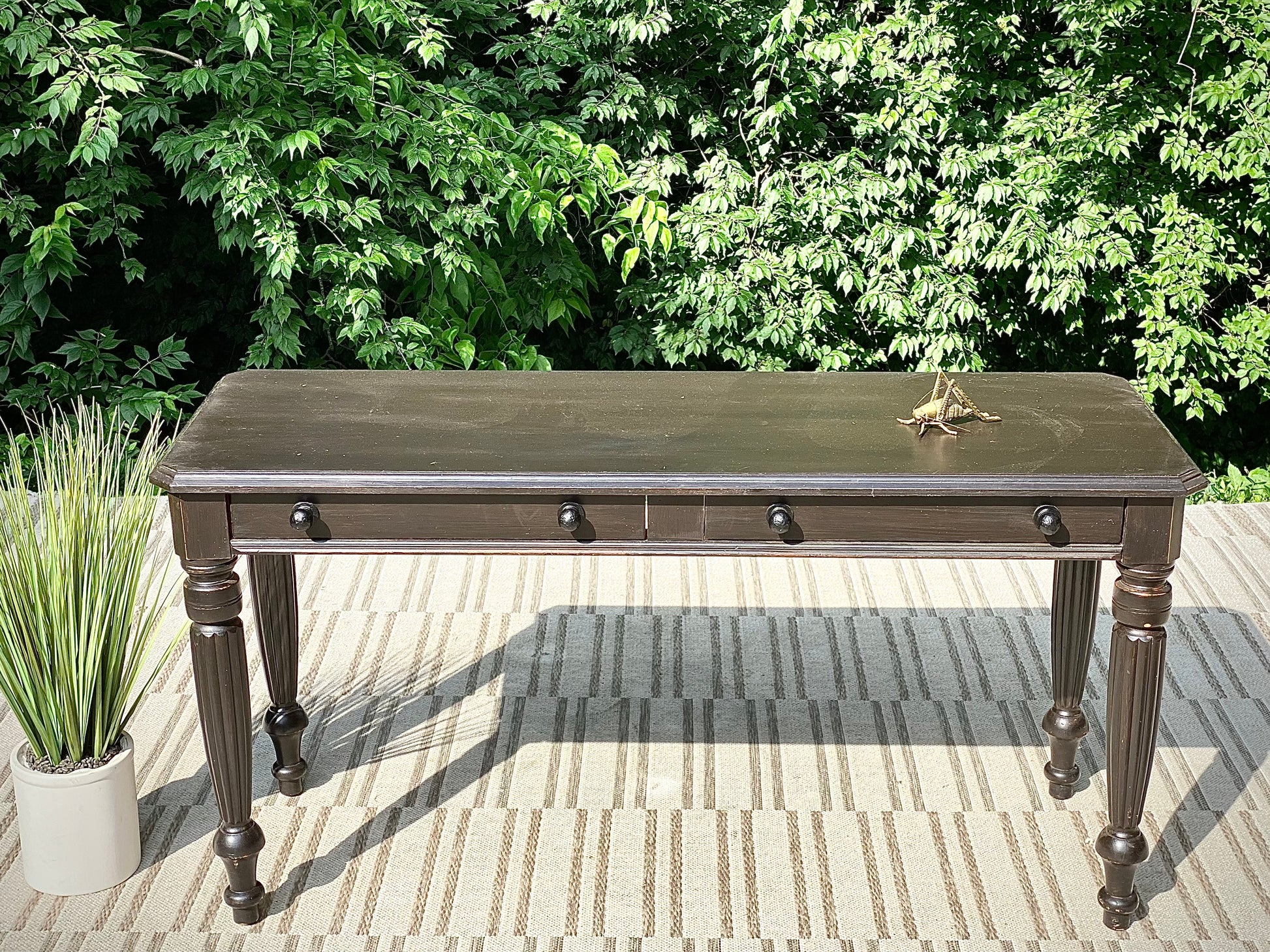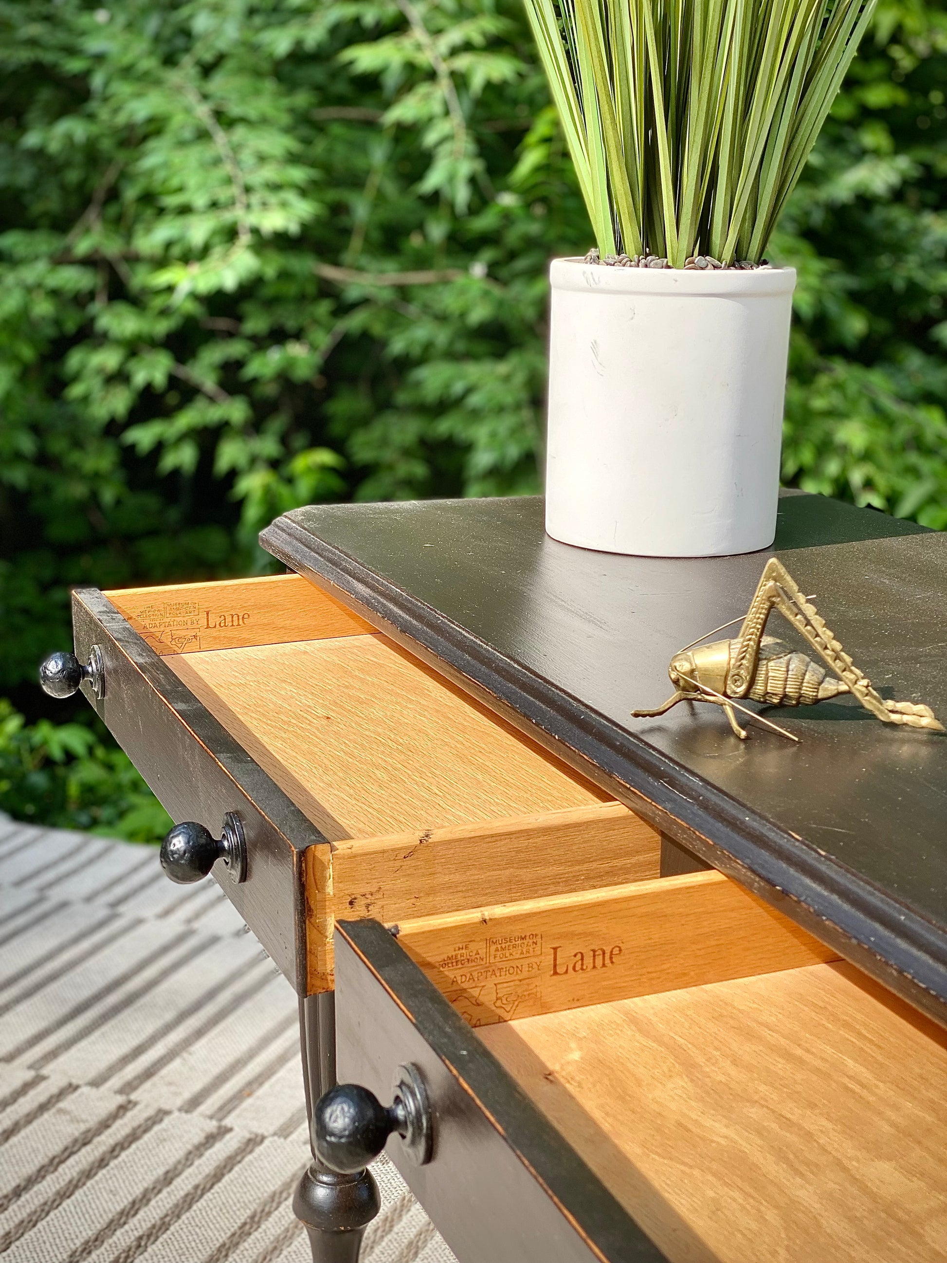 SOLD - Fresh find! 🪴🌱 Check out the vintage black painted Lane hallway table. classic design with two little drawers for storage. Great piece for a hallway with a piece of art above it. 28” x 56” x 21” Good condition