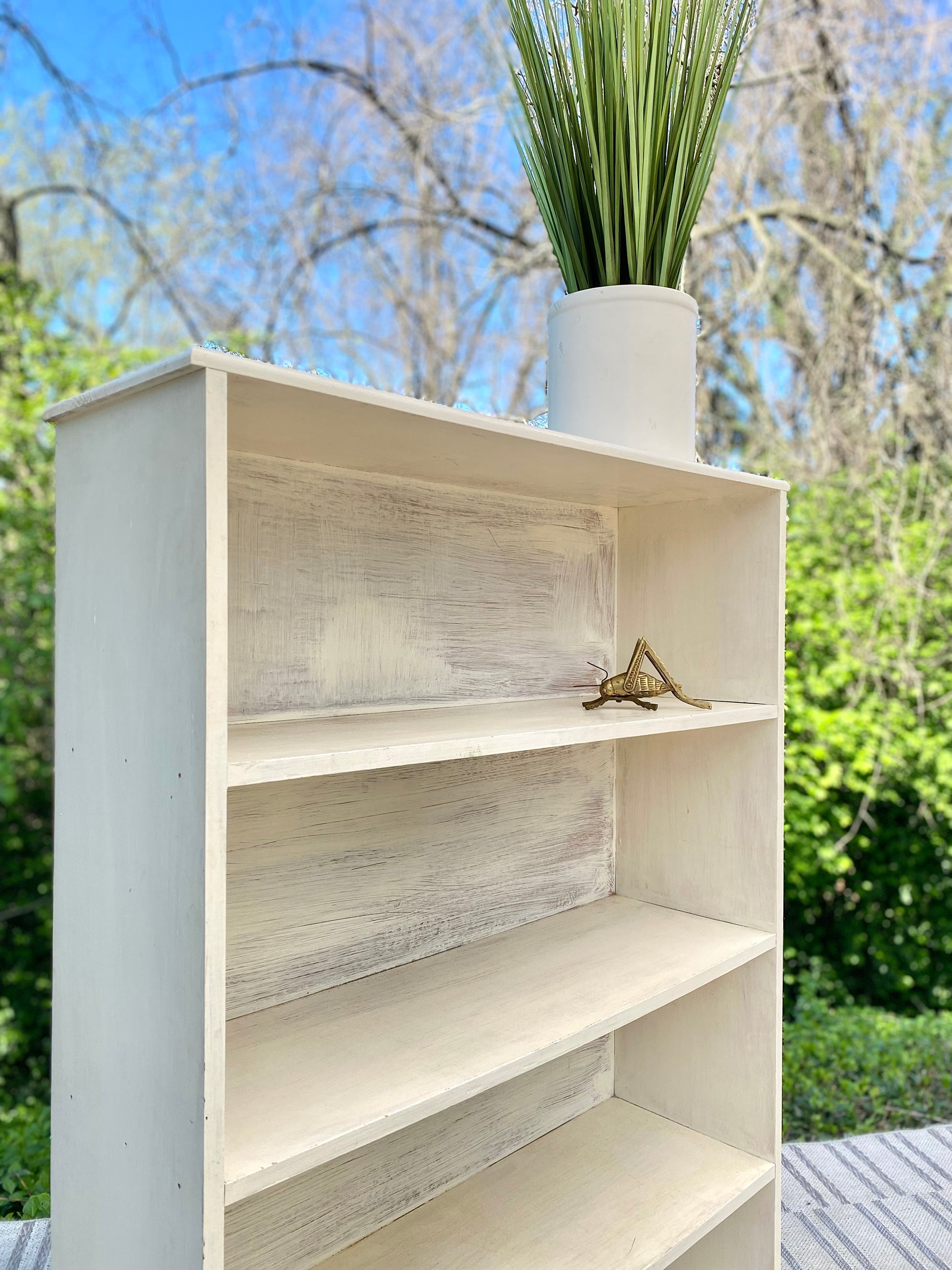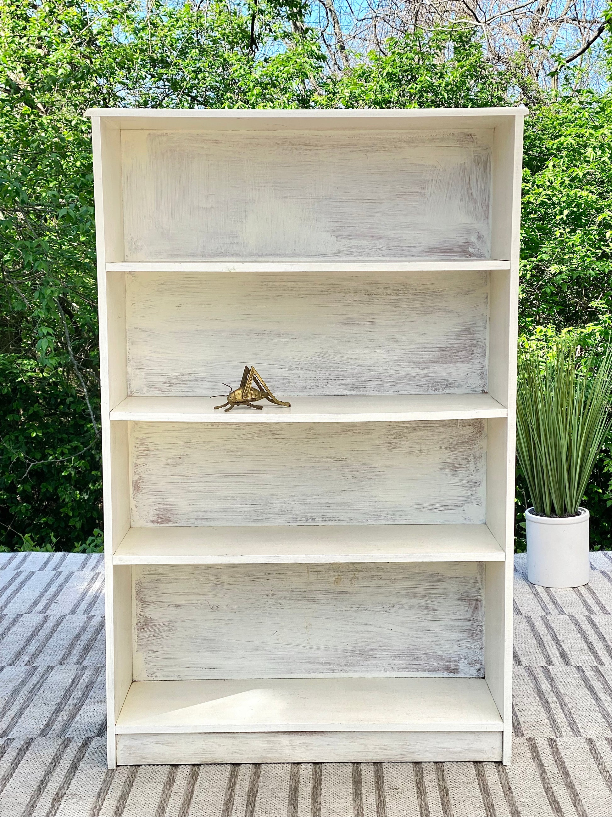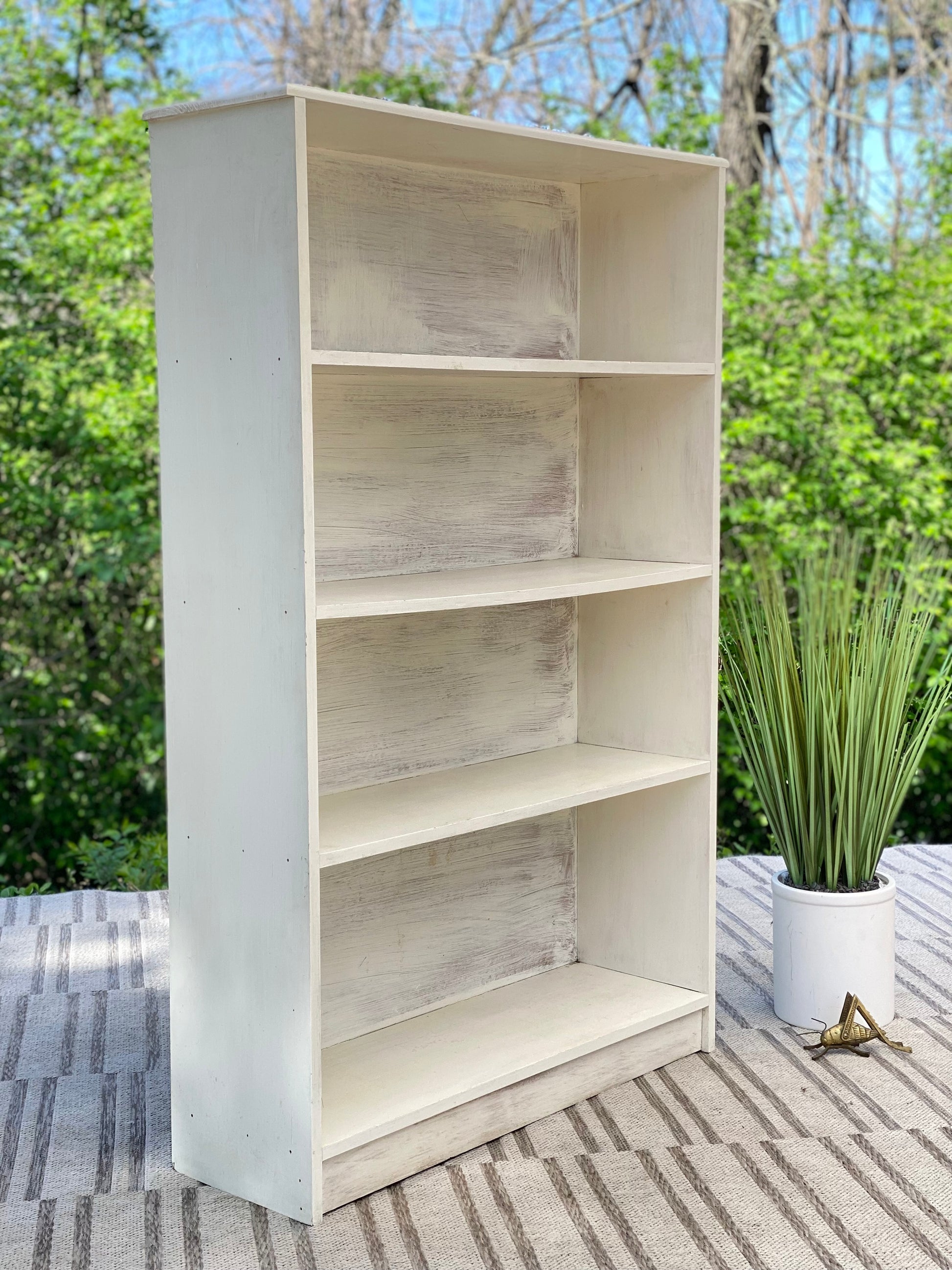 Fresh find! 🪴🌱 We love this vintage white painted pine bookshelf. Classic vibe to hold all of your favorite collectibles. 48” x 31” x 10” Good condition
