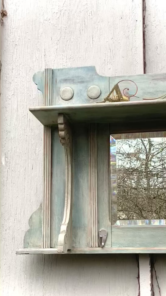 Newest arrival! ❄️❄️ We love this vintage farmhouse style painted mirror. Ready to hang with two newer coat hooks. We love the rustic vibe! 28” x 57” x 9” Good condition