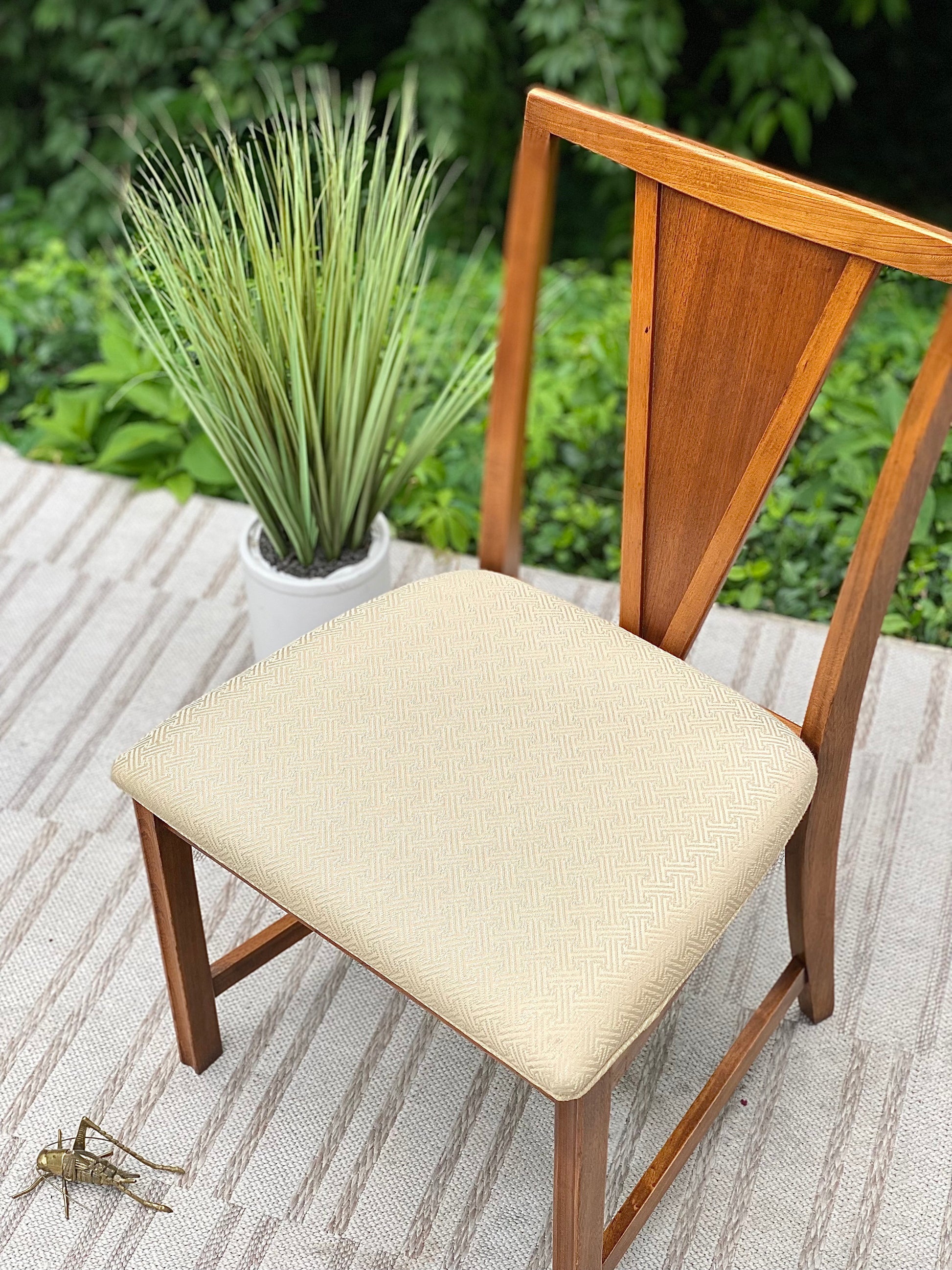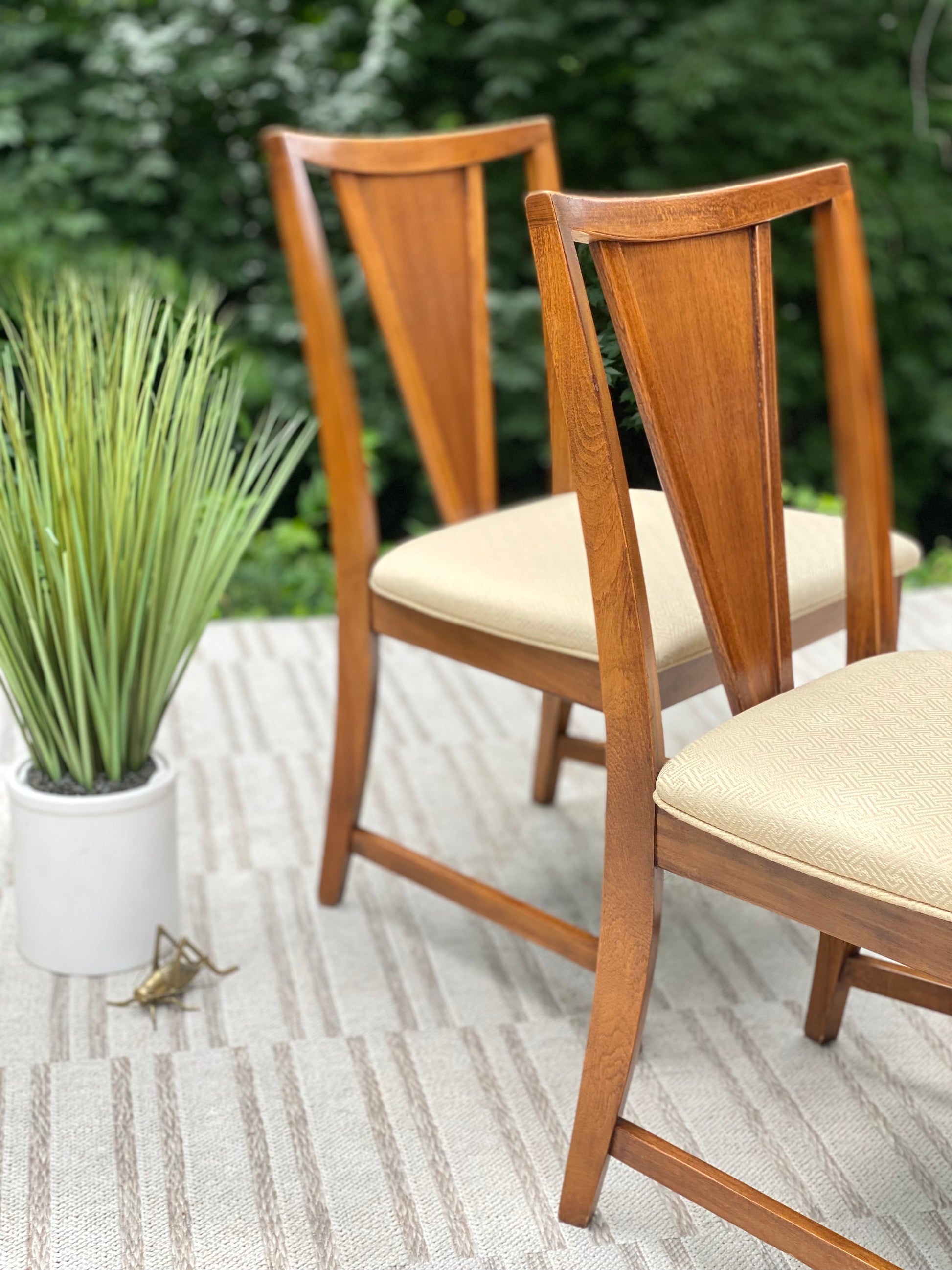 SOLD - New arrivals! 🪴🌱 We love the vibe of this pair of MCM mid-century modern upholstered chairs per. Perfect for a small table or an extra two chairs to add to an already fun set. 34” x 20” x 19” Good condition