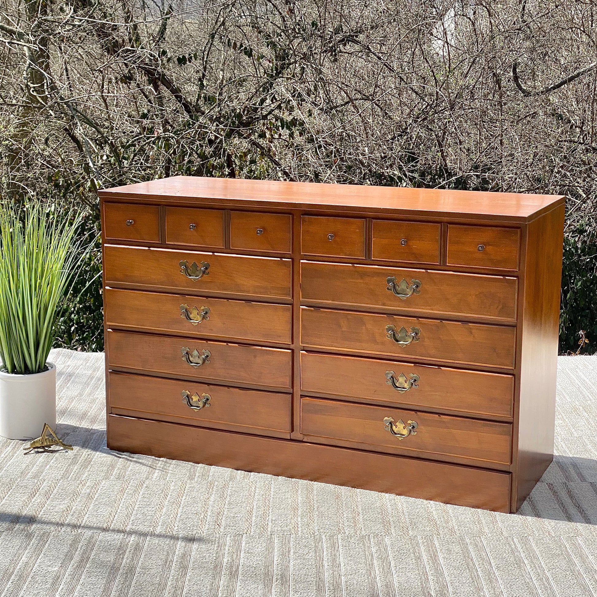 SOLD - Fresh find! 🌱❄️ Check out this vintage 6 drawer dresser with original hardware. Good storage space with a classic vibe. Wear on the top and would make a great project piece or extra storage. 40” x 48” x 18” Good condition