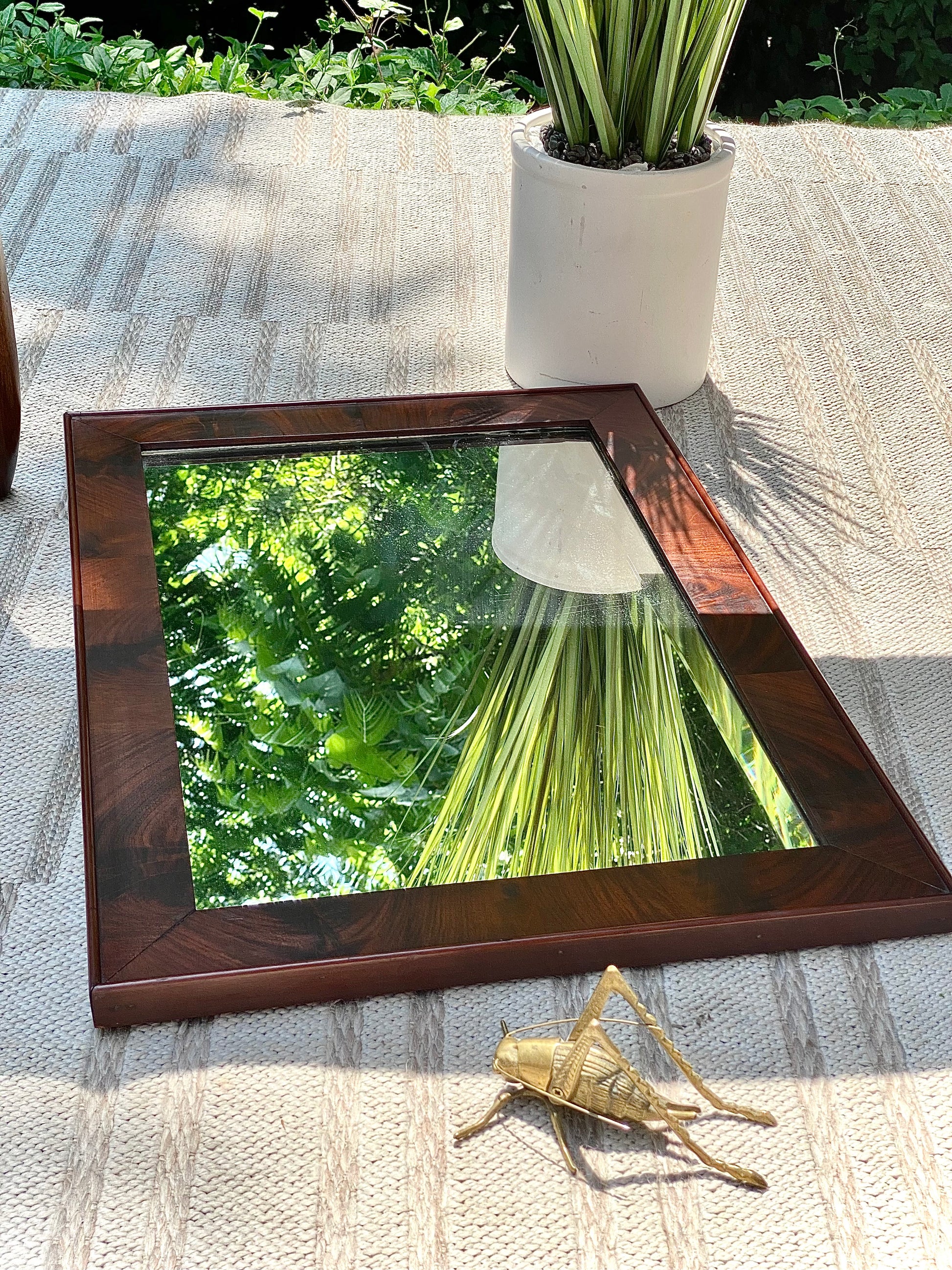 SOLD - New arrival! 🪴🌱 Check out this antique rectangle, wooden frame mirror. Gorgeous color and ready to hang. 26” x 18” Good condition