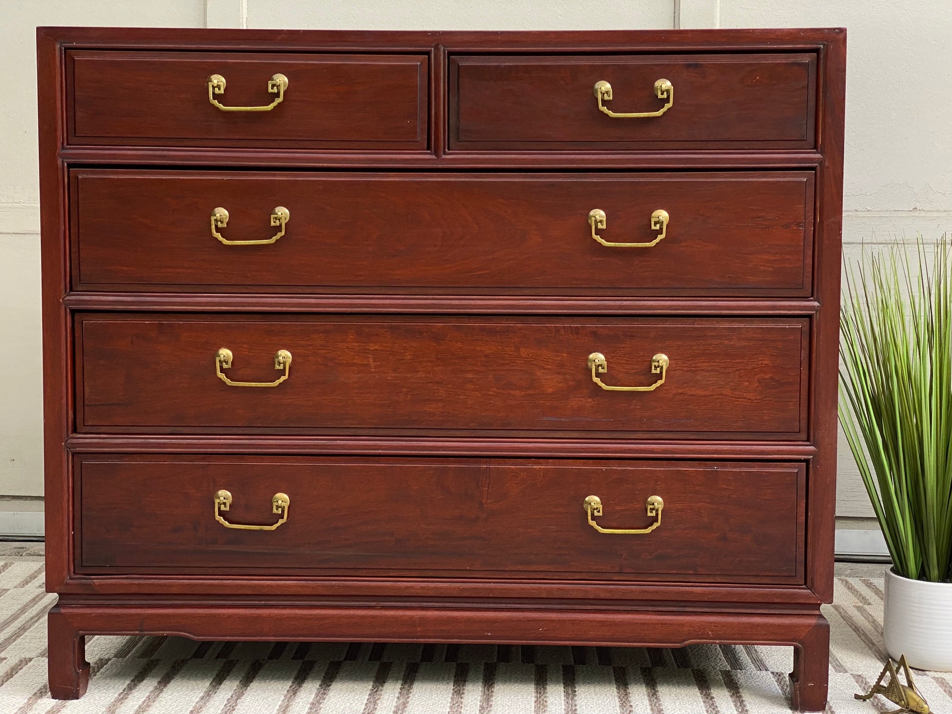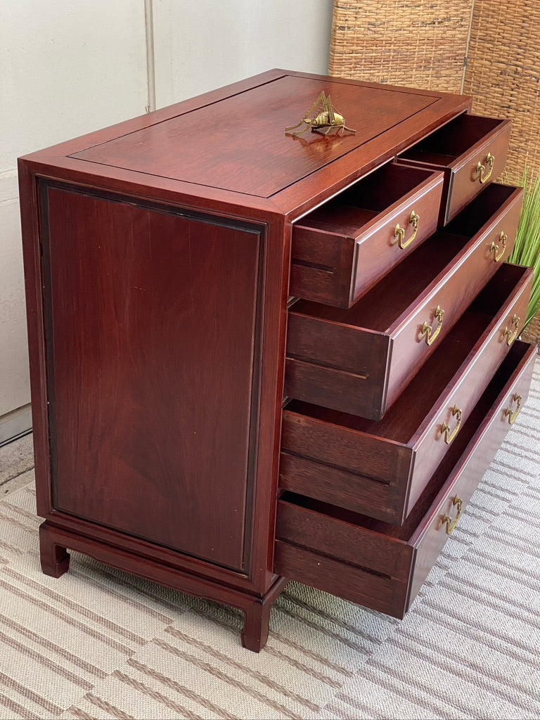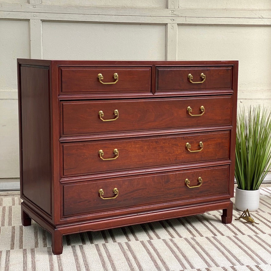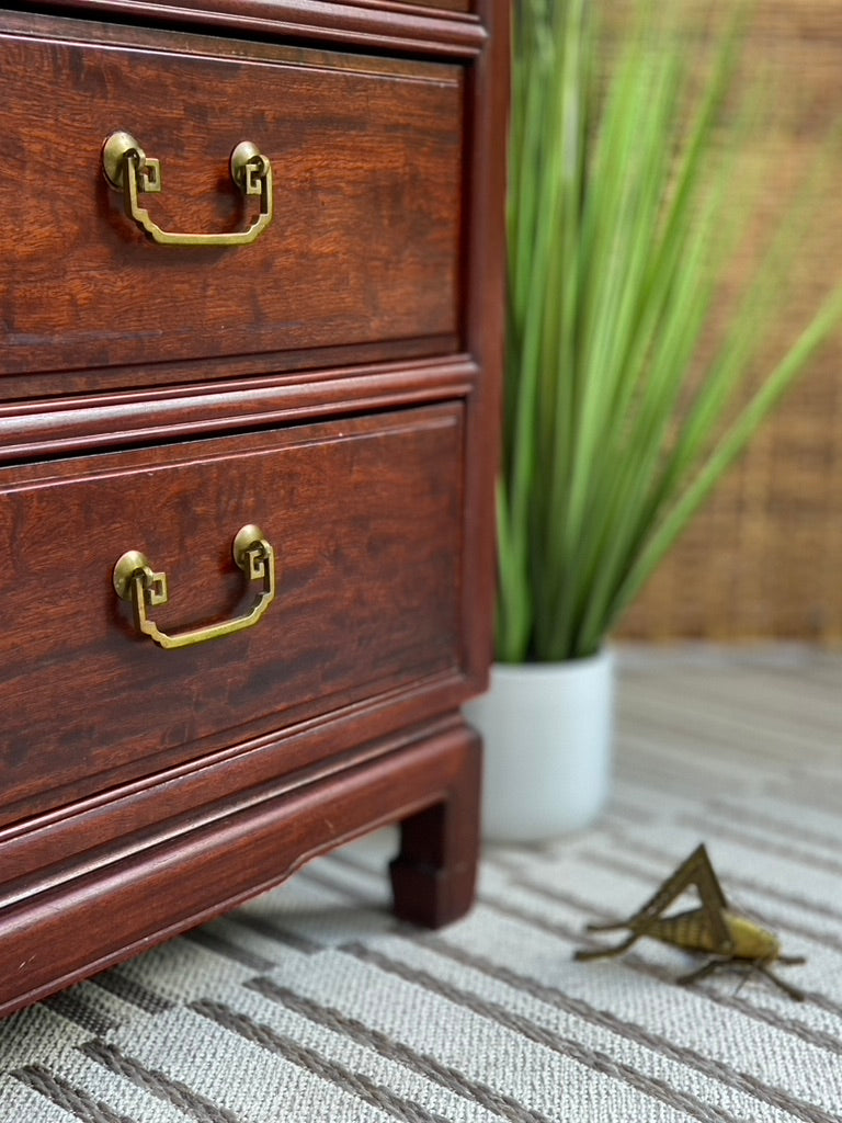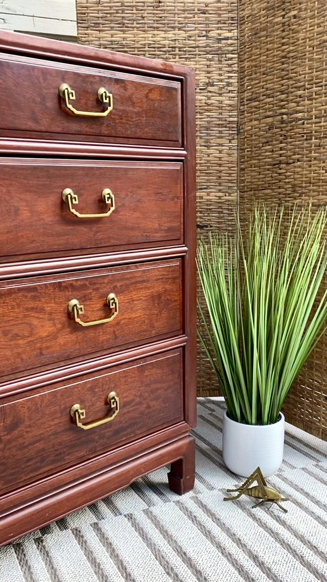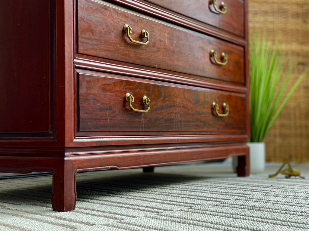 SOLD - Check out this beautiful vintage rosewood Asian style 5 drawer dresser. Tons of great space with a unique look. Good condition. 36" x 42" x 21" #dresser #furniture #shoplocal #cincinnati #velvetcricket