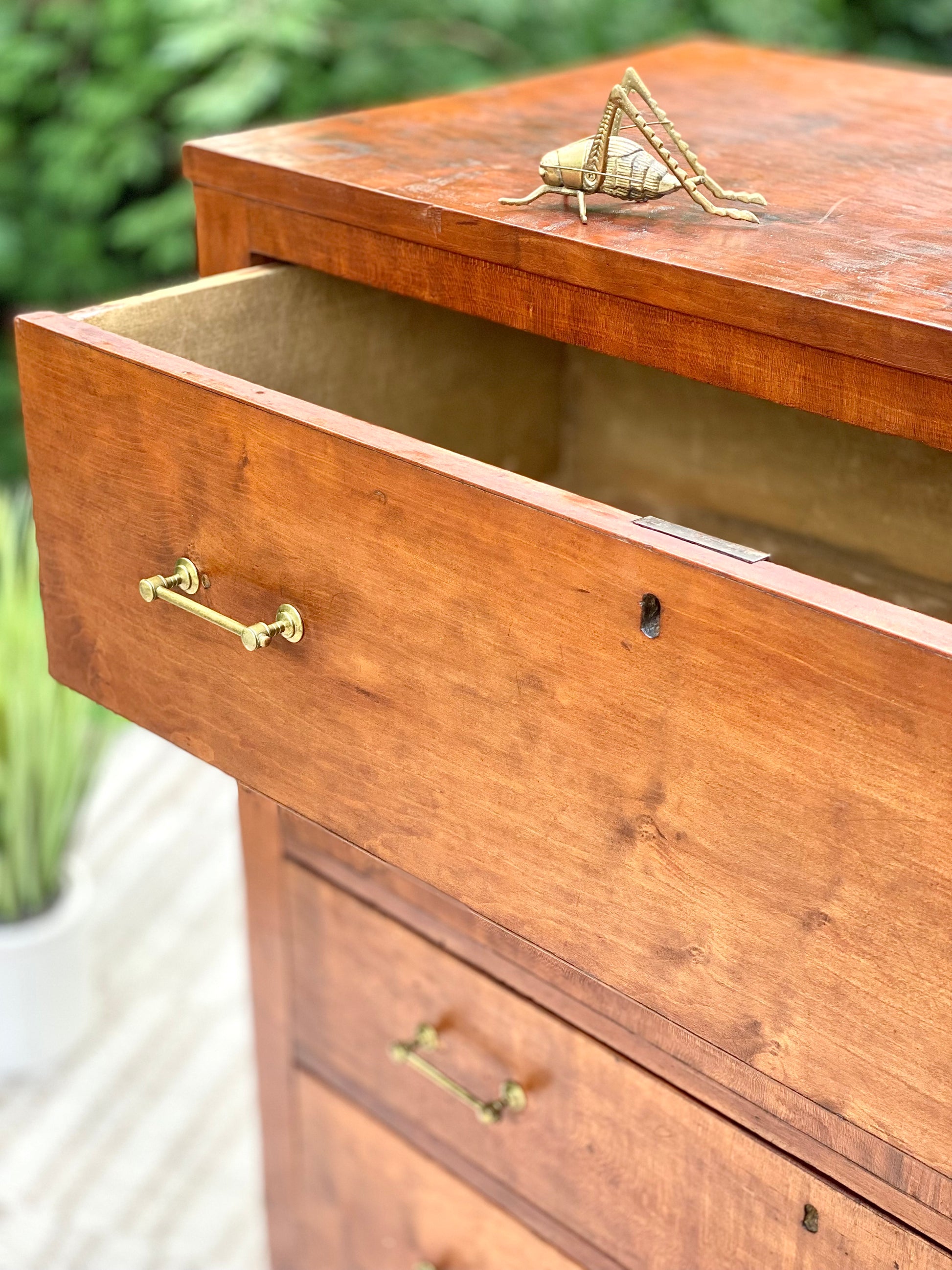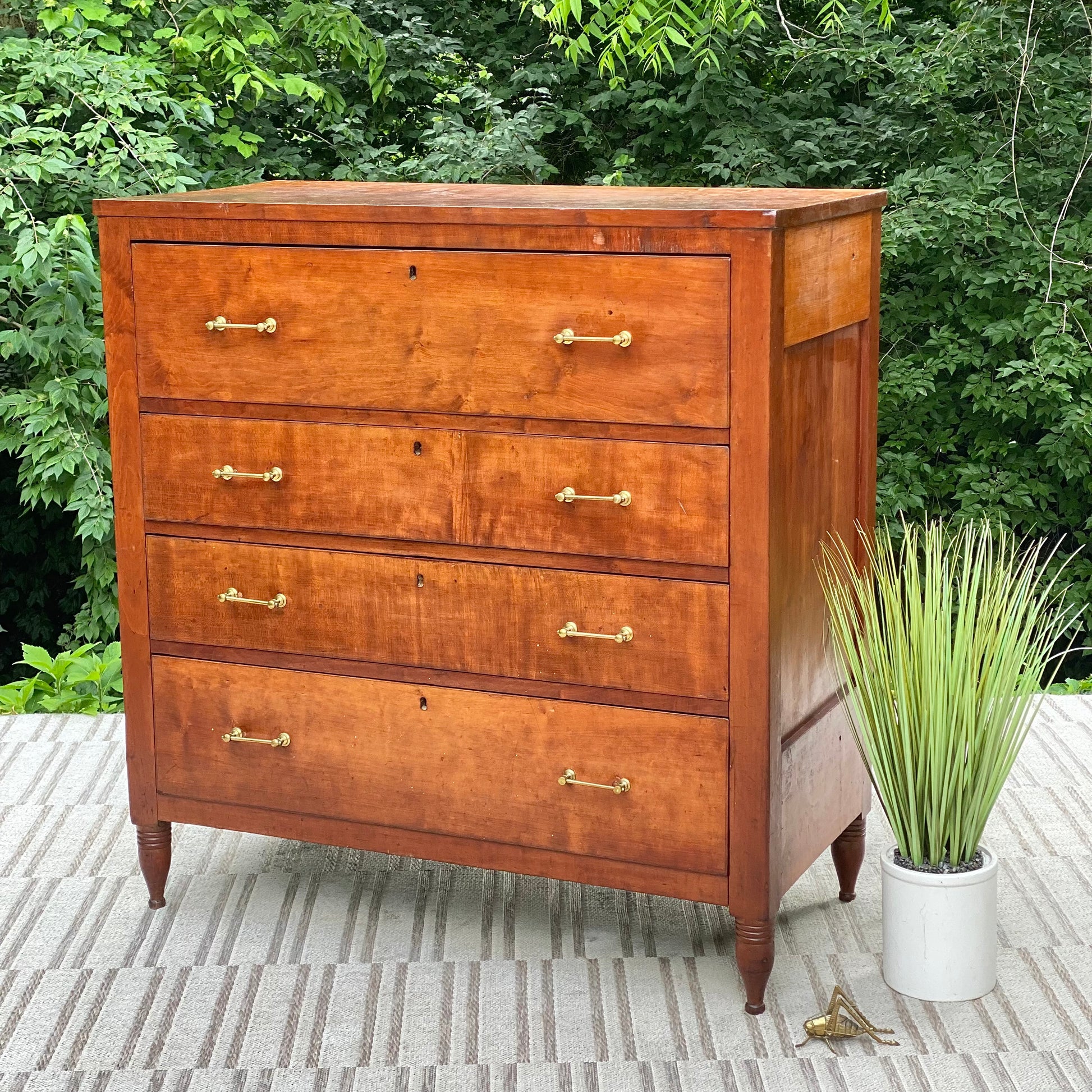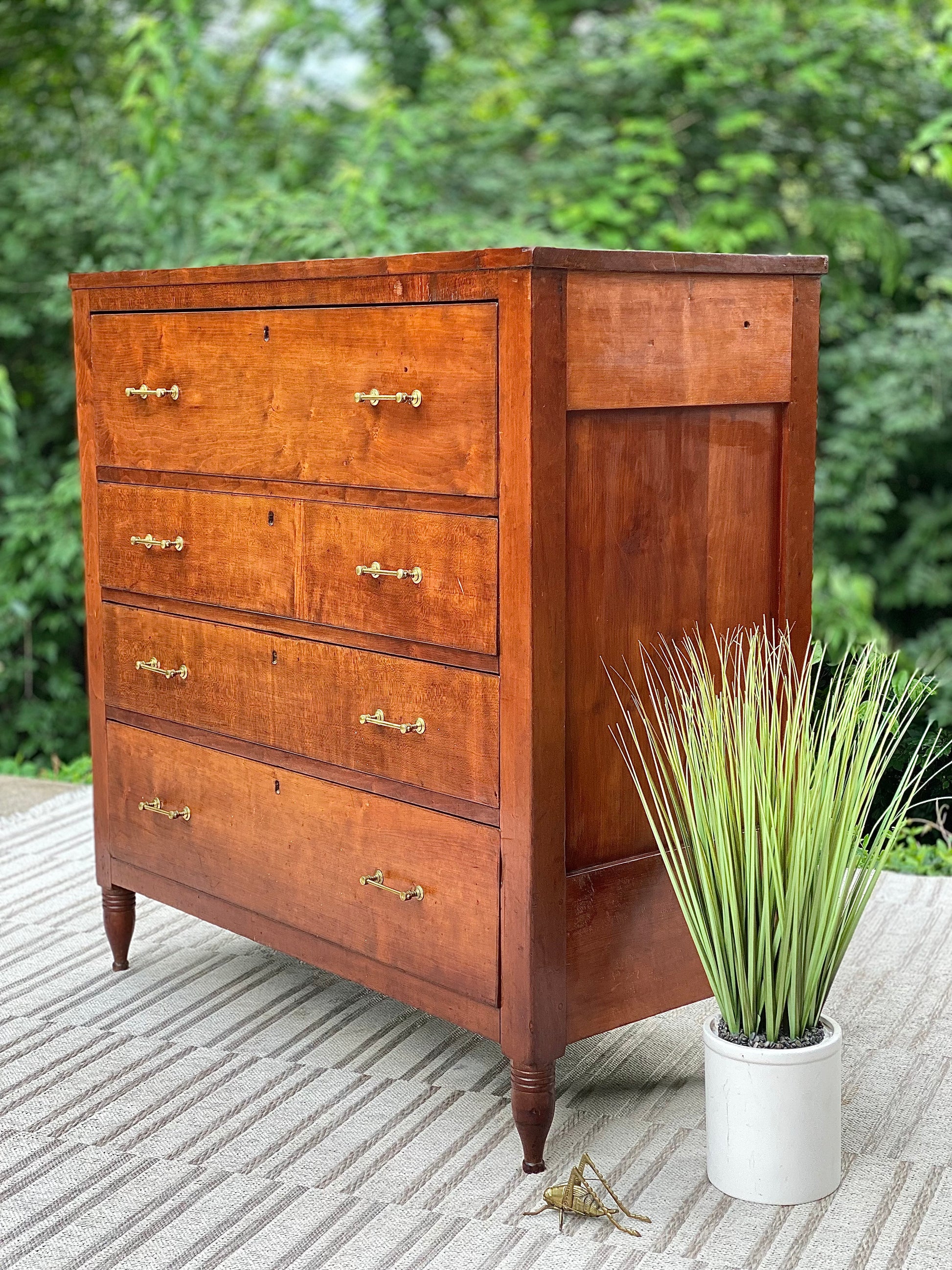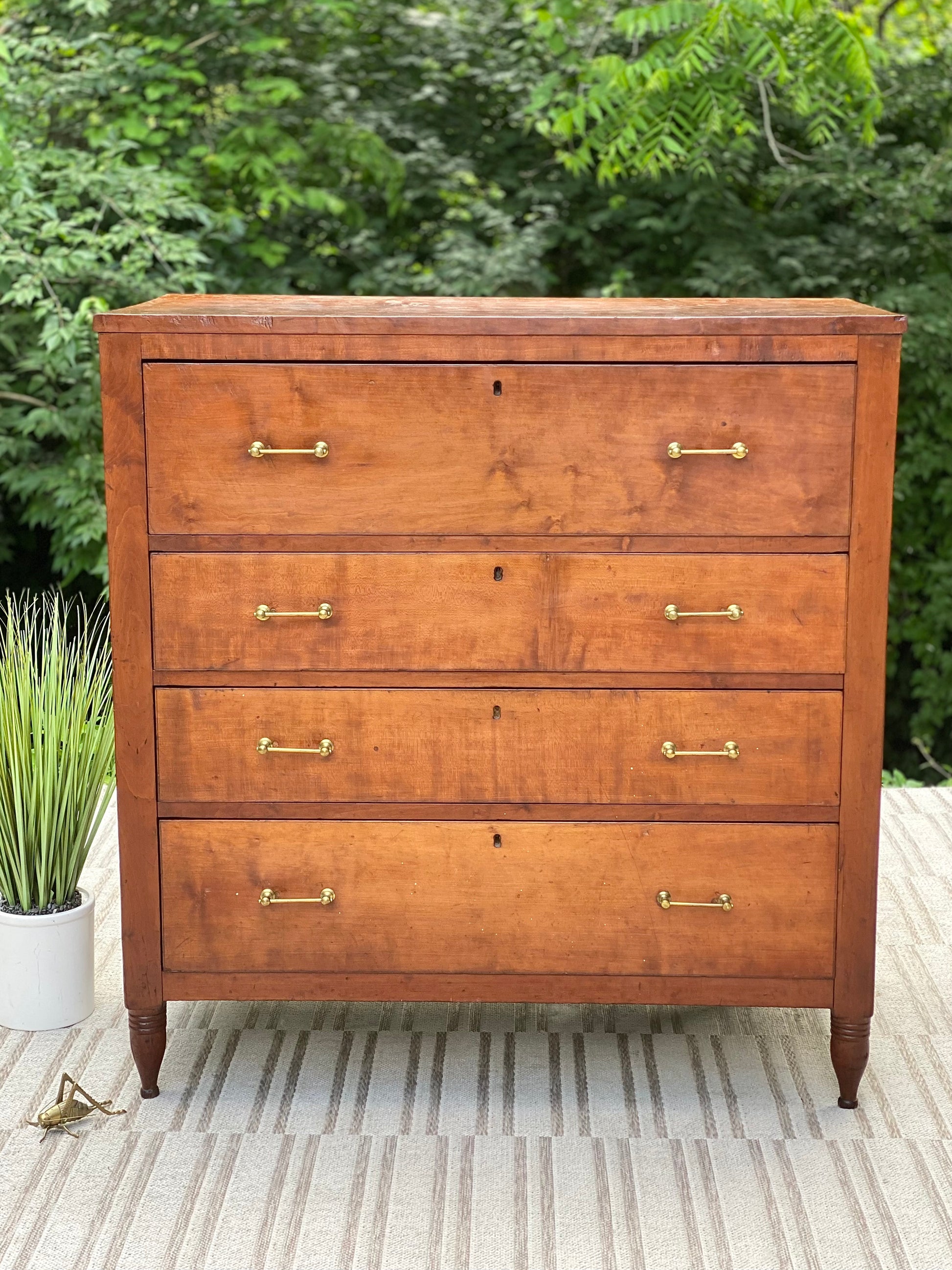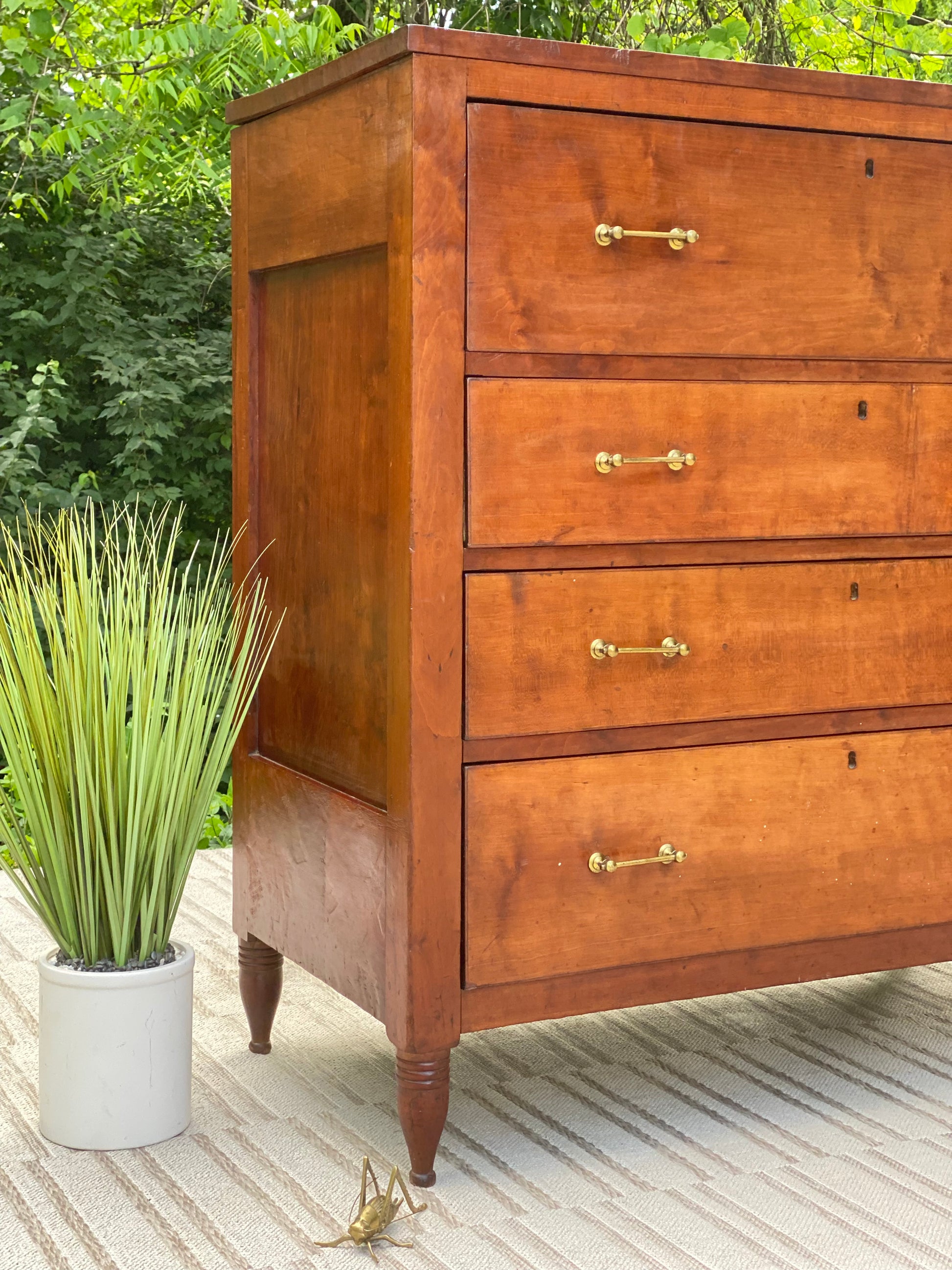 SOLD - New arrival! 🪴🌱 We are head over heels for this 200 year old solid cherry four-door dresser. Original brass pulls with years of character. We love it! 48”h x 46” x 24” Good condition