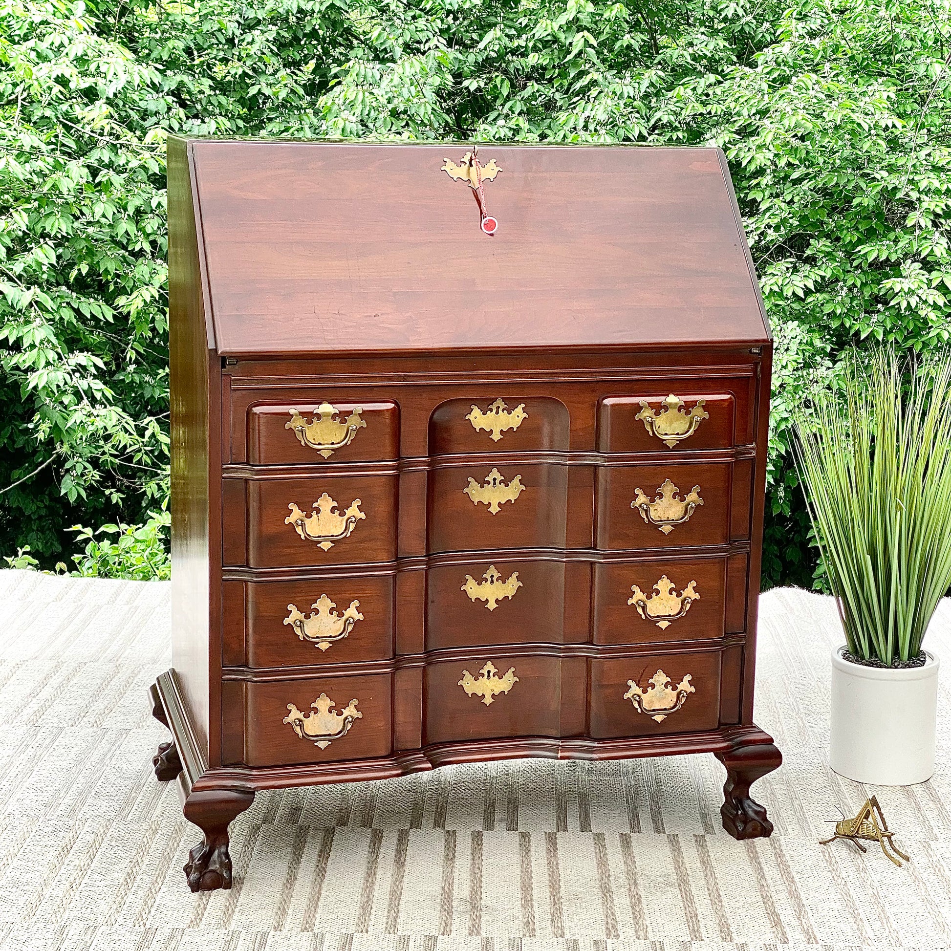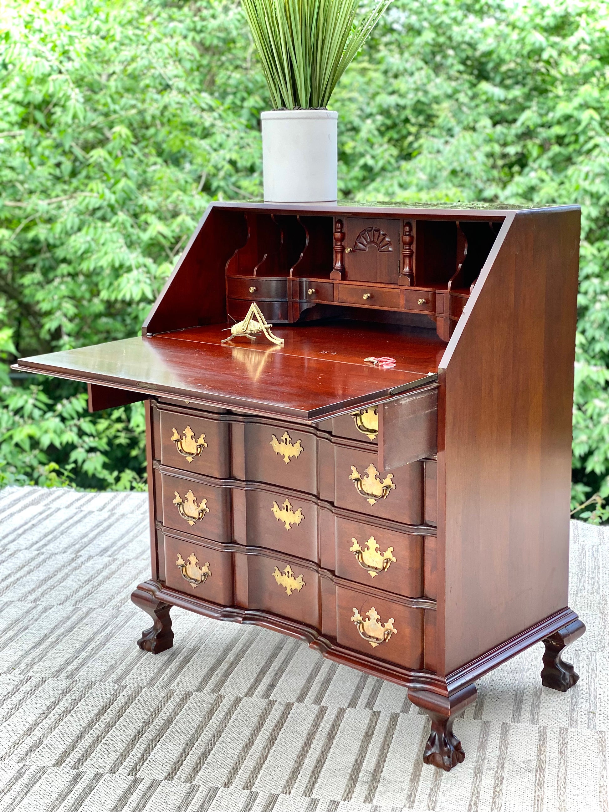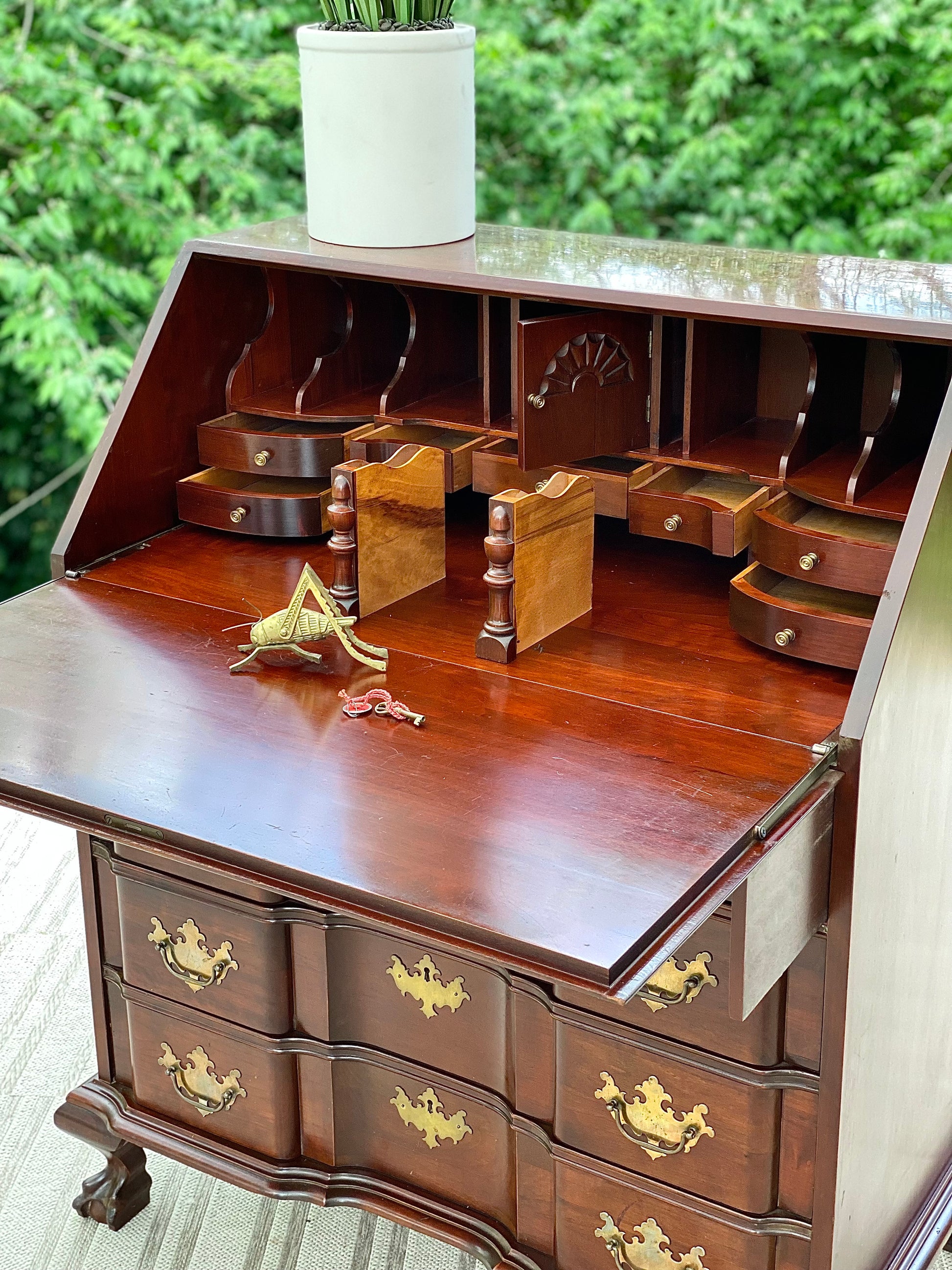 SOLD - Just arrived! 🪴🌱 Check out this beautiful vintage solid cherry Monitor of Jamestown NY secretary. Nice serpentine style drawer fronts with a stately vibe. You know we love this beauty! 41” x 33” x 21” Good condition