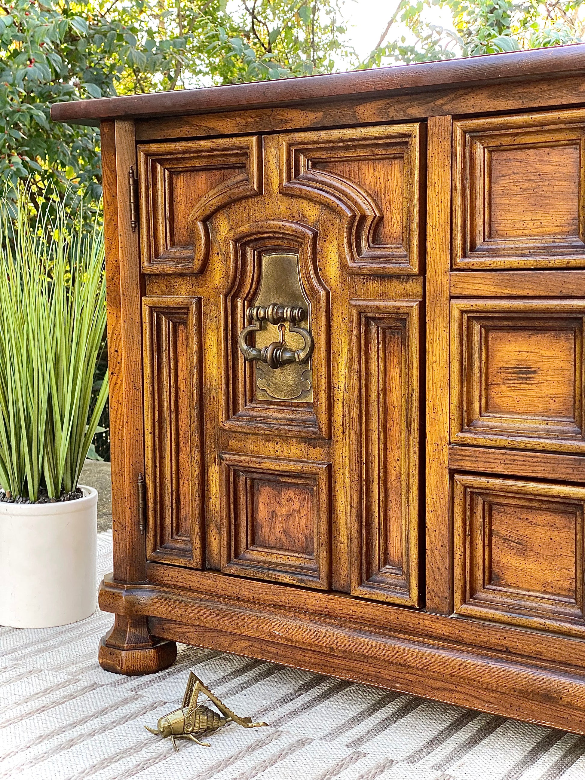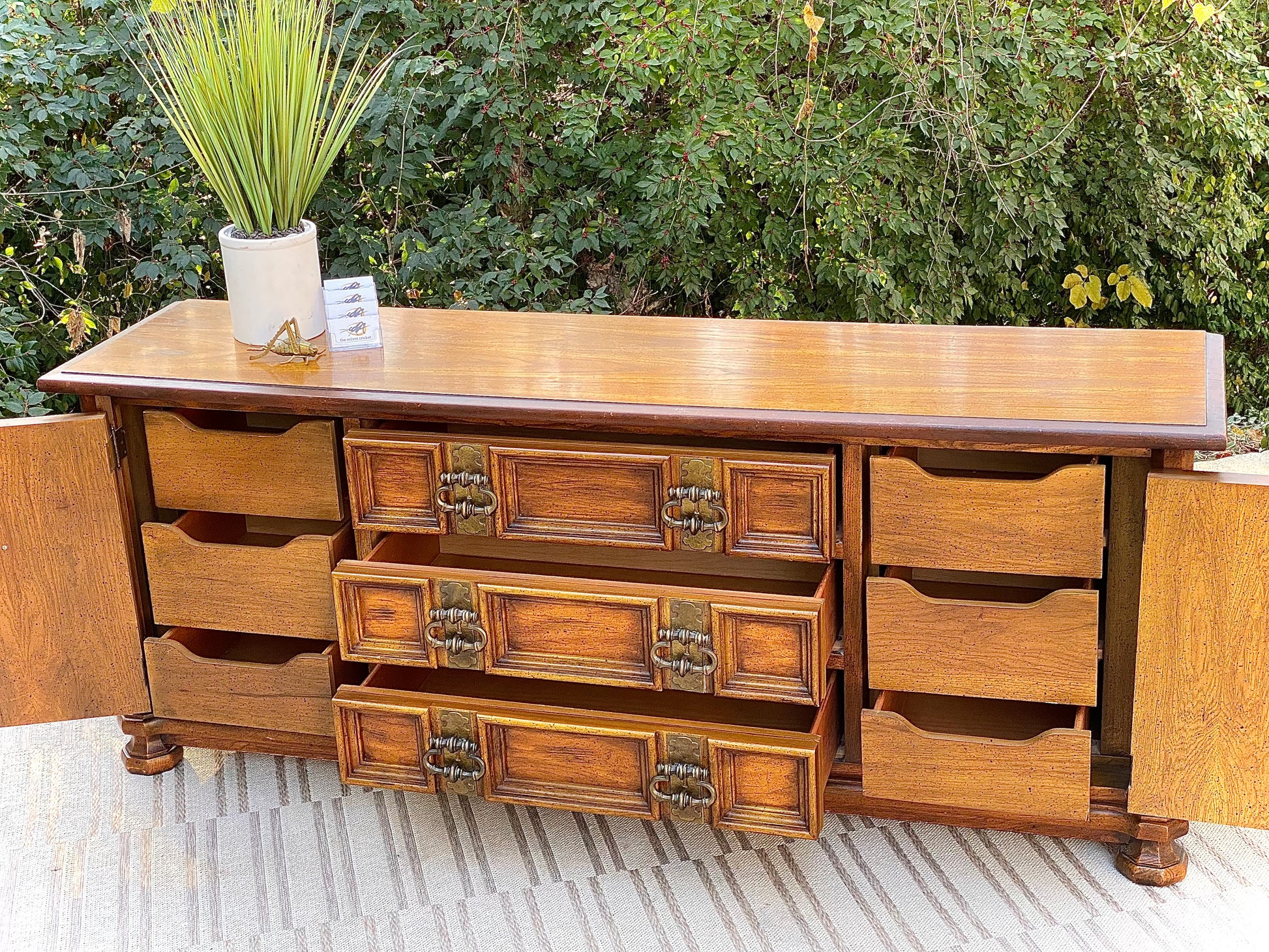 Fresh find! 🍁🍂 We love the vintage vibe of this Stanley 9 drawer lowboy dresser. Unique design with tons of storage. Great for the bedroom or large TV credenza. Drawers all work well. 32”h x 80” x 20” Good condition