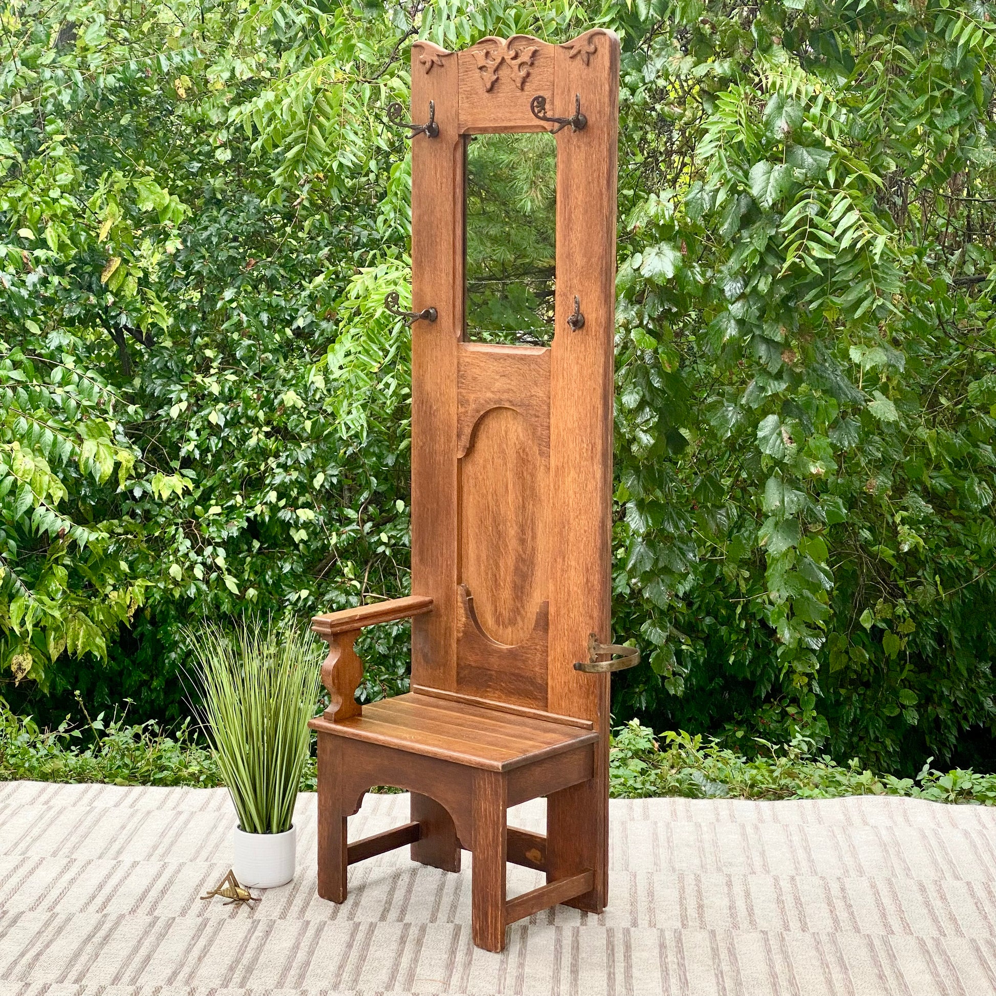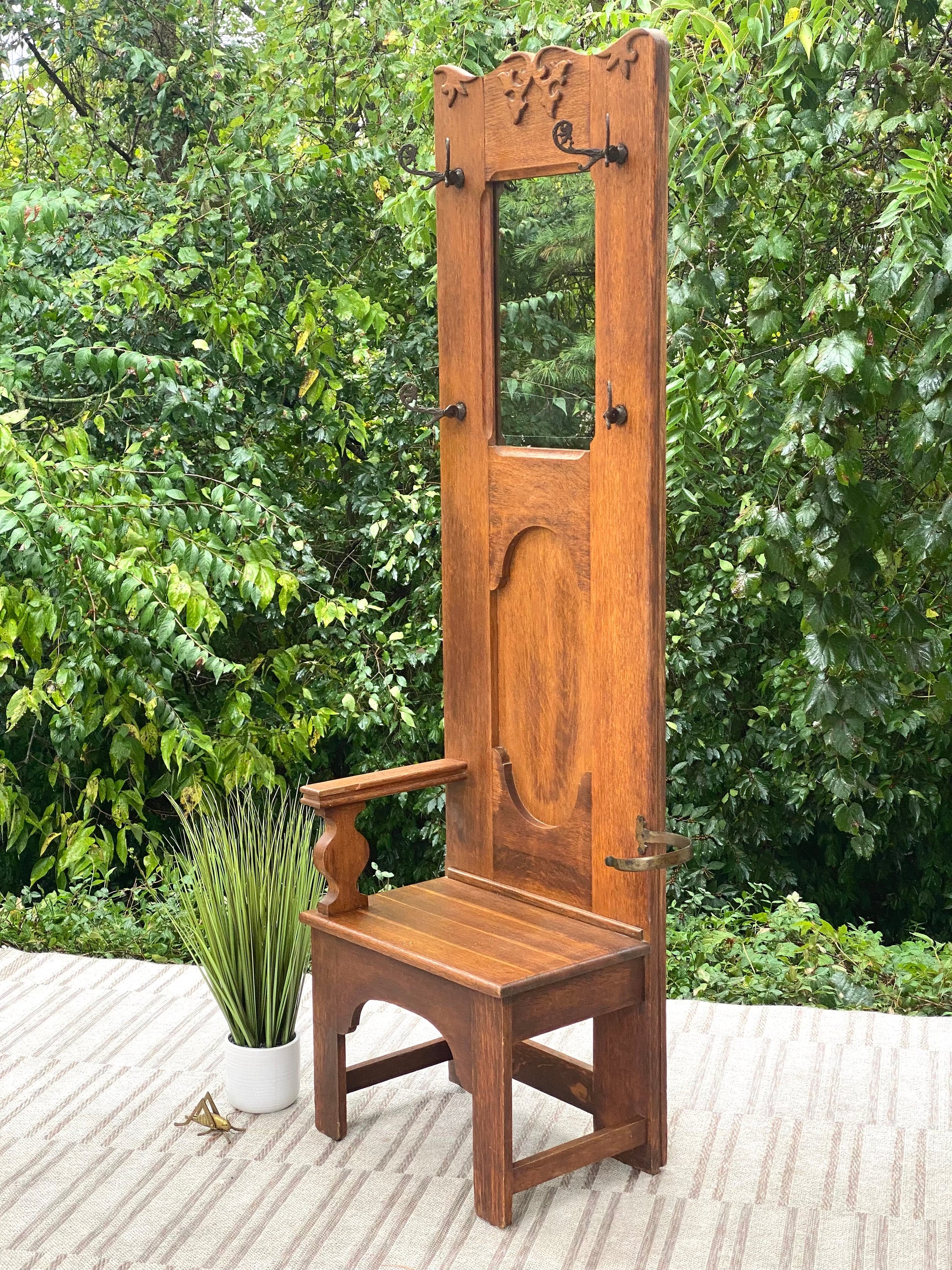 Vintage Tall Oak Hall Tree