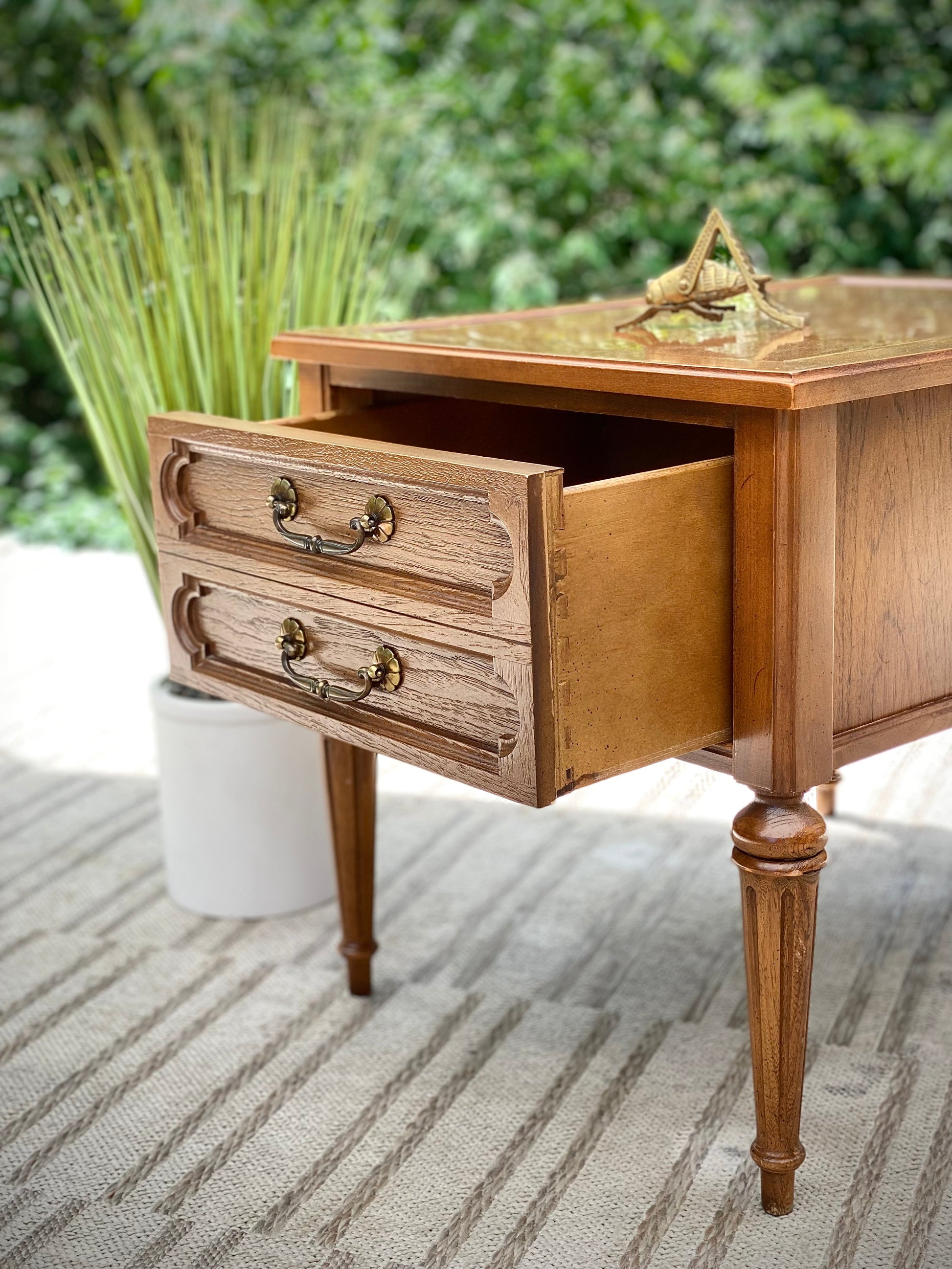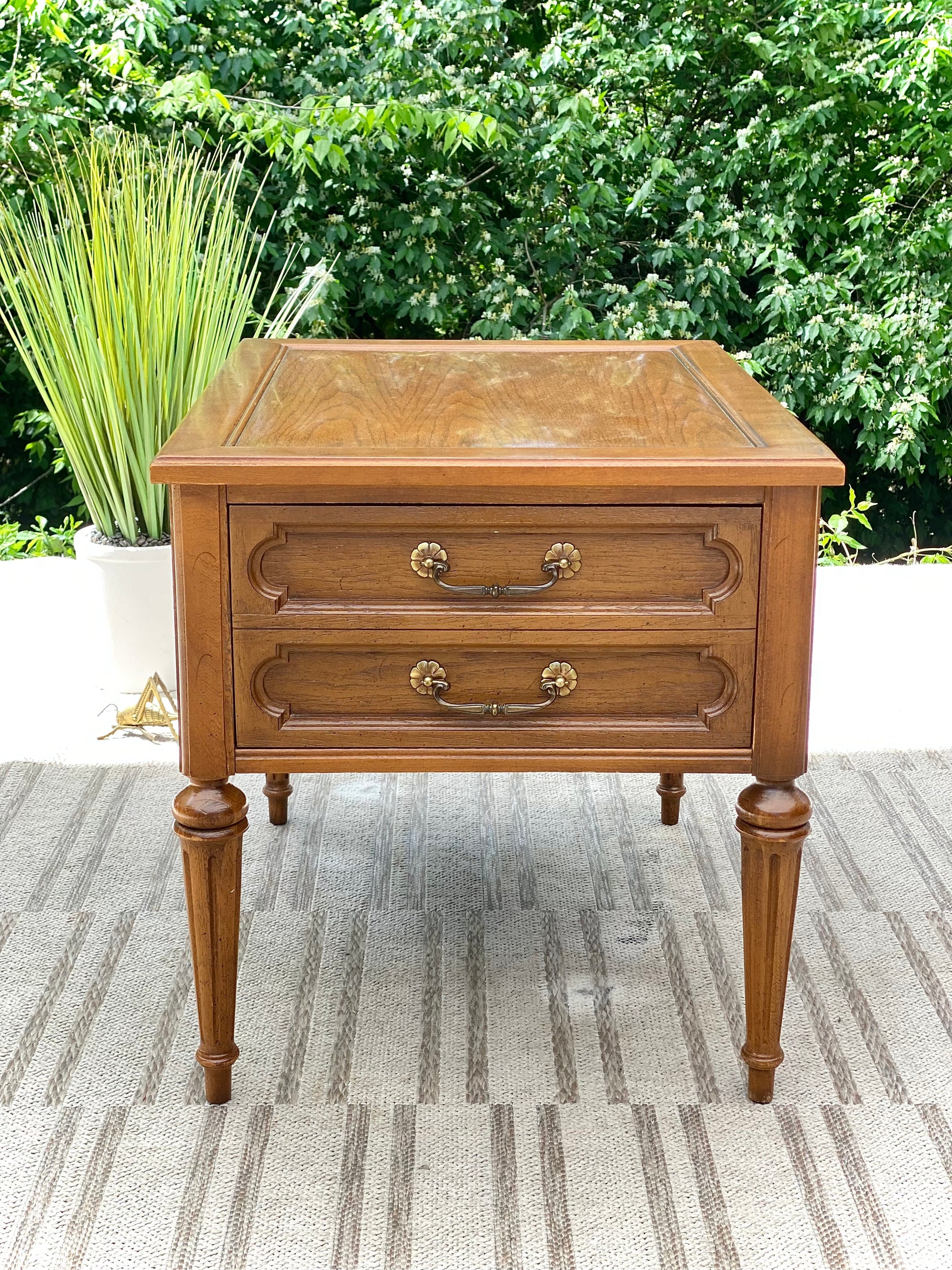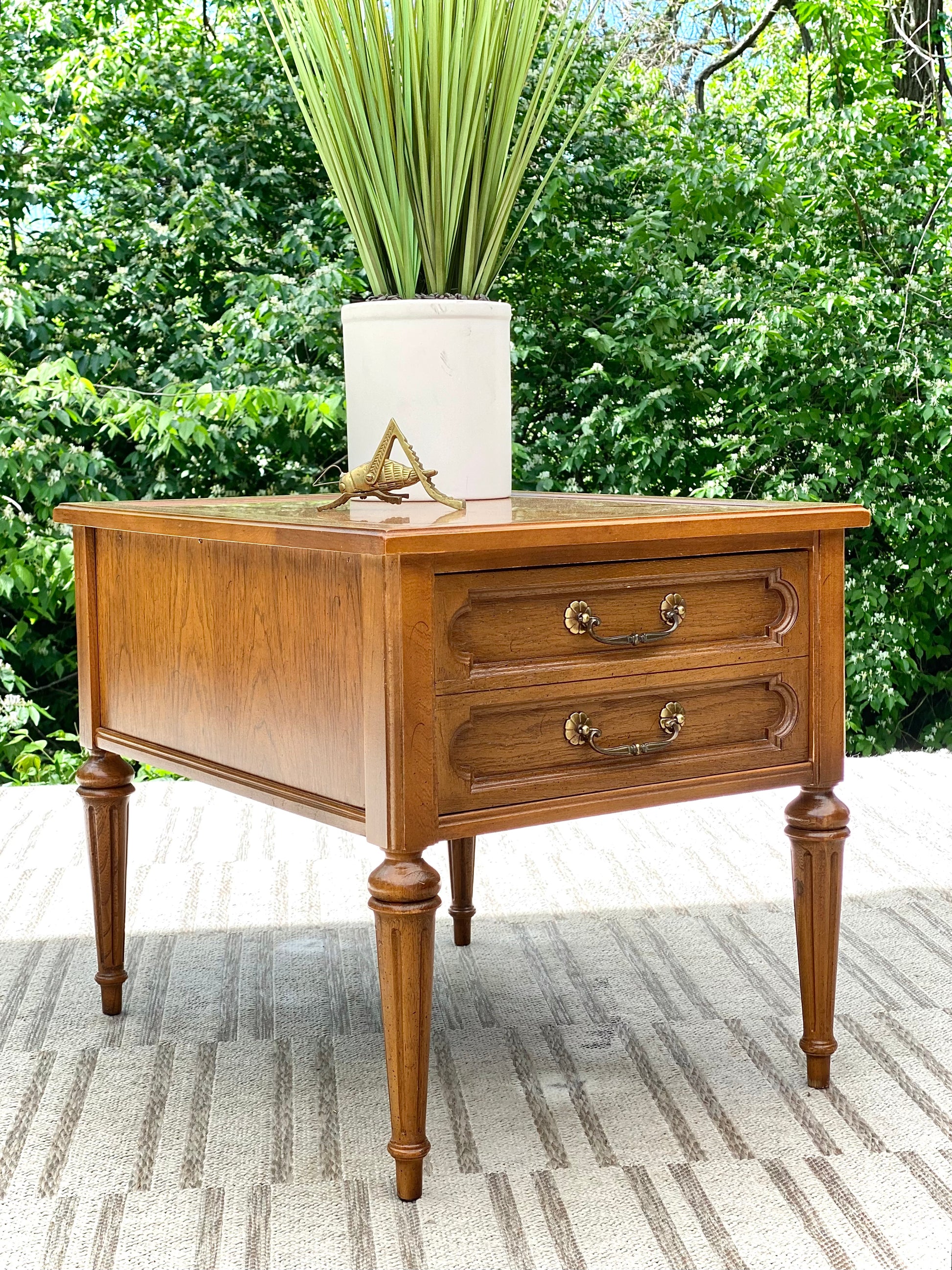SOLD - Just arrived! 🪴🌱 Check out this vintage Thomasville wooden side table. Single drawer for storage and original hardware. Great little piece! 21” x 20” x 26” Good condition