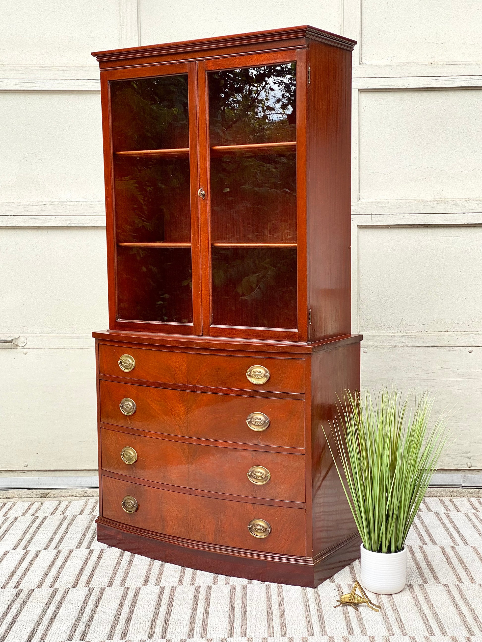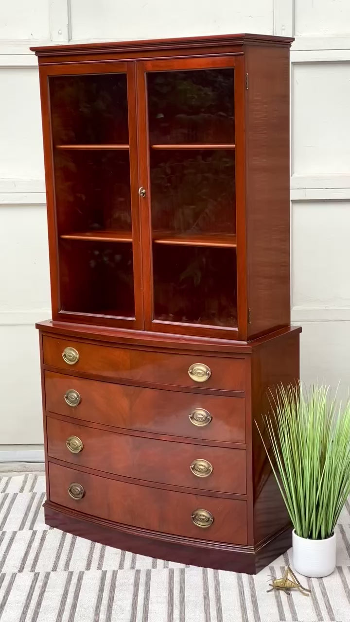 SOLD - Newest arrival! ❄️ Check out this gorgeous antique Georgian style walnut cabinet. Original brass pulls with a great display area and lots of storage. We love it! 70” x 36” x 17” Good condition