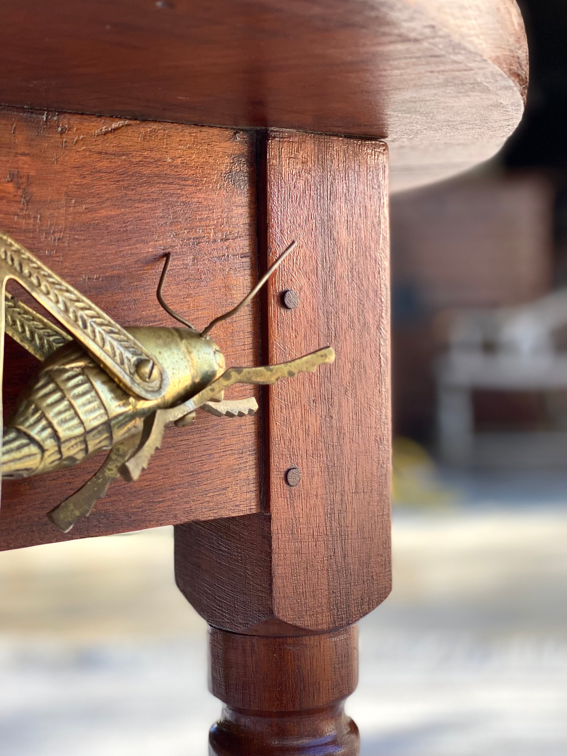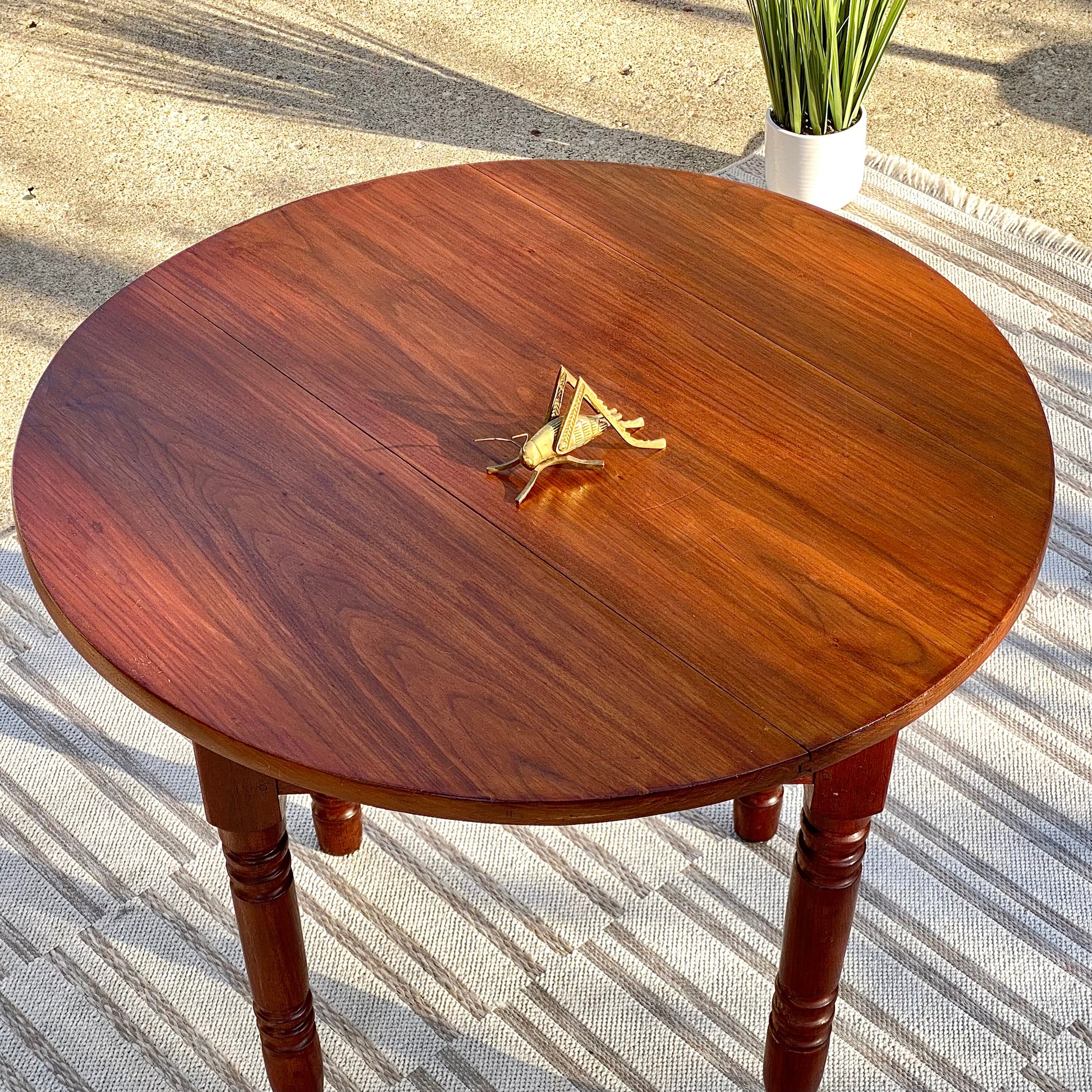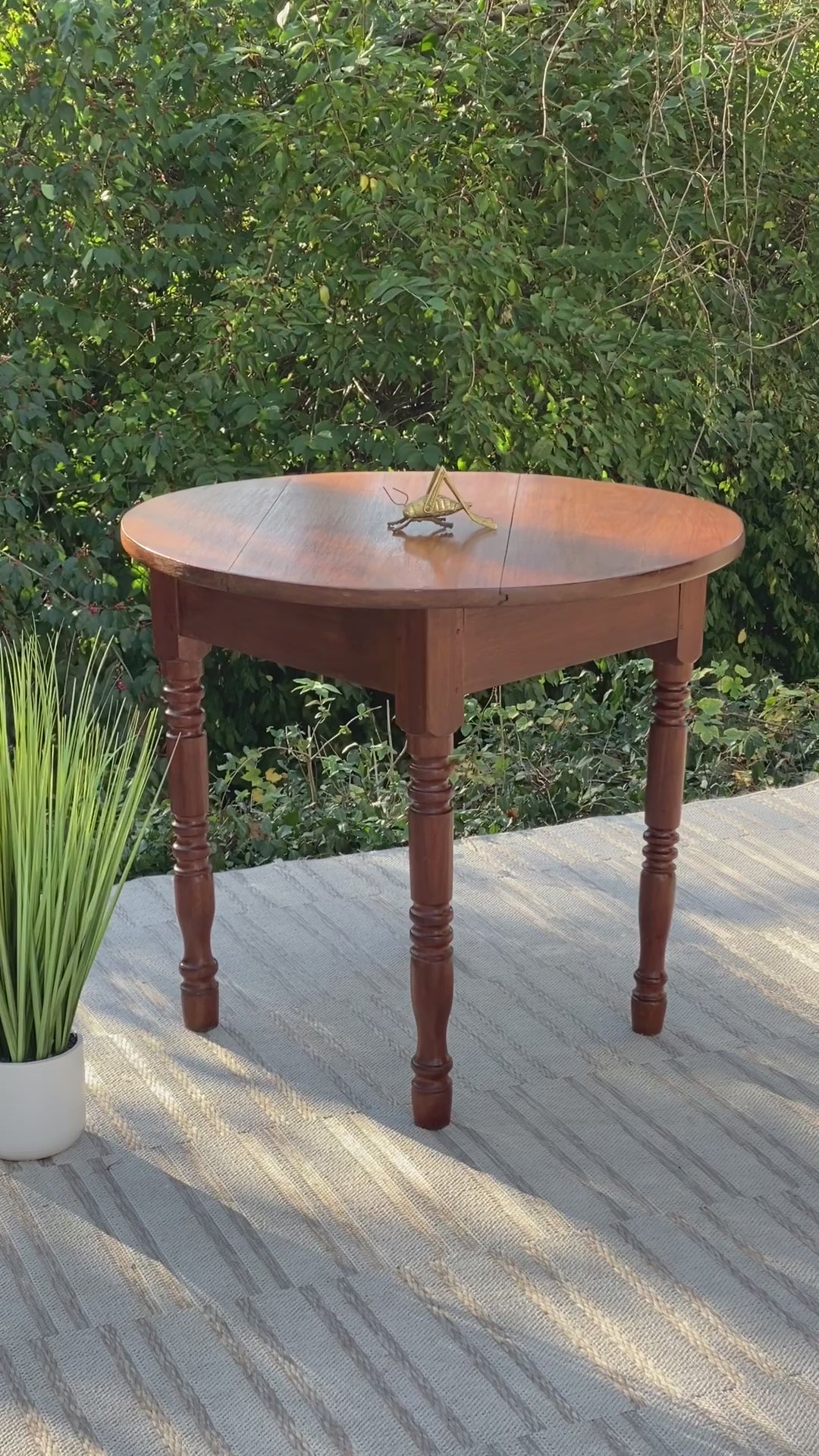 SOLD - Fresh find! 🧡🍁 Check out this gorgeous antique solid walnut round handcrafted table. Pegged construction with a farmhouse feel. 29” x 32” wide. Good condition