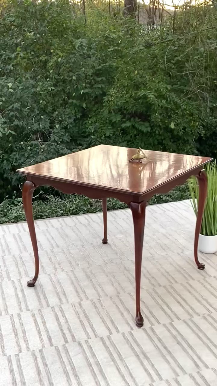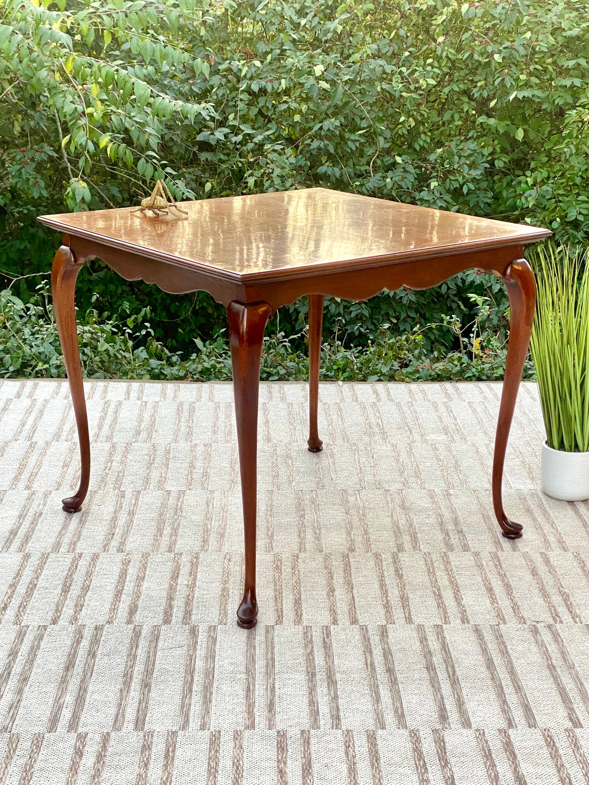 SOLD - New arrival! 🧡🍁 Check out this beautiful vintage inlay walnut table. Cabriole legs with a warm walnut stain. Perfect for game night, display or an extra table. 29”h X 33” x 33” Good condition