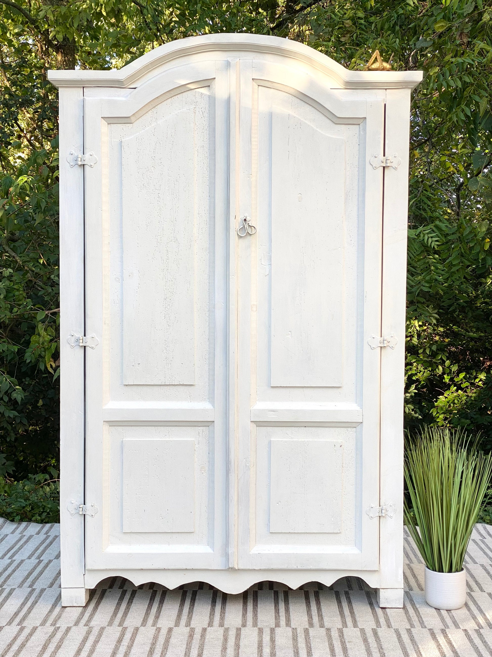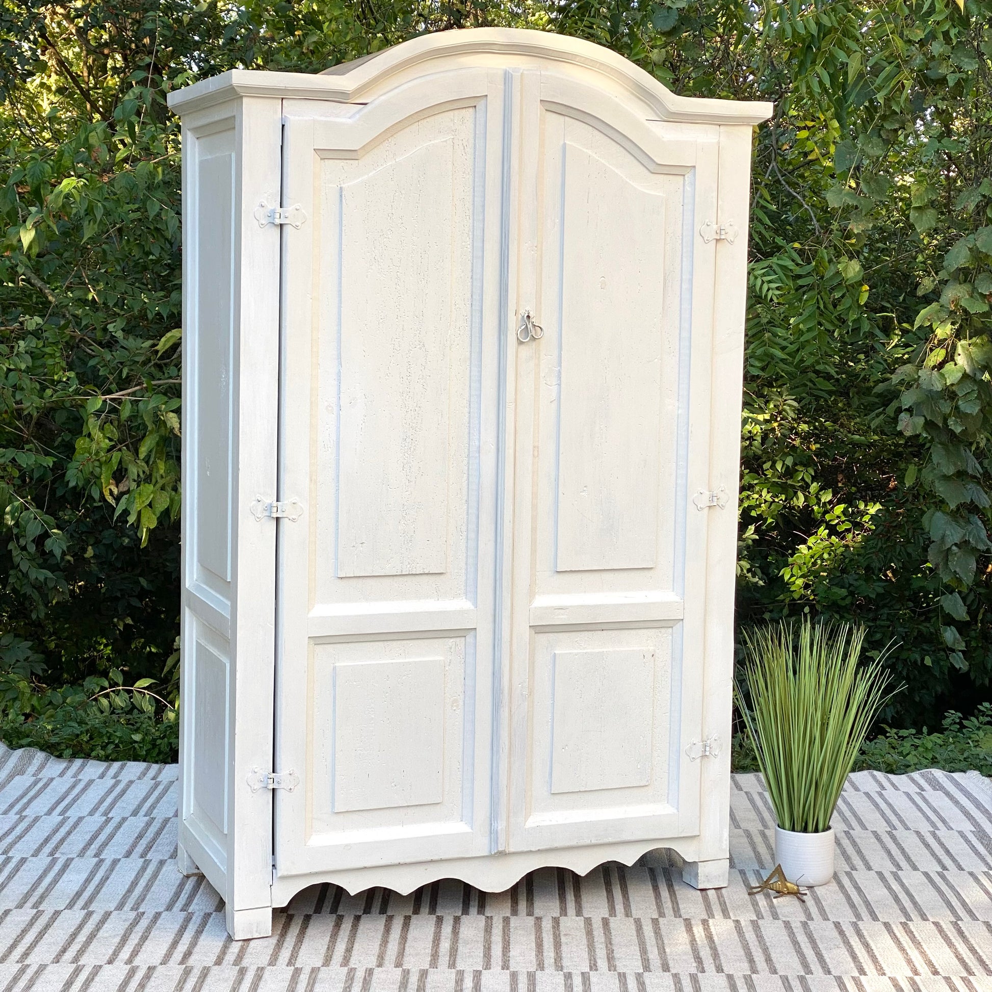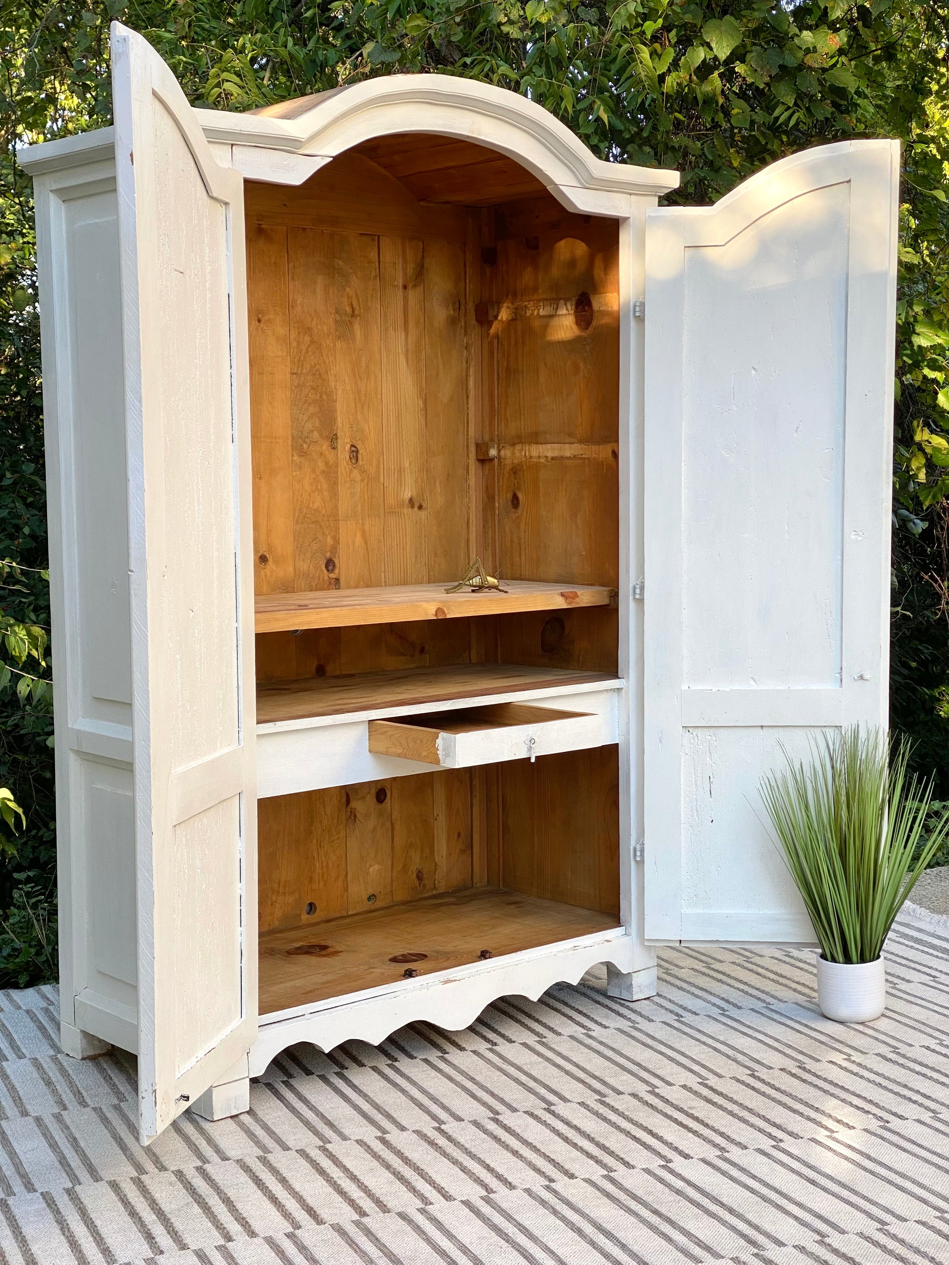 SOLD - Newest arrival! 🧡🍁 Check out this beautiful vintage white pine cabinet with top double doors and storage below. Great storage piece and has awesome farmhouse vibes! 80” x 24” x 51” Good condition