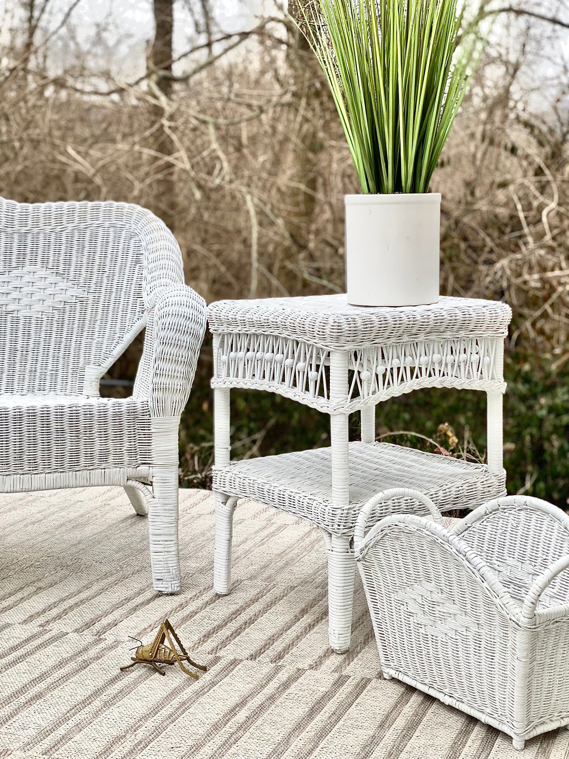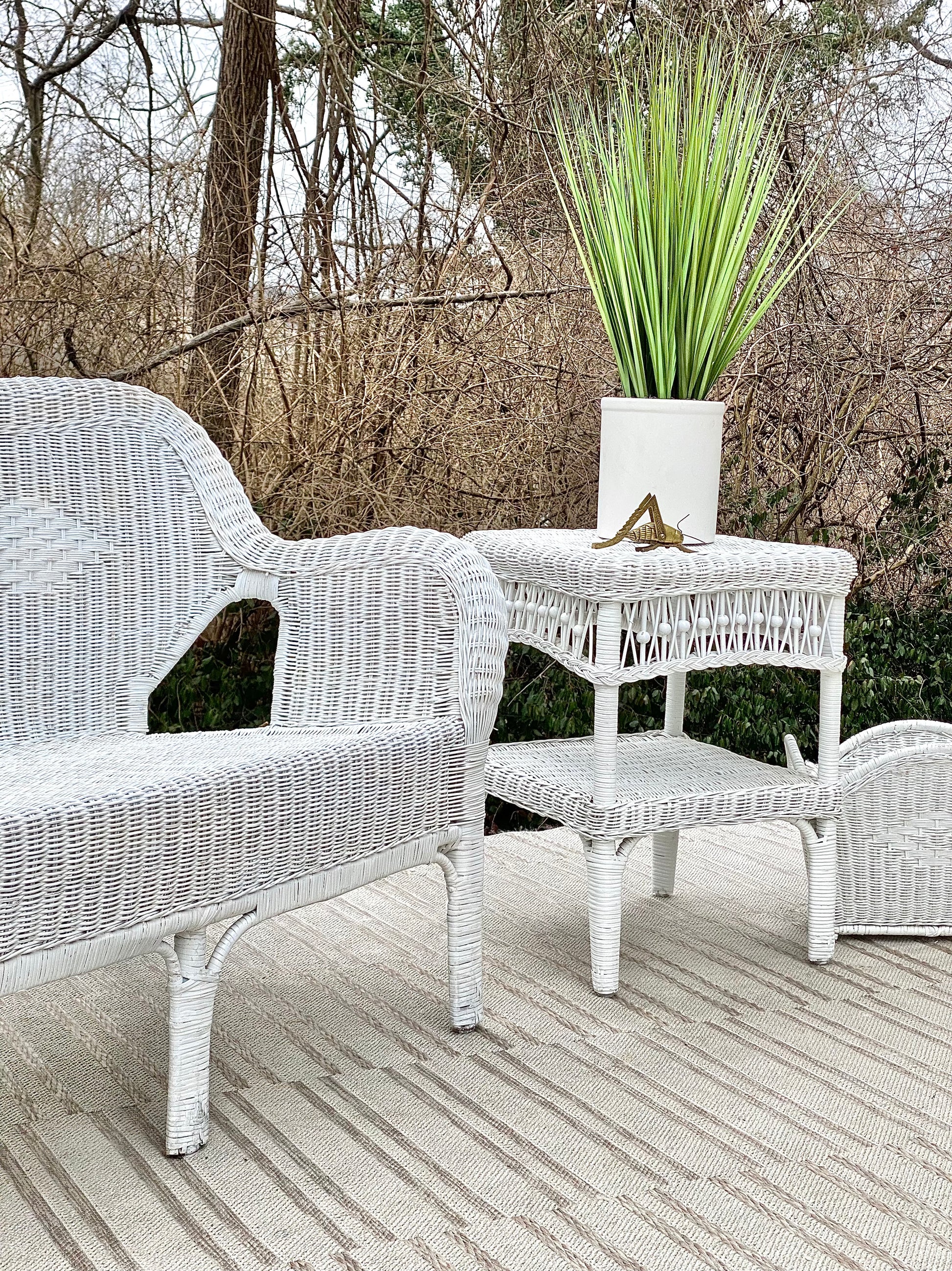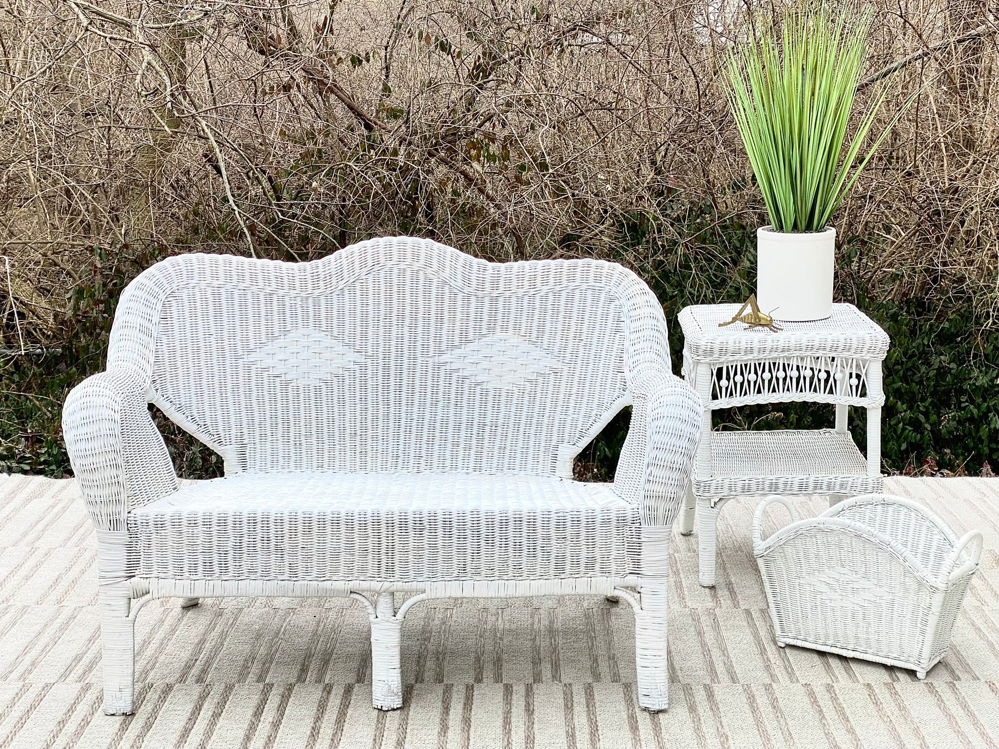 Vintage Wicker Loveseat Side Table & Basket
