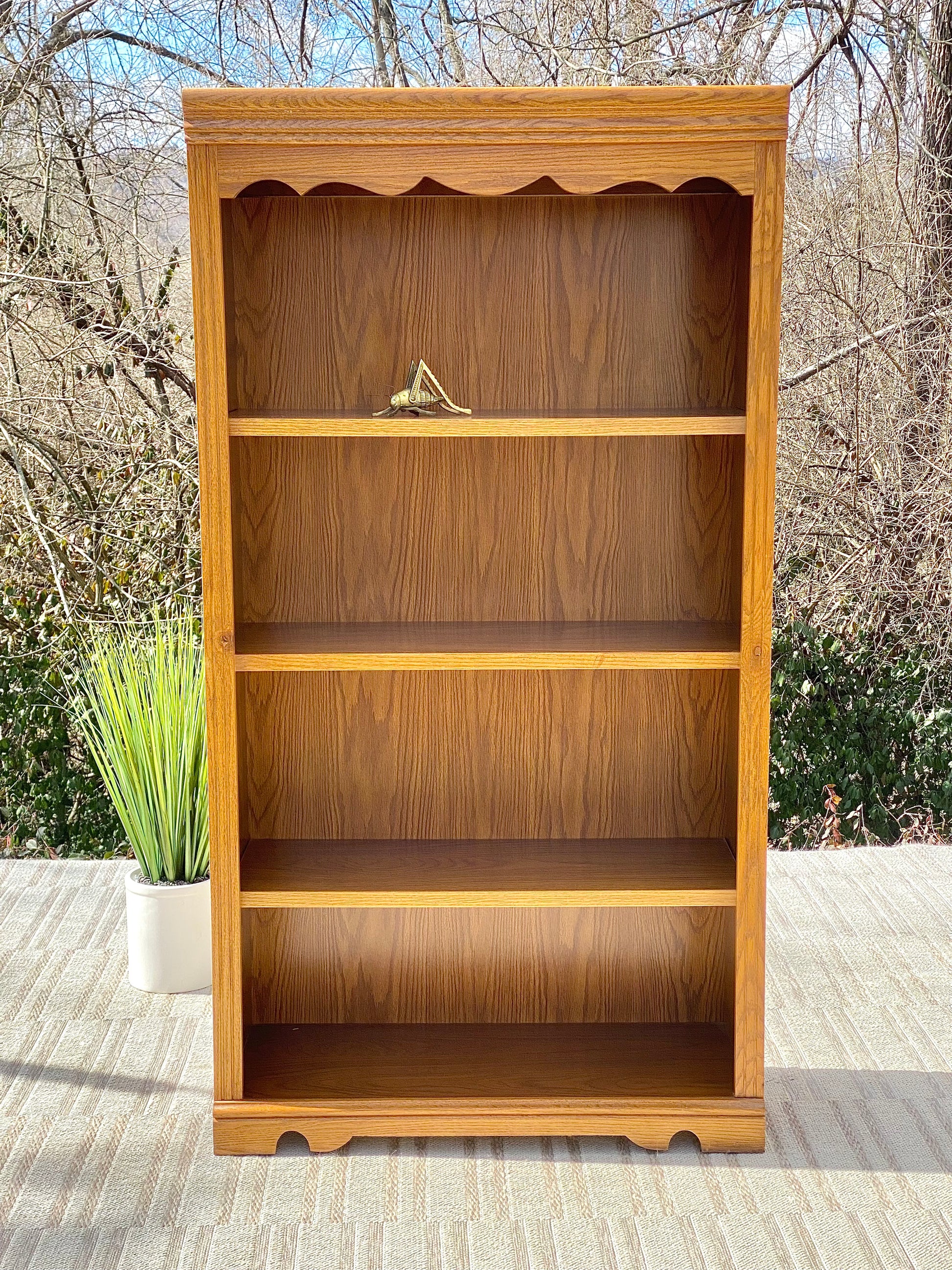 SOLD - Fresh find!! 🌱❄️ Check out this vintage wooden 3 shelf bookcase. Sturdy construction and made in the USA. 60” x 32” x 13” Good condition