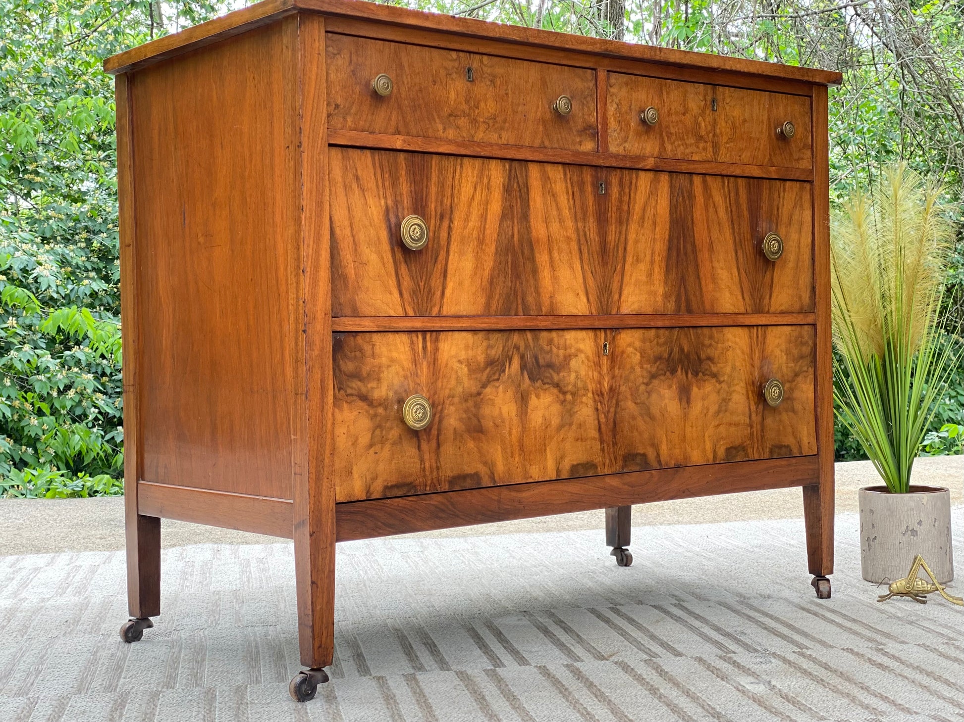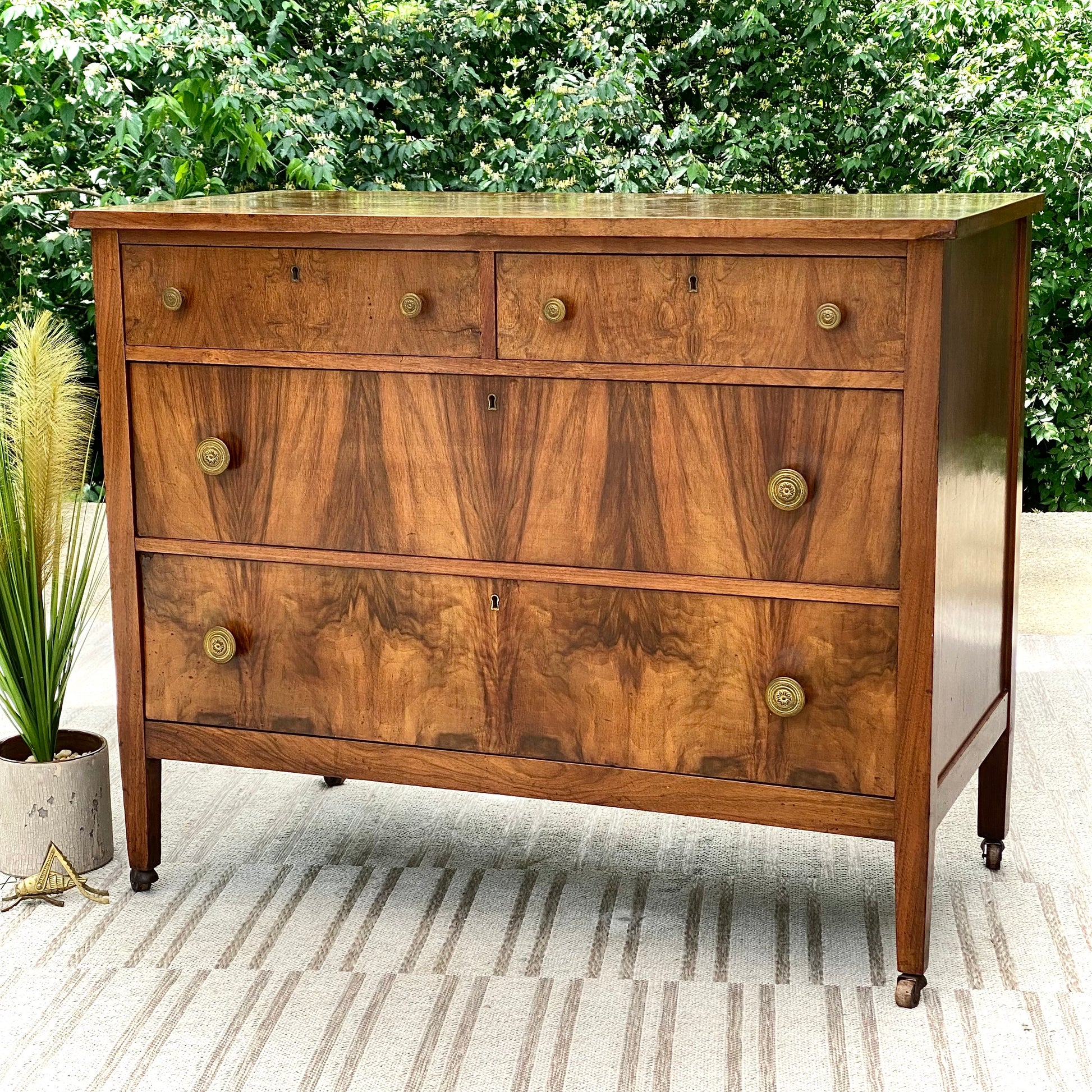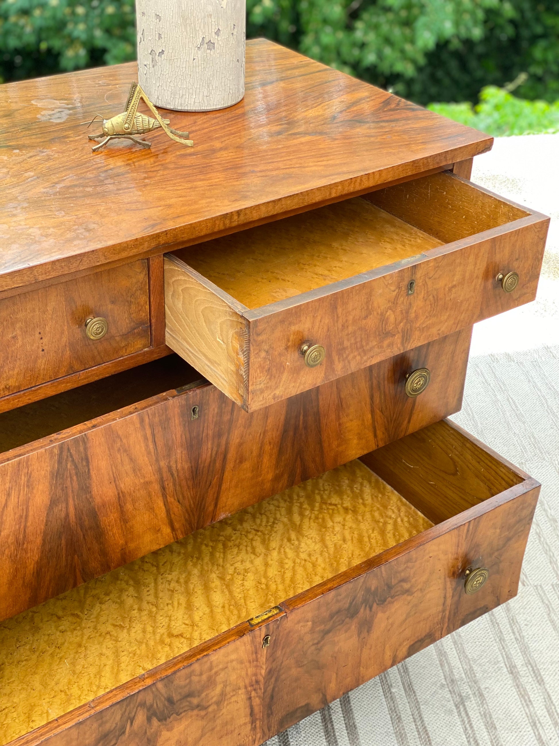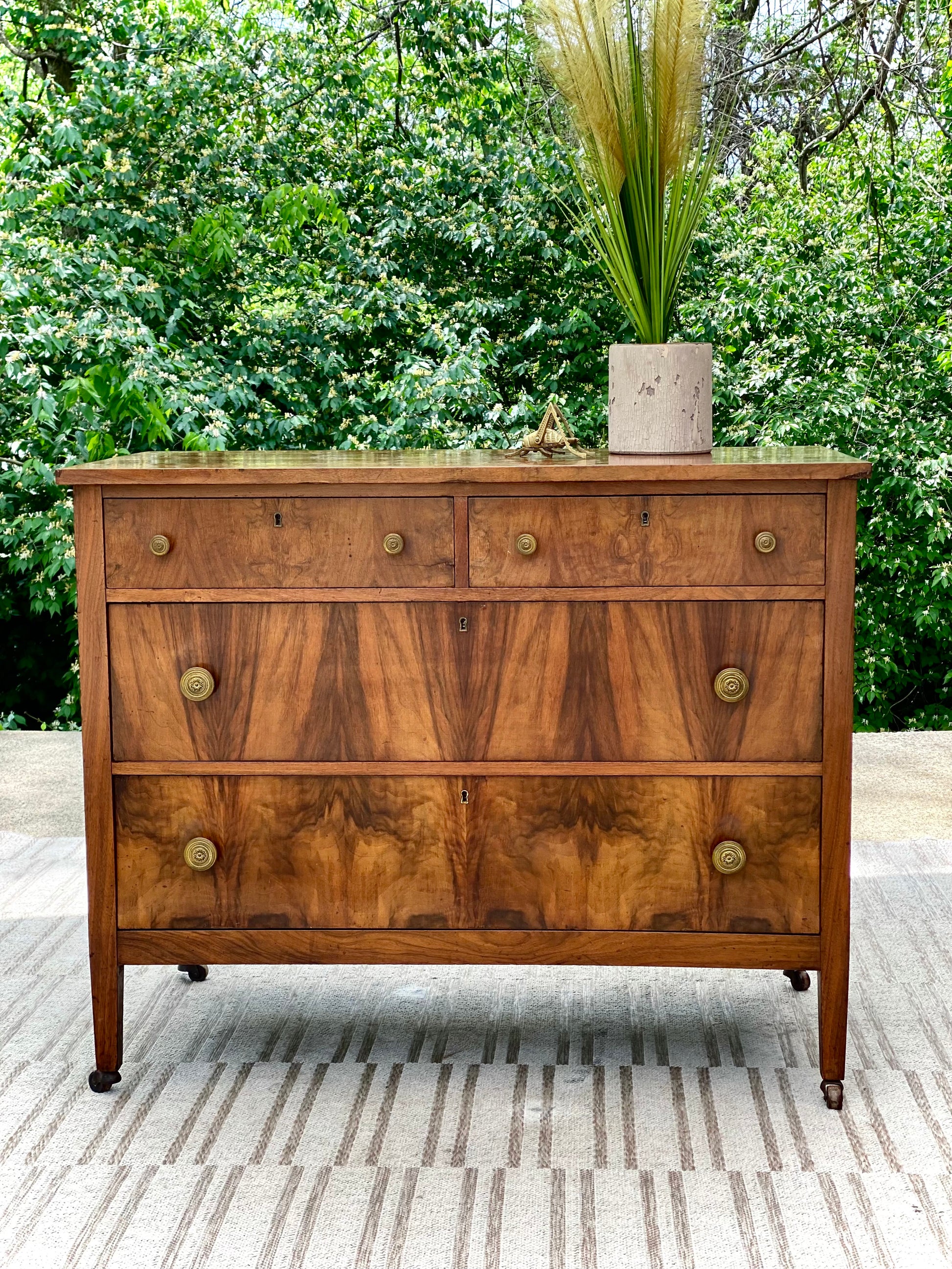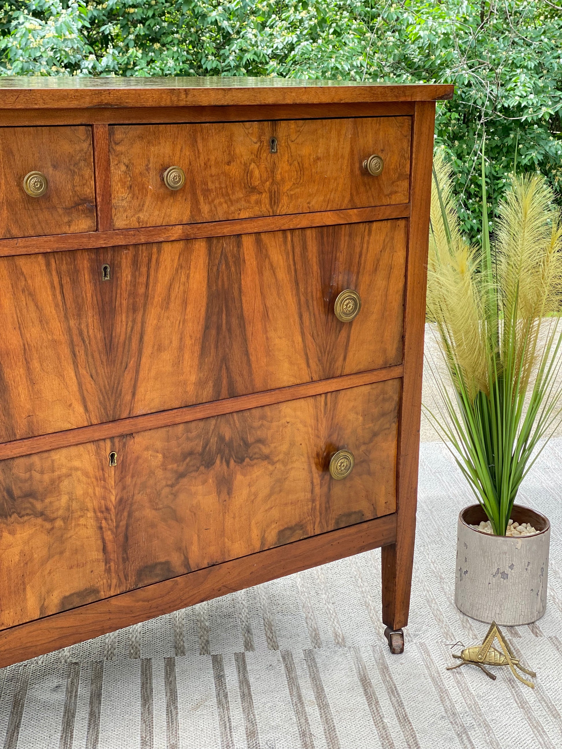 SOLD - New arrival! 🪴🌱 We love this antique wooden for drawer accent dresser. Comes with original pole and gorgeous drawer fronts. A great storage option for a bedroom or a display piece for a hallway. 36” x 44” x 22” Good condition