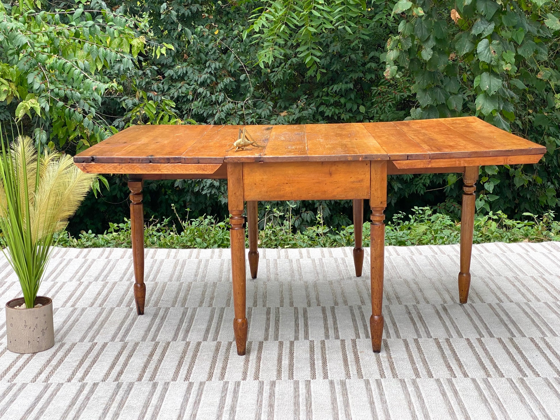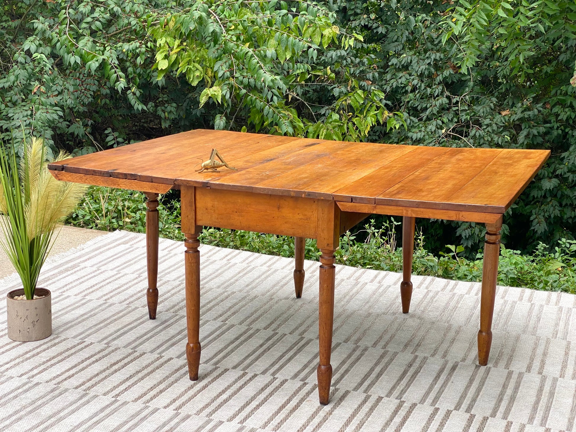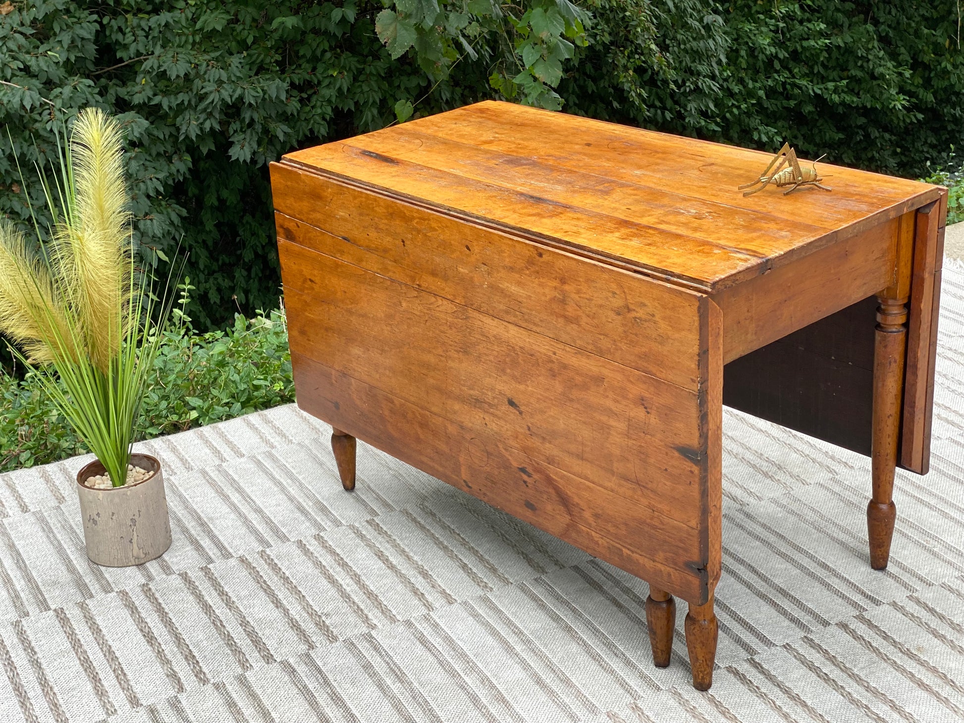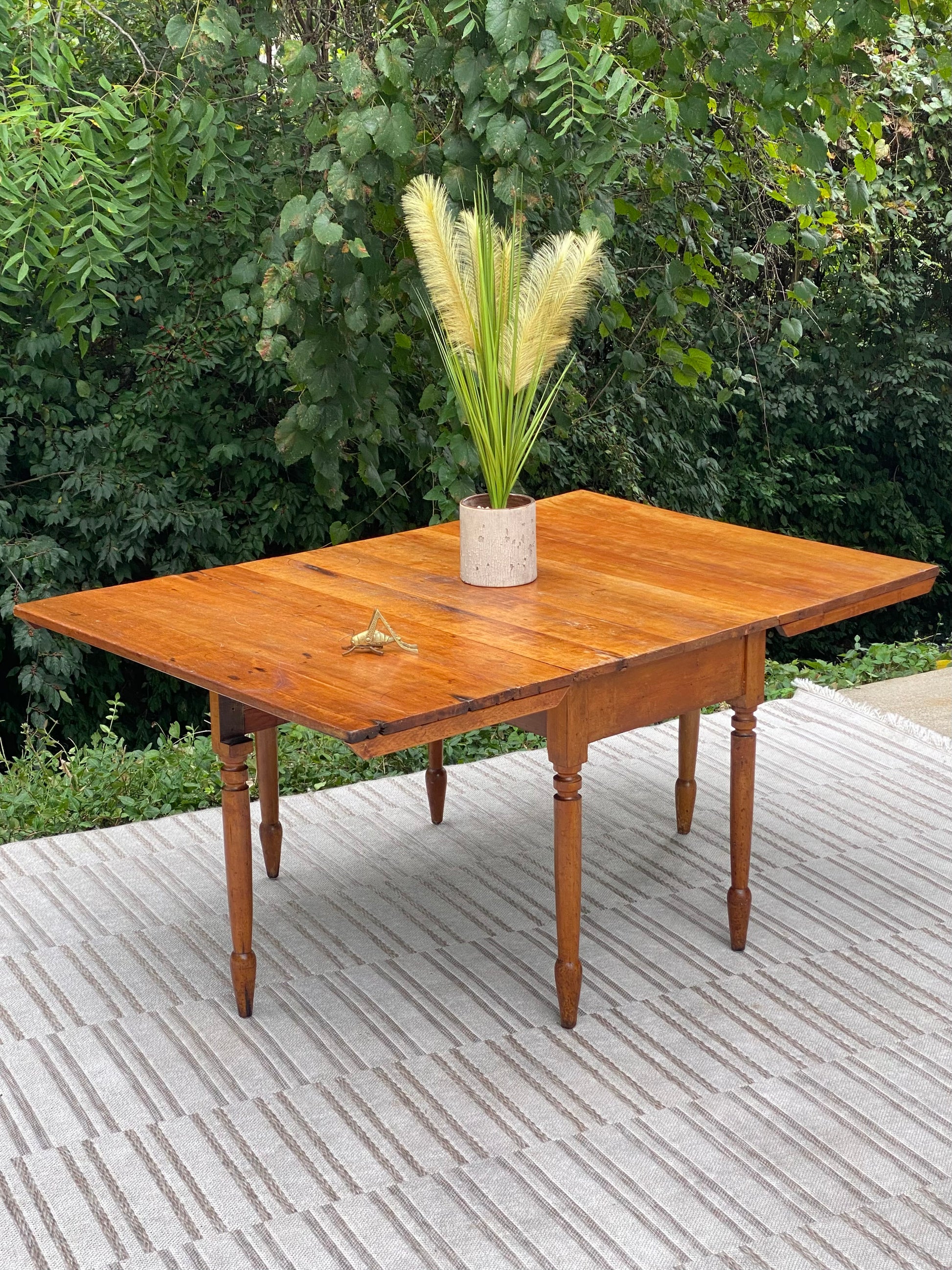 SOLD - New arrival! 🧡🍁🦗 Check out this vintage solid wood drop leaf gate leg country store table. Tons of old character in primitive pine. 28” x 62” x 43” Good condition