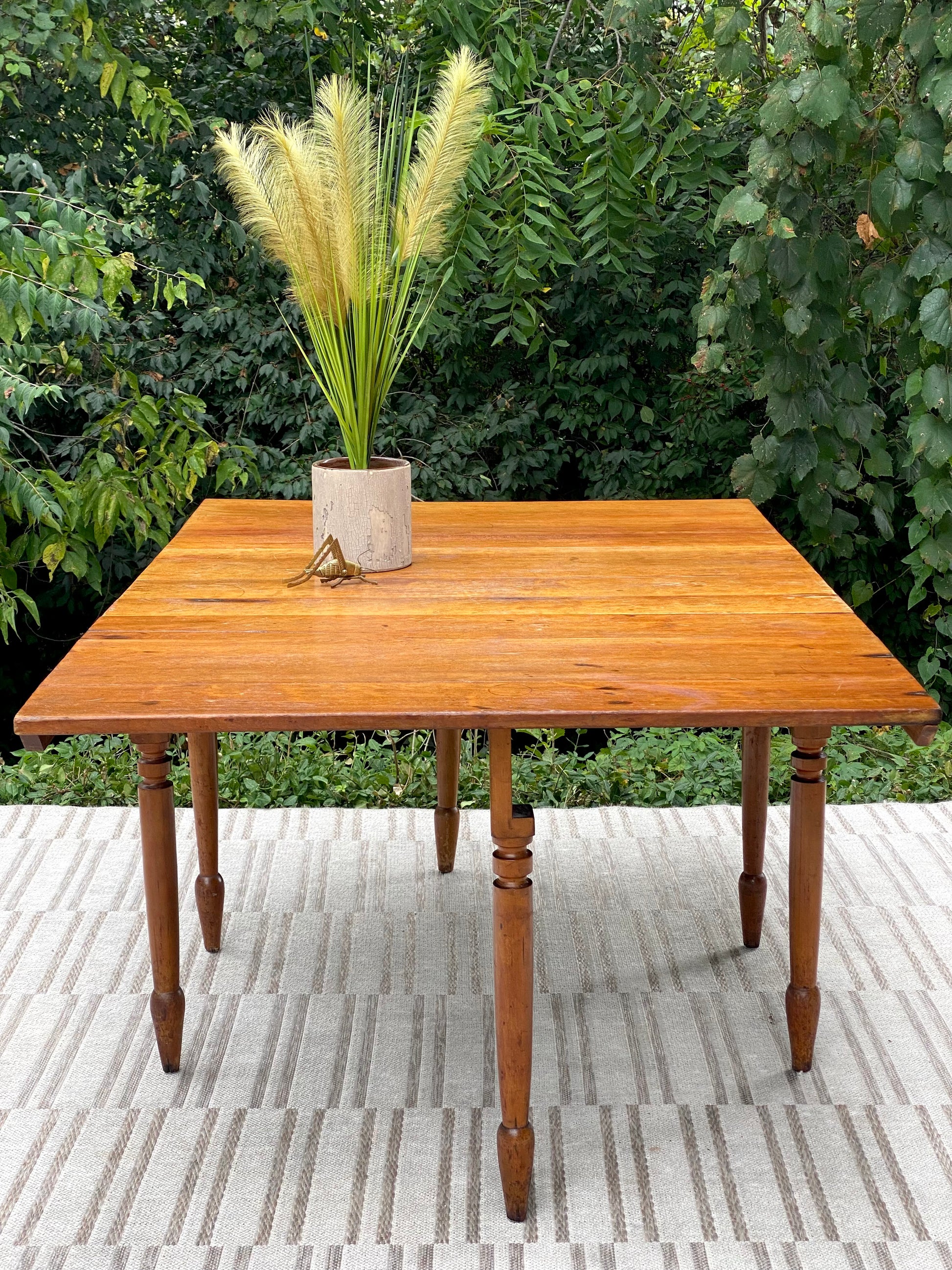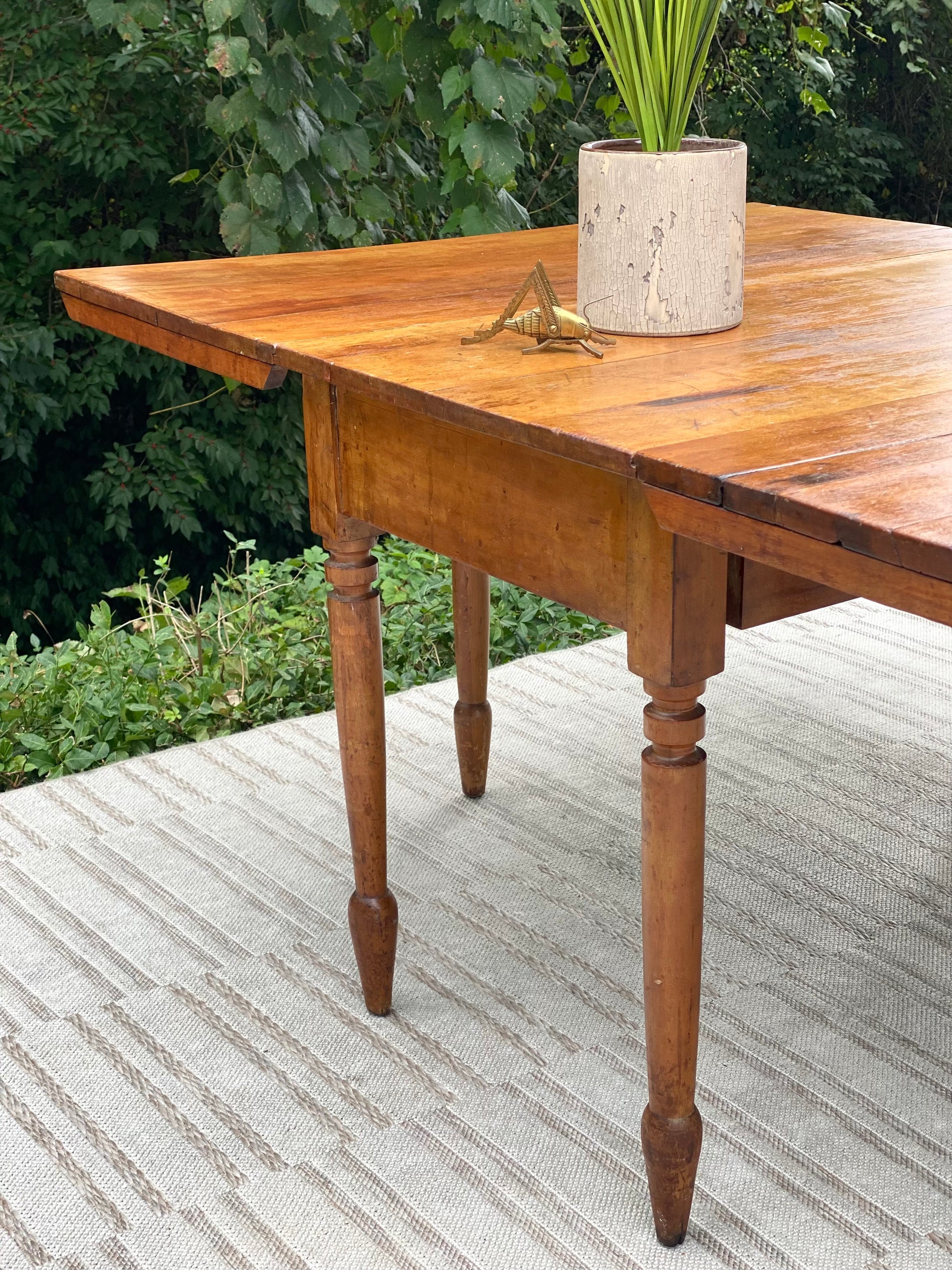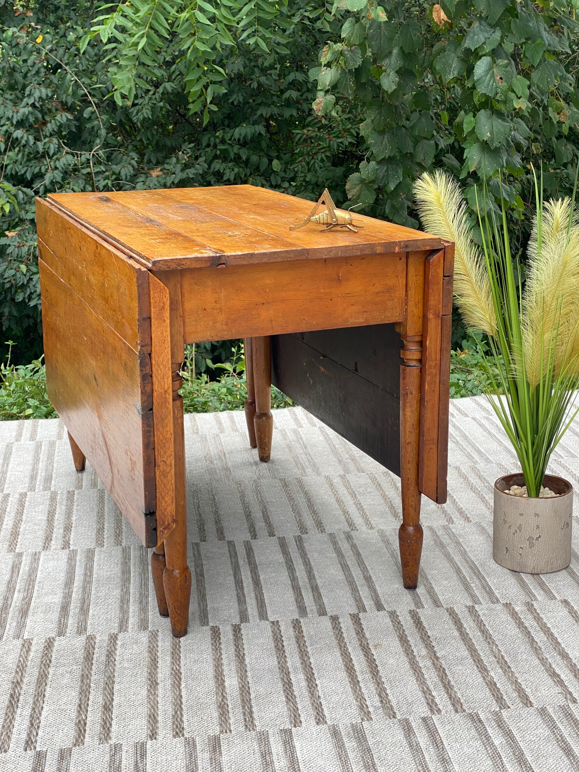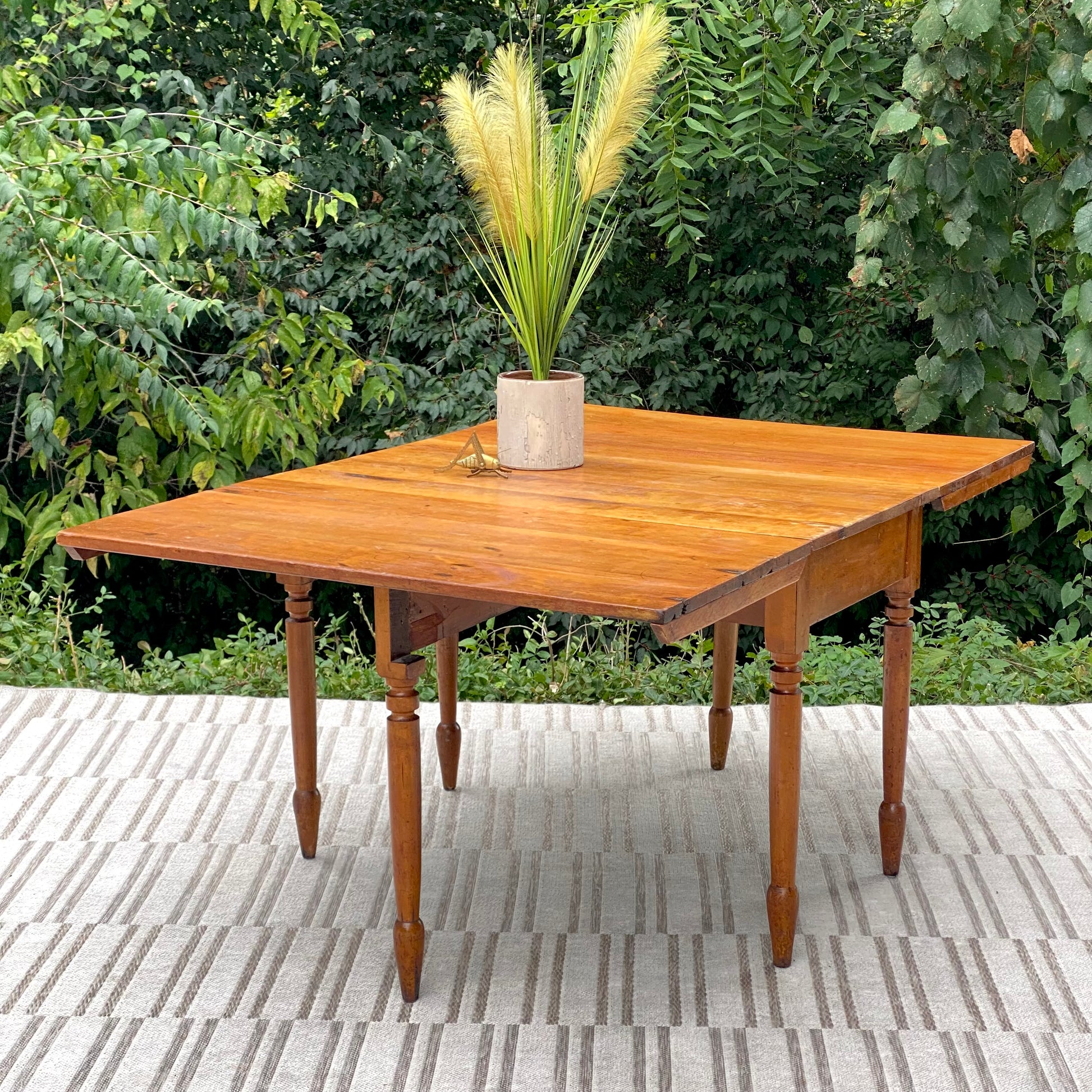 SOLD - New arrival! 🧡🍁🦗 Check out this vintage solid wood drop leaf gate leg country store table. Tons of old character in primitive pine. 28” x 62” x 43” Good condition