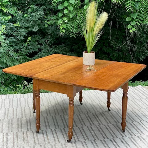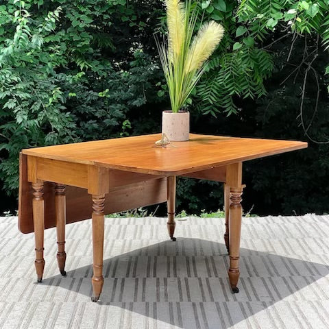 SOLD - New arrival! 🪴🌱 We love the warm tones of this primitive wooden gate leg table. Perfect for crafts a super unique dining table. 28” x 58” open x 49” Good condition