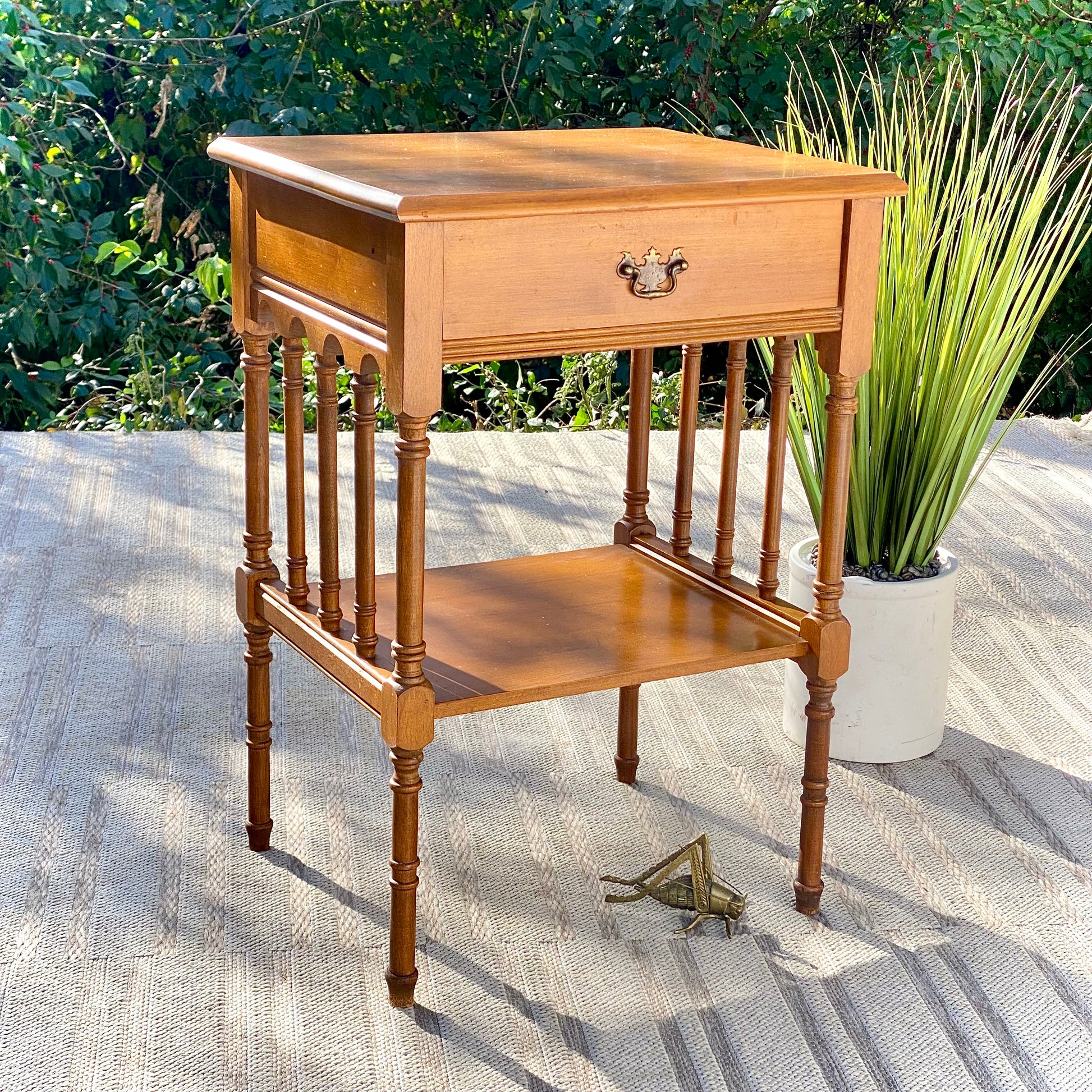 New arrival! 🍁🍂 Check out this sweet little vintage wooden maple side table. Perfect next to a couch or used as a plant stand. 26”h x 18” x 15” Good condition
