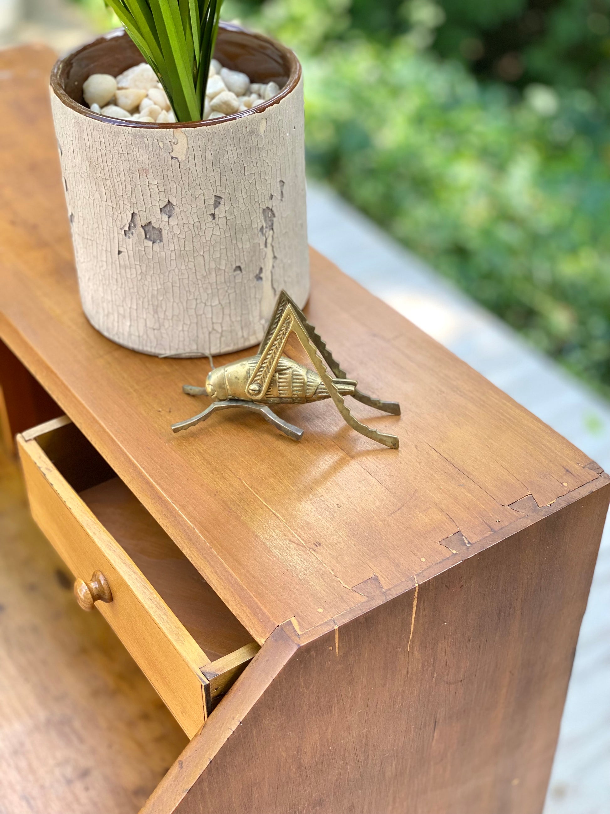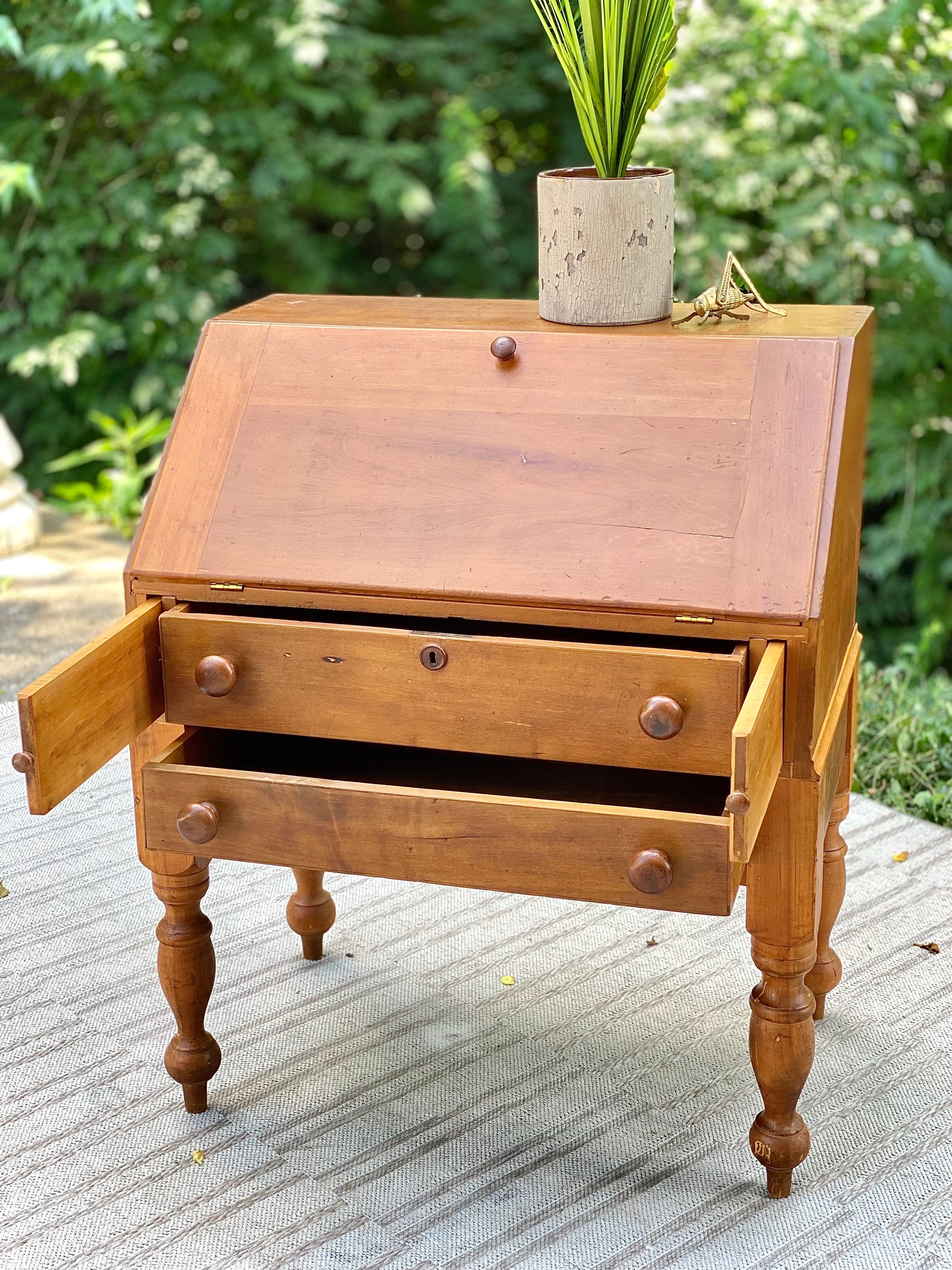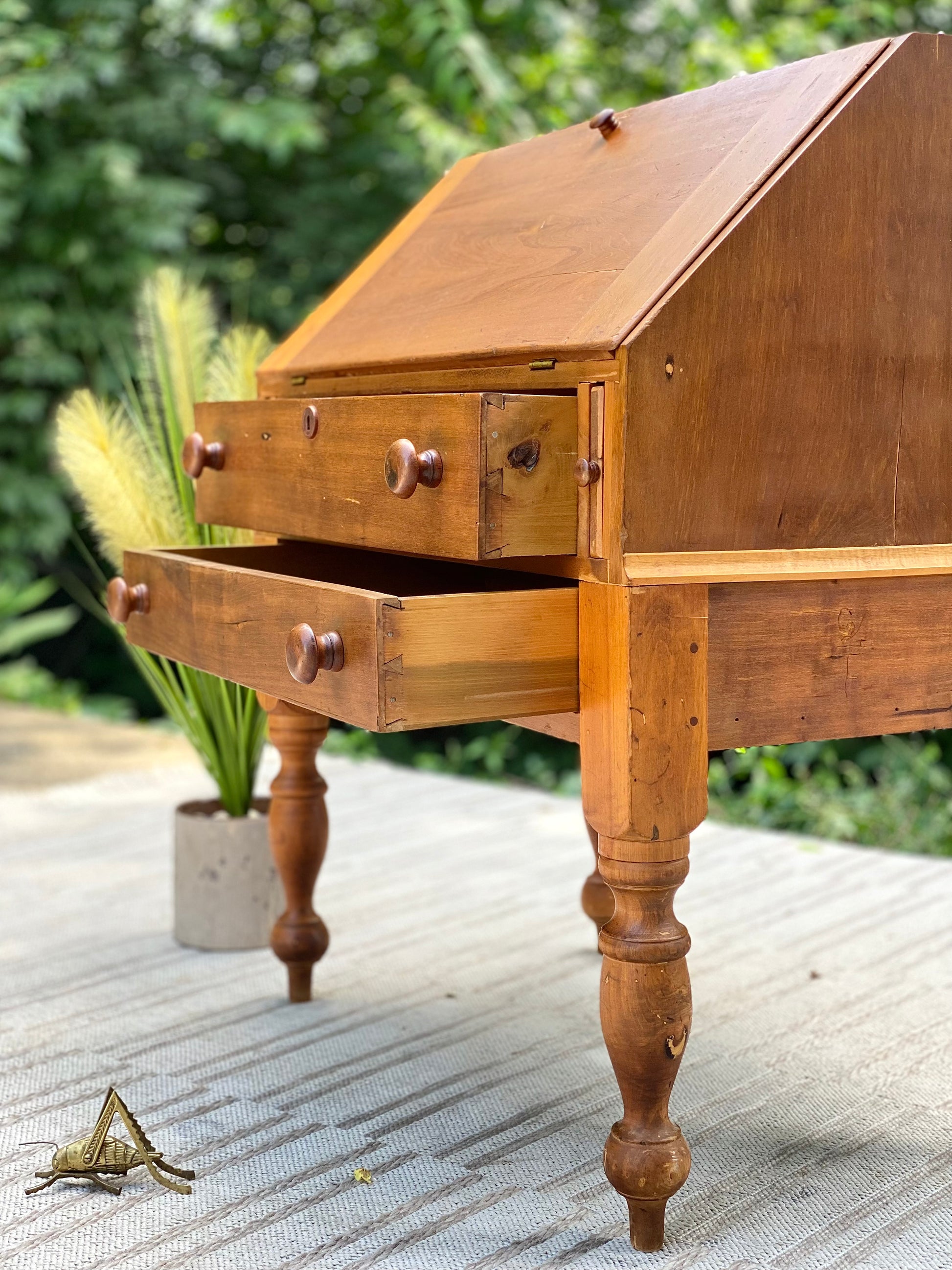 New arrival! 🪴🌱 We love the light tones of this antique wooden secretary desk. Dovetail design and lots of little cubby holes and drawers for storage. 38”h x 31” x 19” Good condition