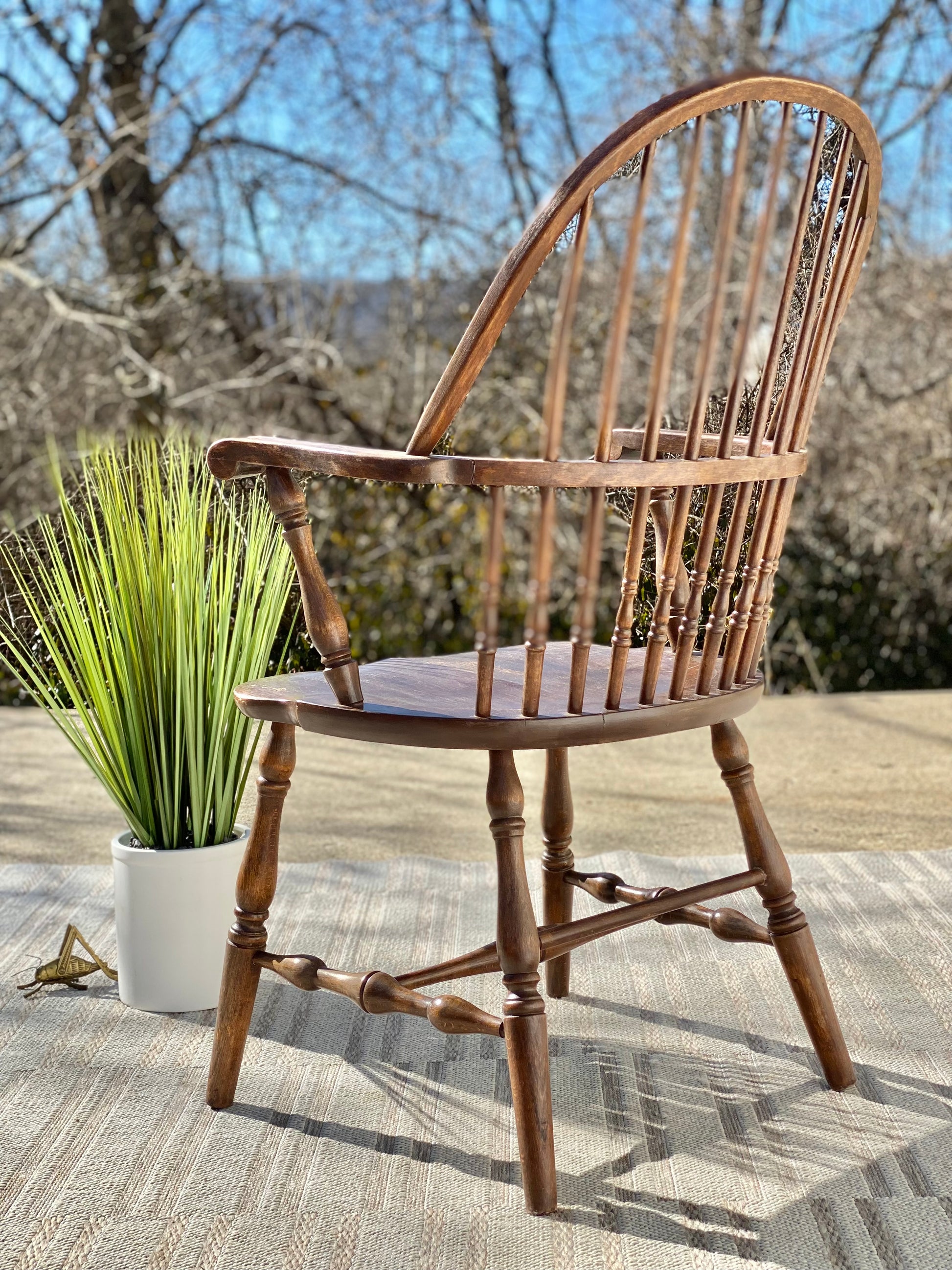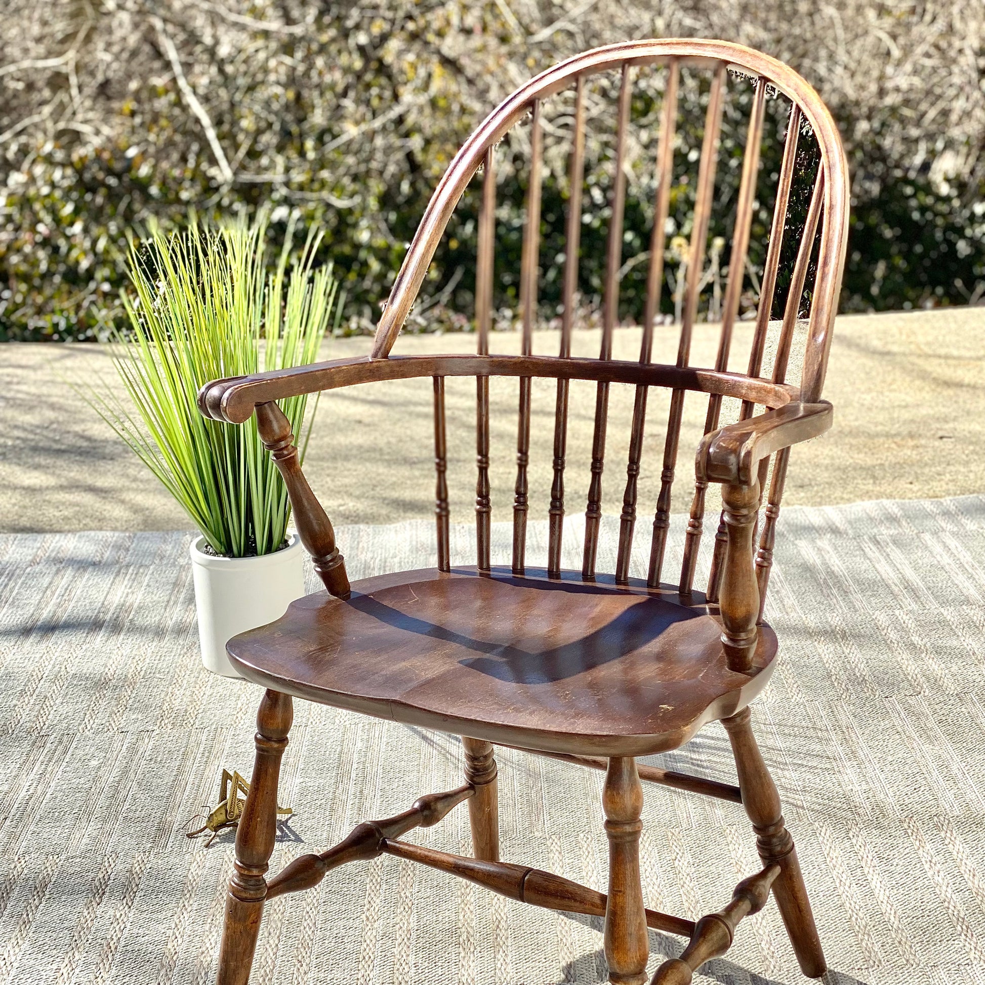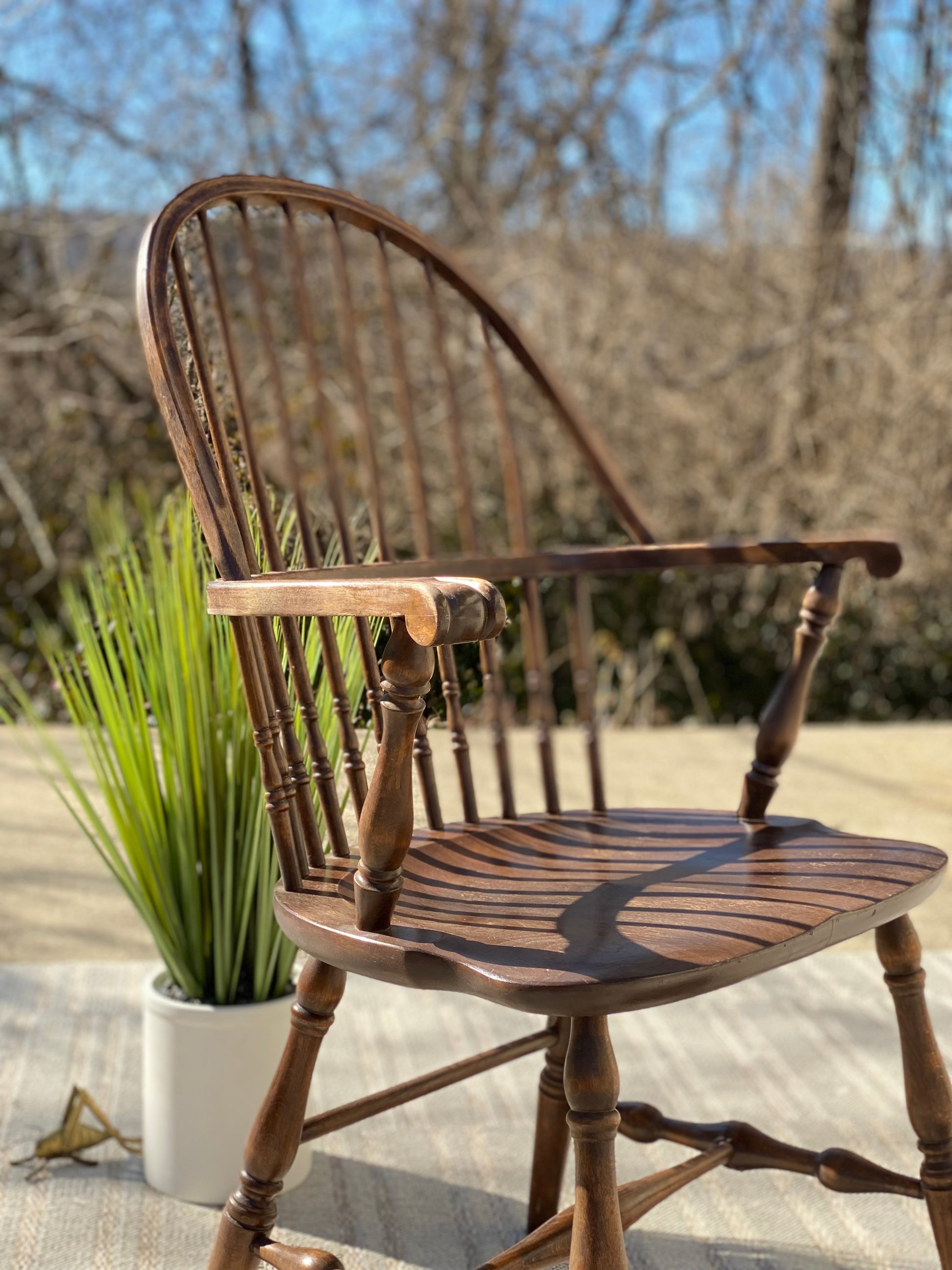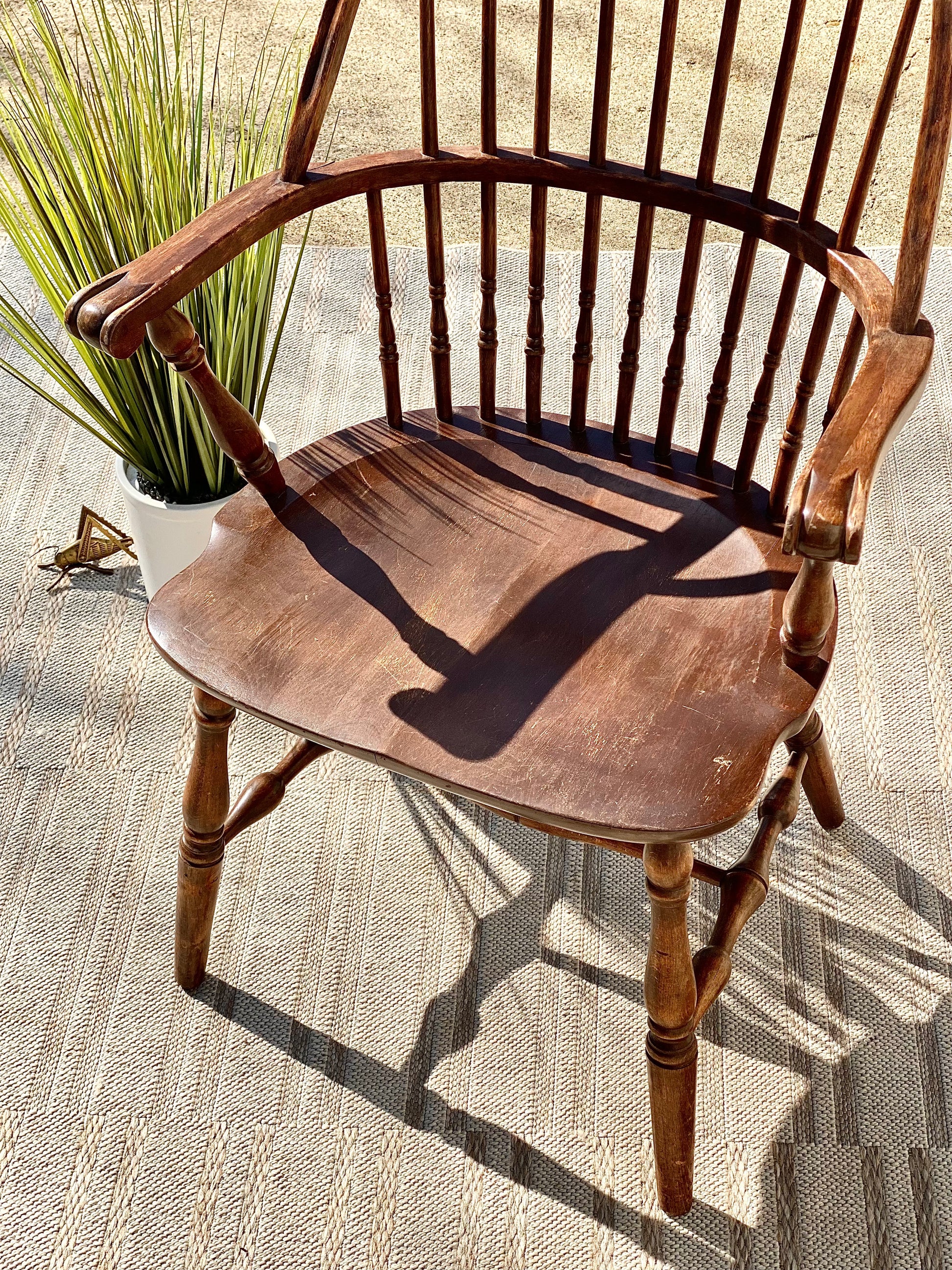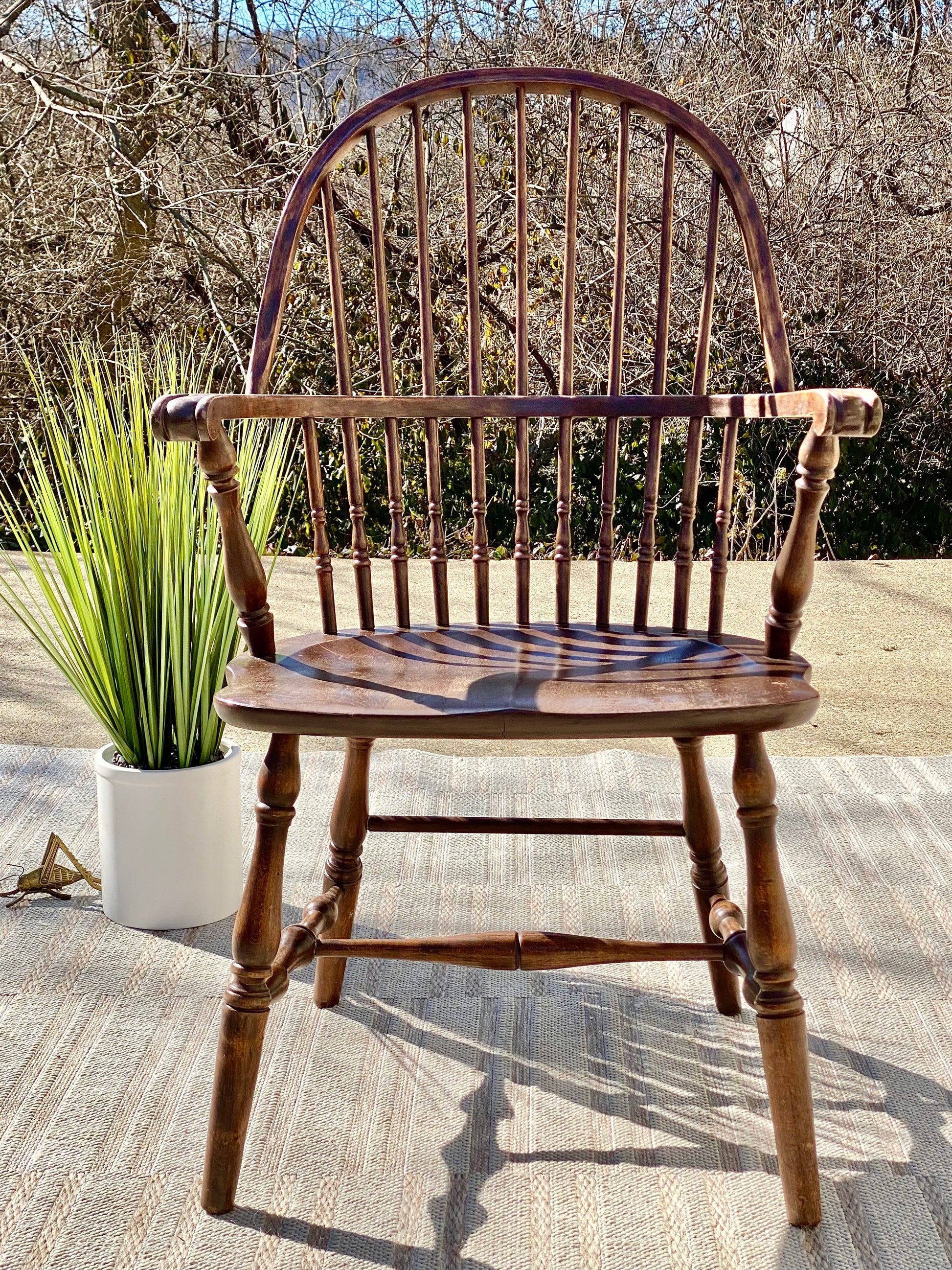 SOLD - Fresh find! 🌱❄️ Check out this antique wooden Windsor chair. Classic rounded back with tons of patina! We love it. 39” x 25” x 20” Good condition