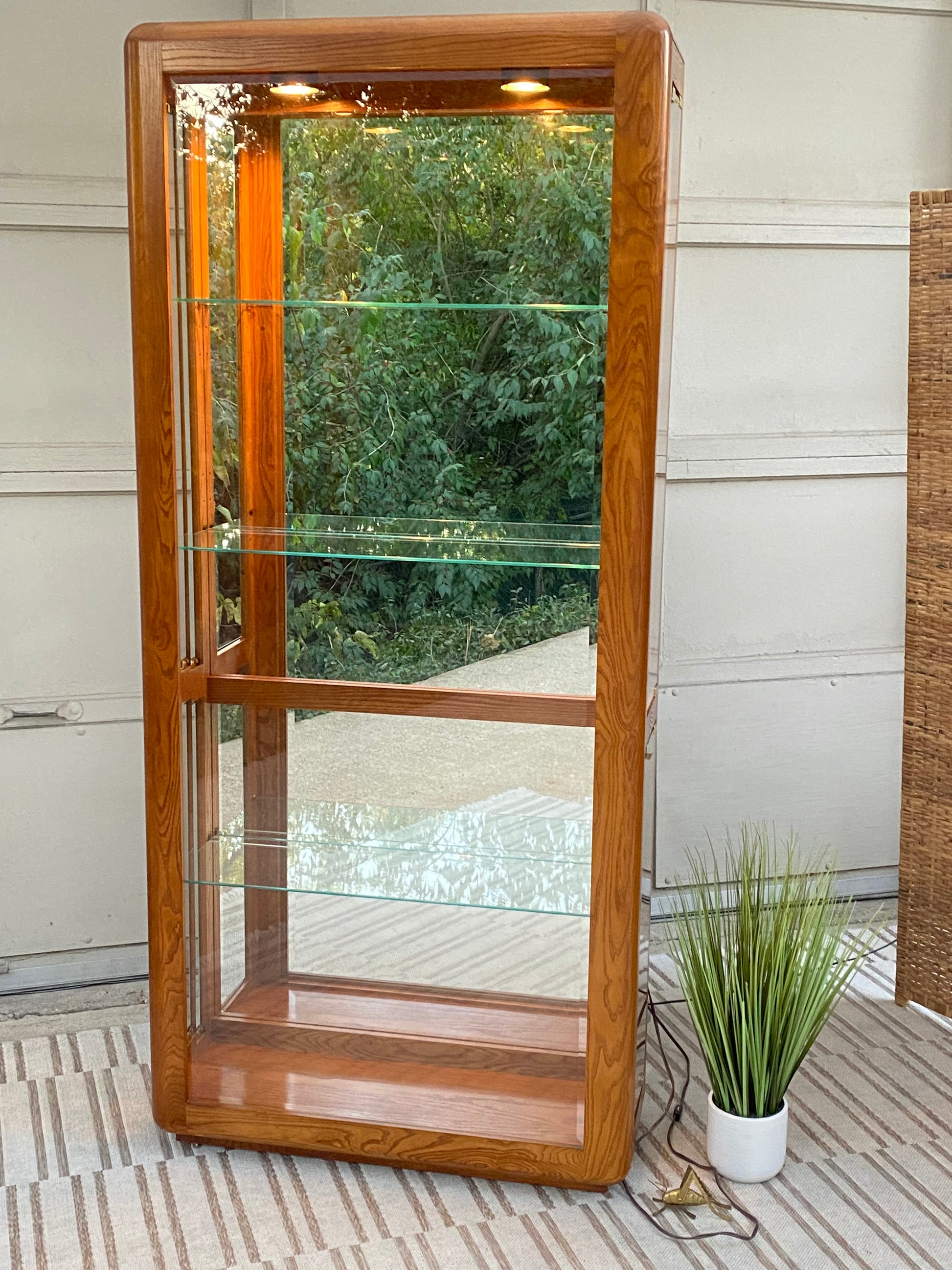 SOLD - Fresh find! 🧡🍁 Cozy up to this fantastic wood and glass display case. Three internal glass shelves with interior lights. 80” x 36” x 12” Good condition