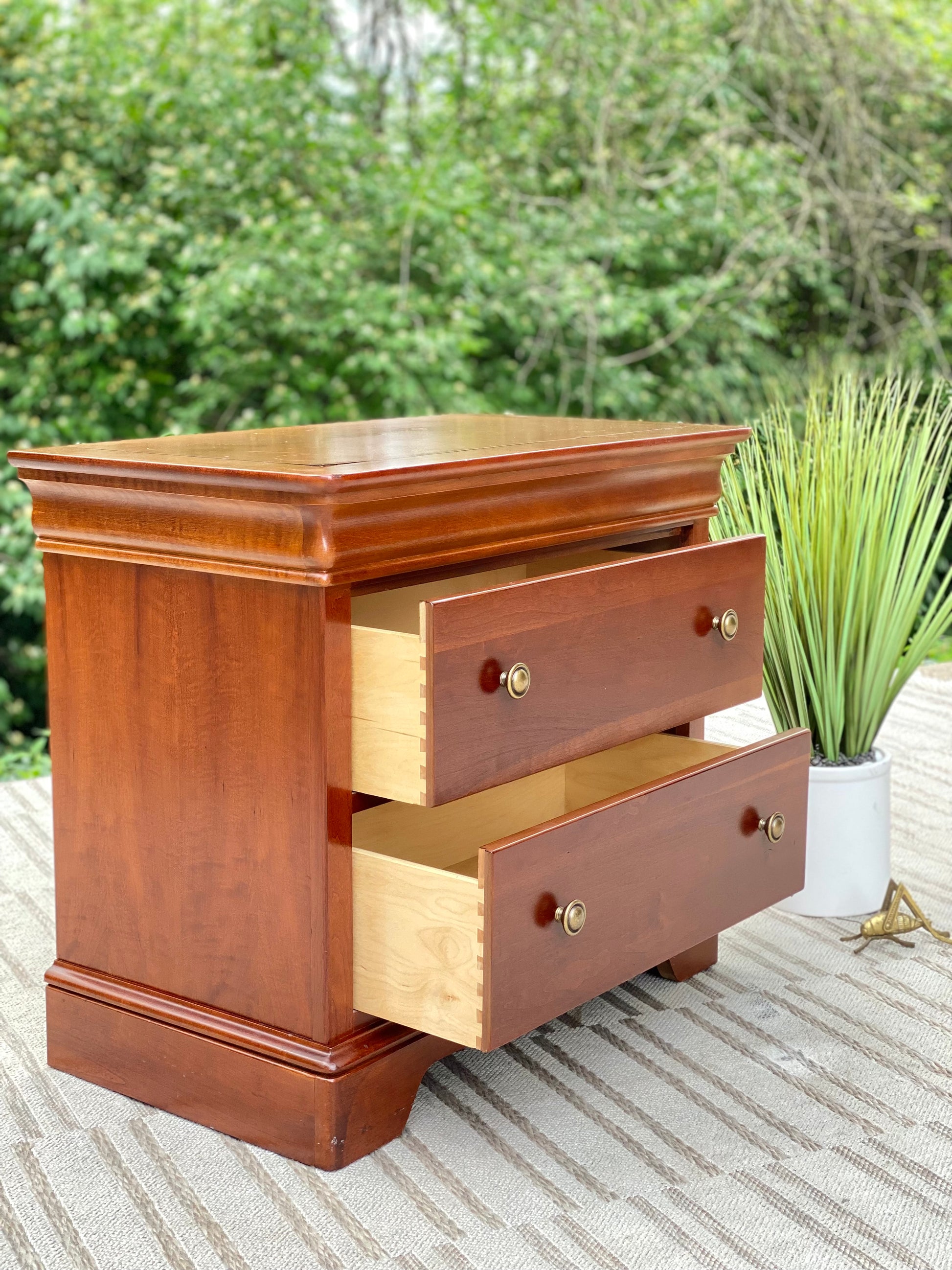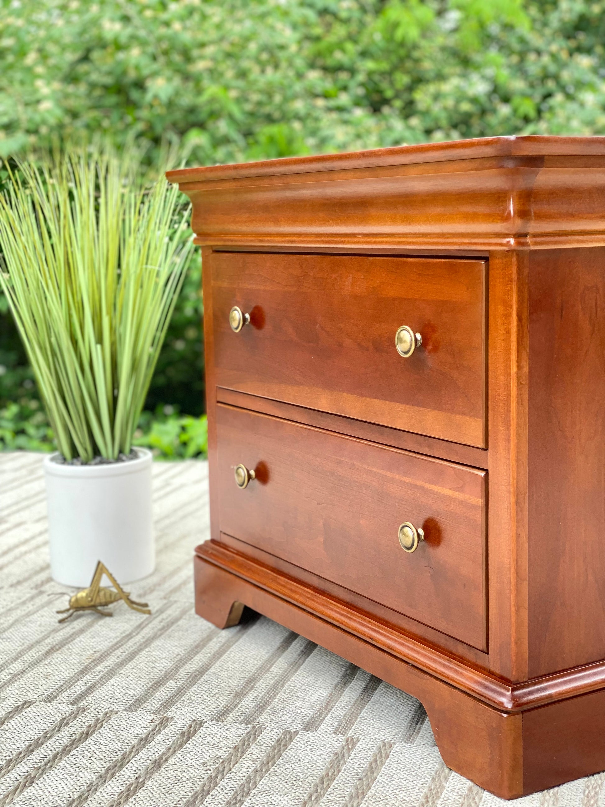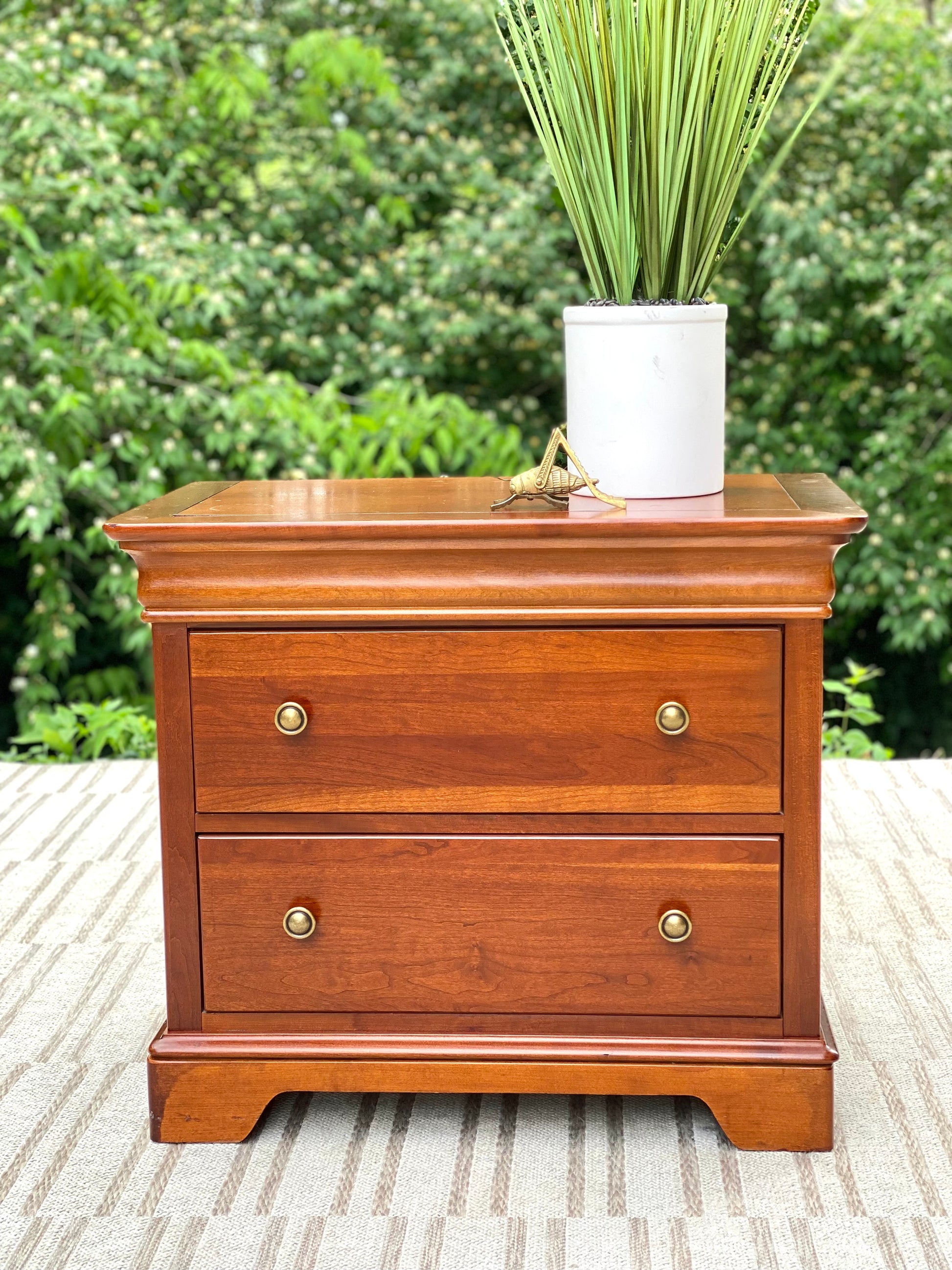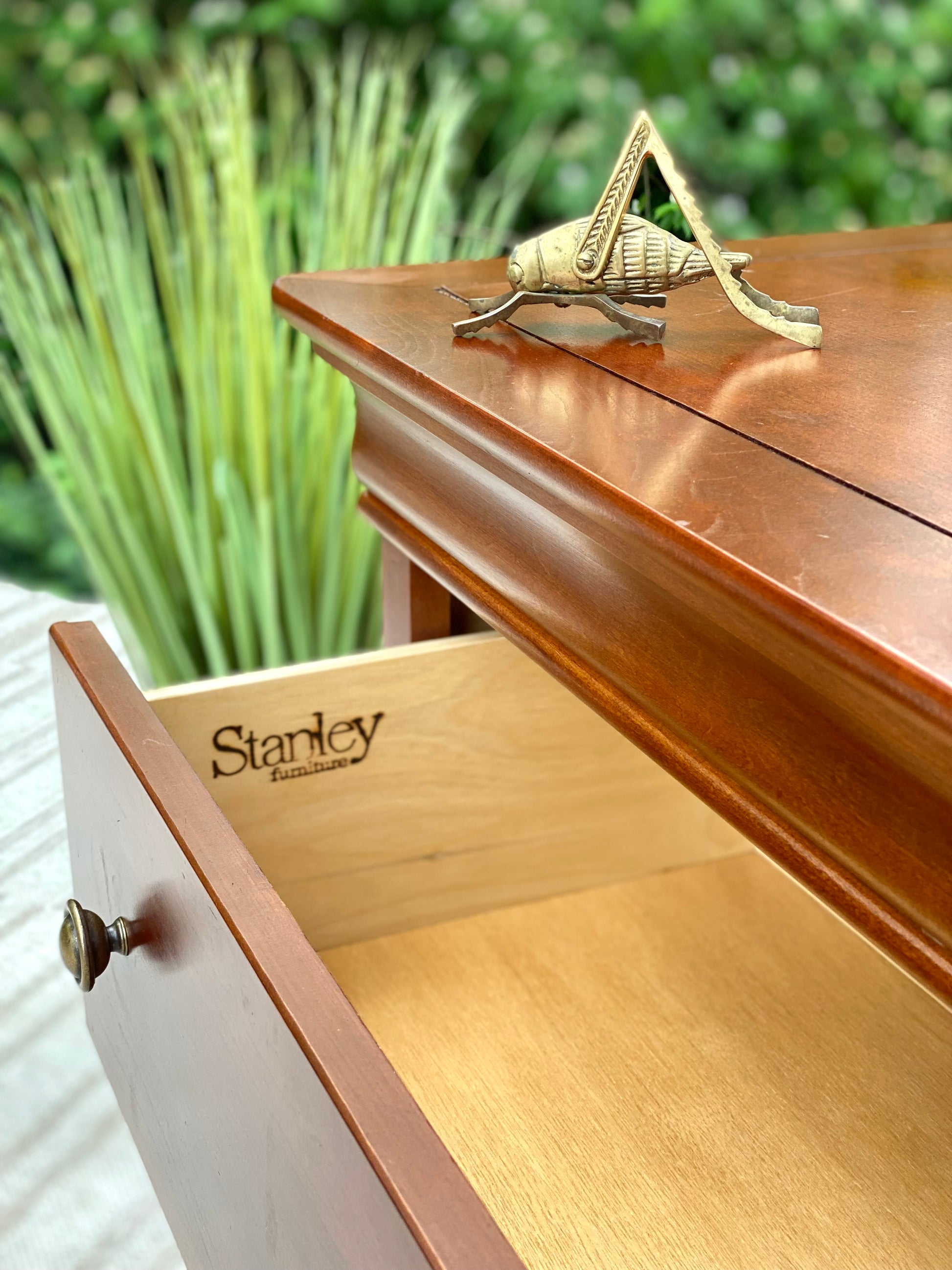 SOLD - Just arrived! 🪴🌱 Check out this gorgeous little wooden Stanley 2 drawer nightstand. Classic vibe with original hardware. We love it! 26” x 30” x 17” Good condition